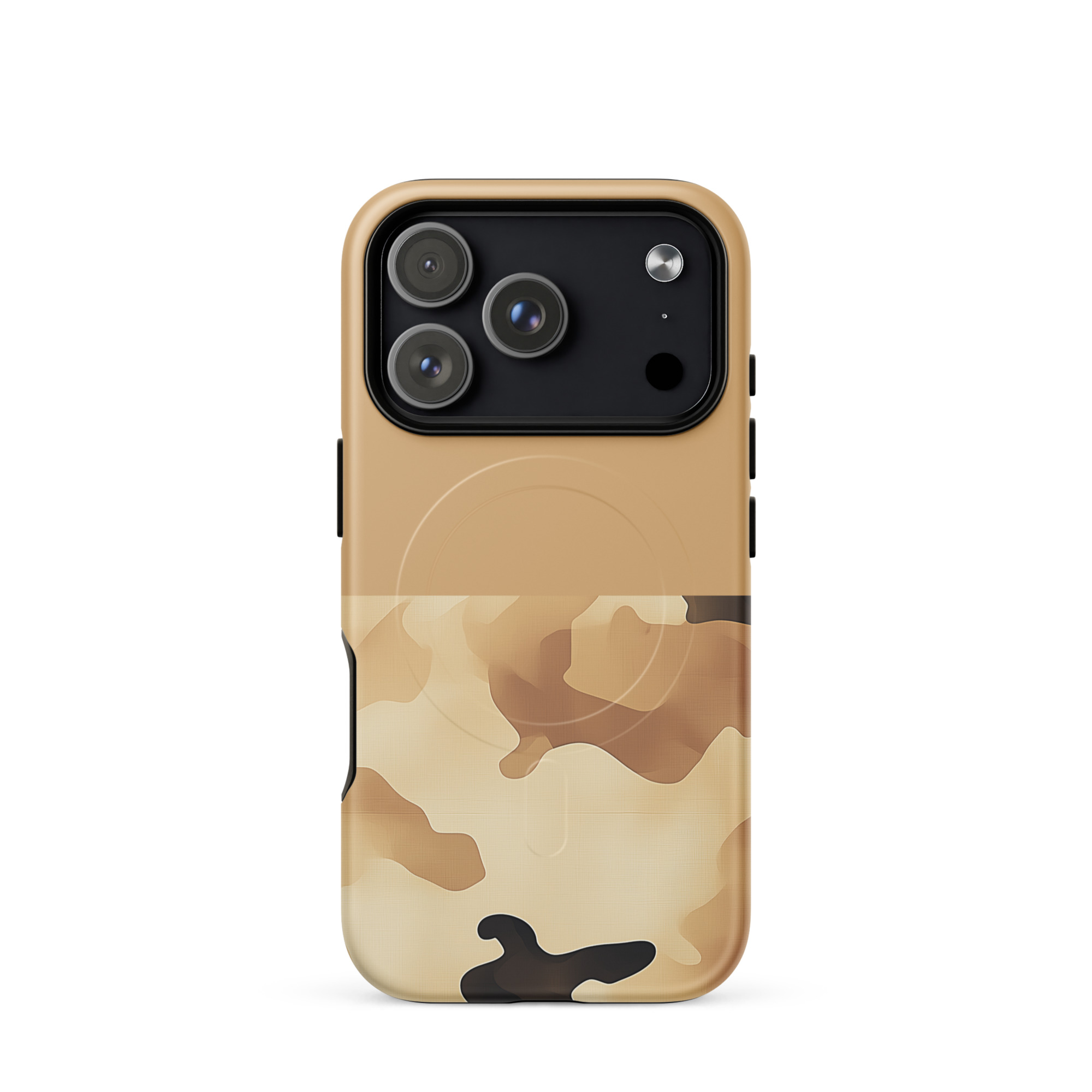 Protect your phone with this tough, dual-layer Desert Camo Half & Half MagSafe case. Its impact-resistant shell and shock-absorbing liner keep your device safe, while built-in MagSafe® magnets ensure secure attachment and faster wireless charging.