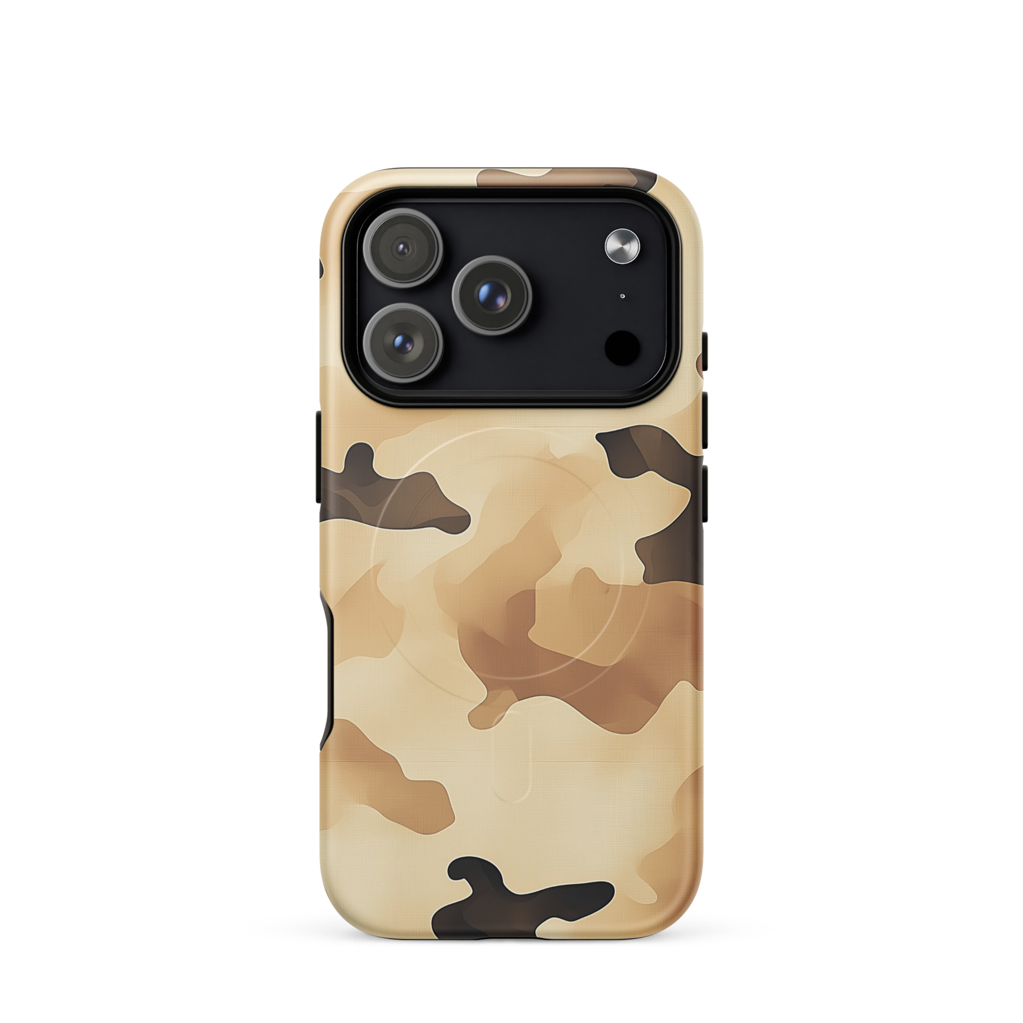 Protect your phone with this tough, dual-layer desert camo case. Its impact-resistant shell and shock-absorbing liner keep your device safe, while built-in MagSafe® magnets ensure secure attachment and faster wireless charging.