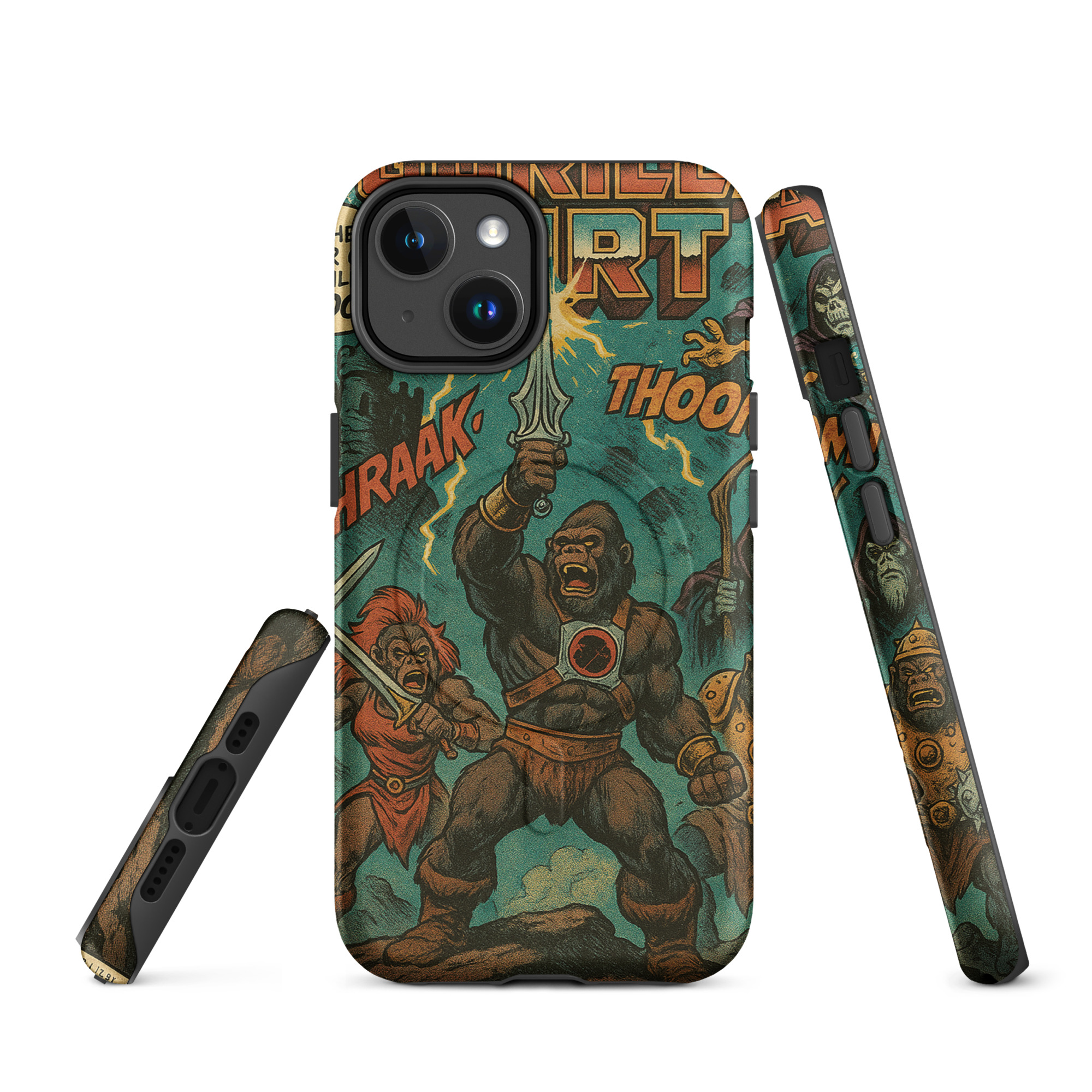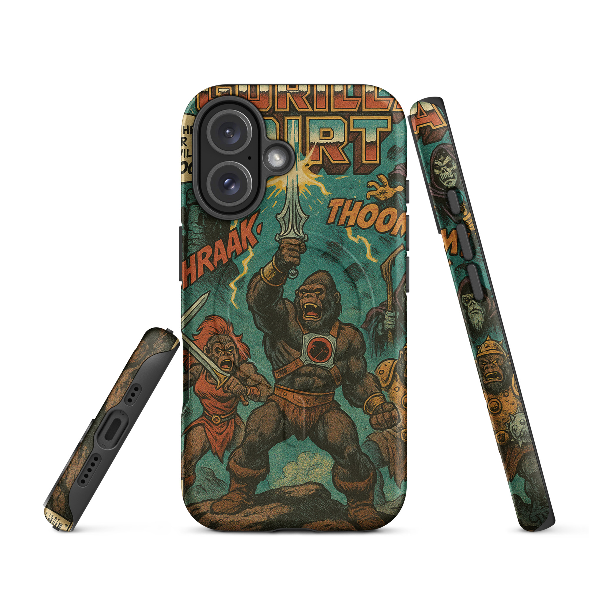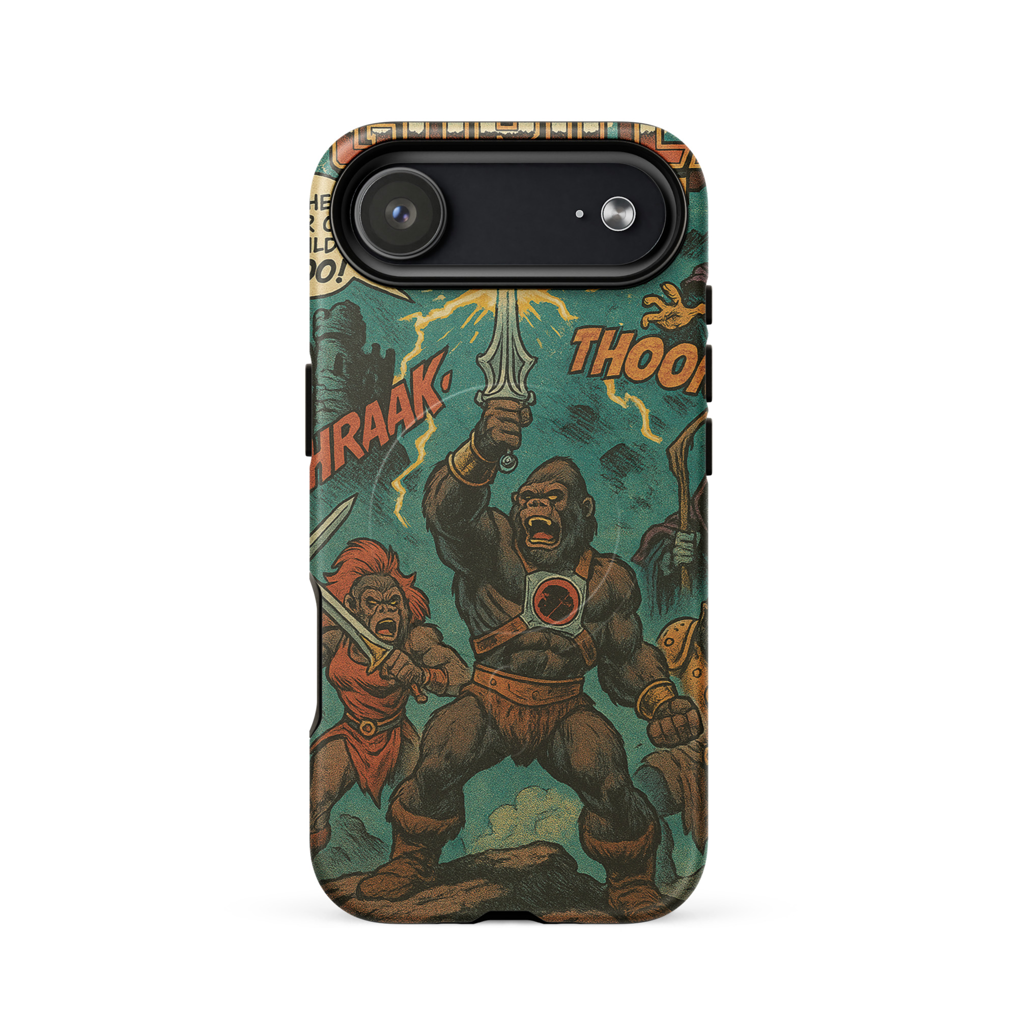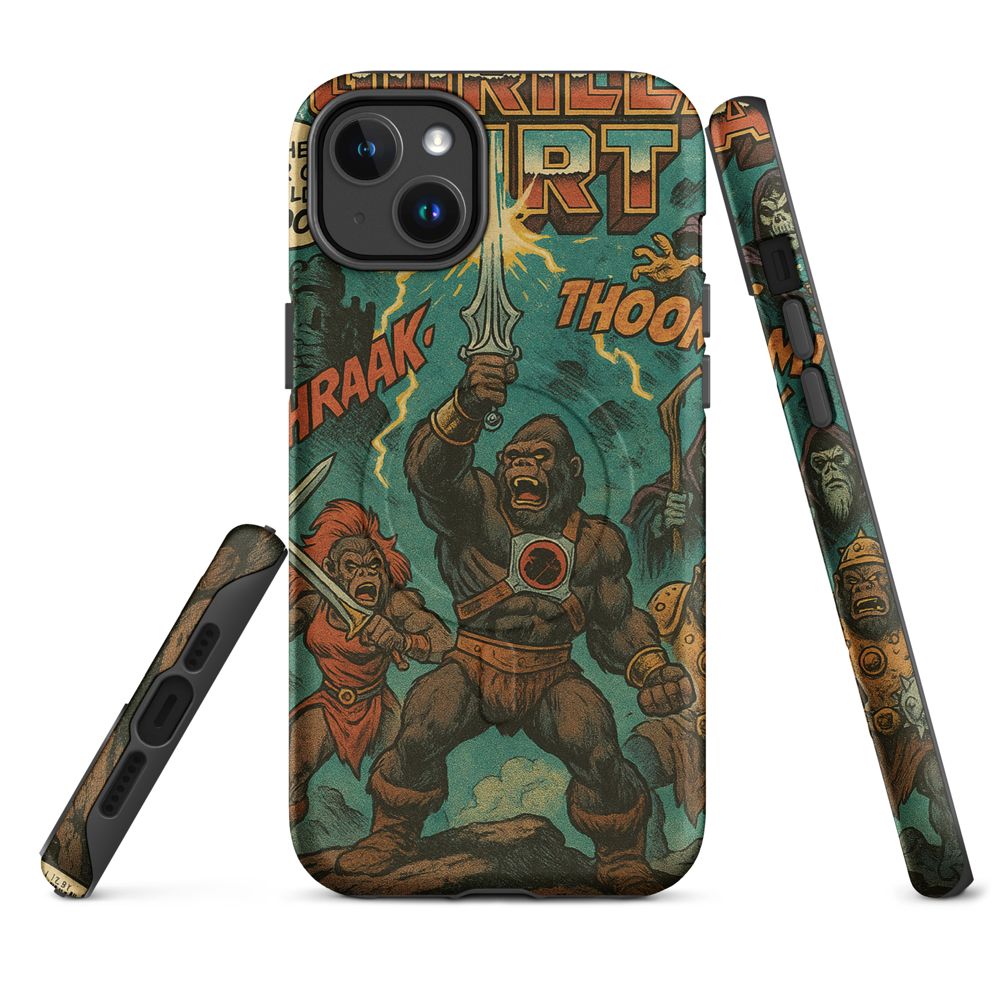 A recreation of a He-Man comic. Protect your phone with this tough, dual-layer He-Gorilla MagSafe Phone Case. Its impact-resistant shell and shock-absorbing liner keep your device safe, while built-in MagSafe® magnets ensure secure attachment and faster wireless charging.