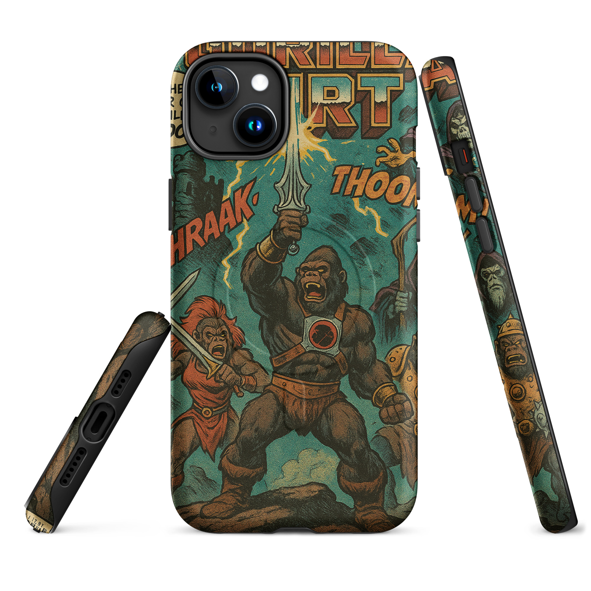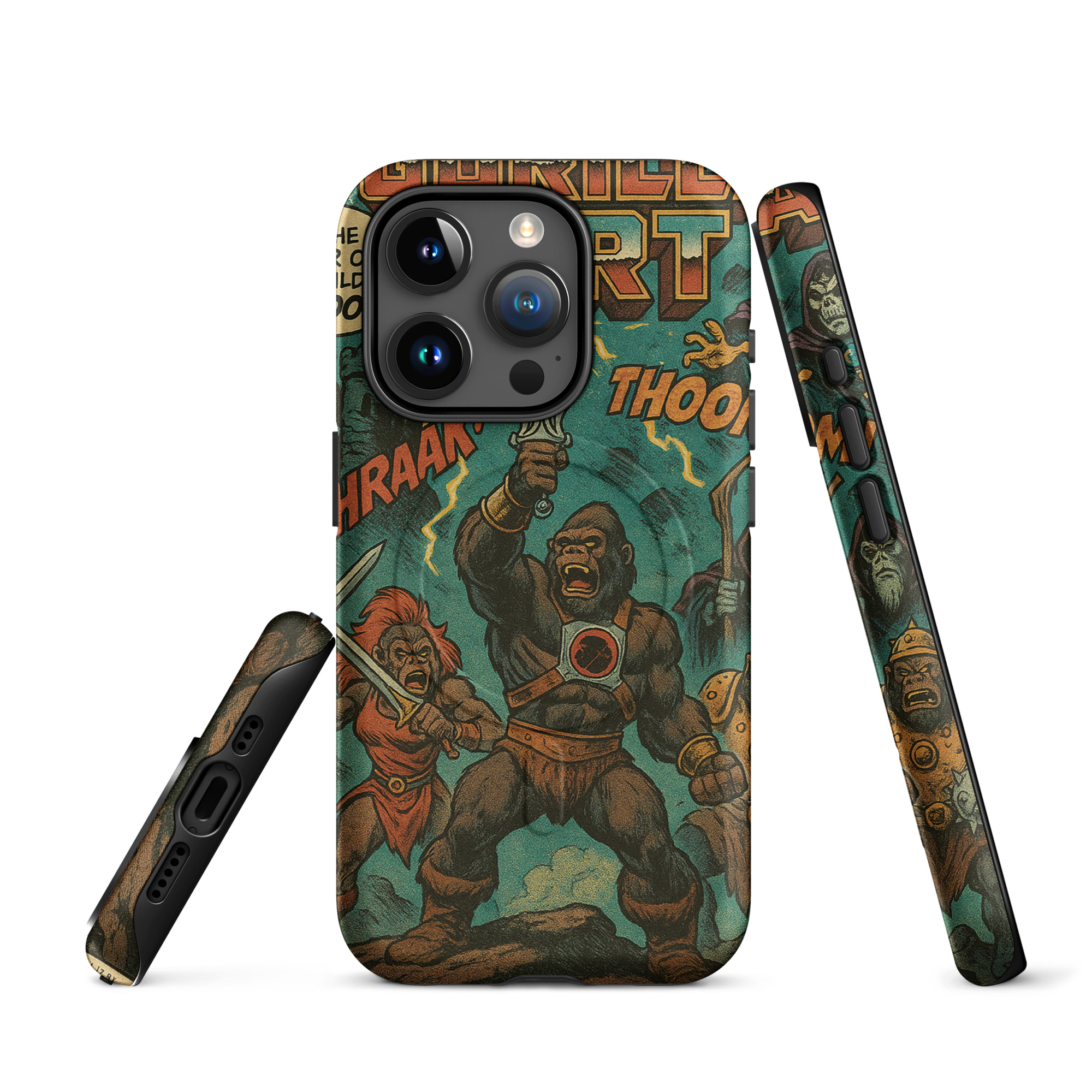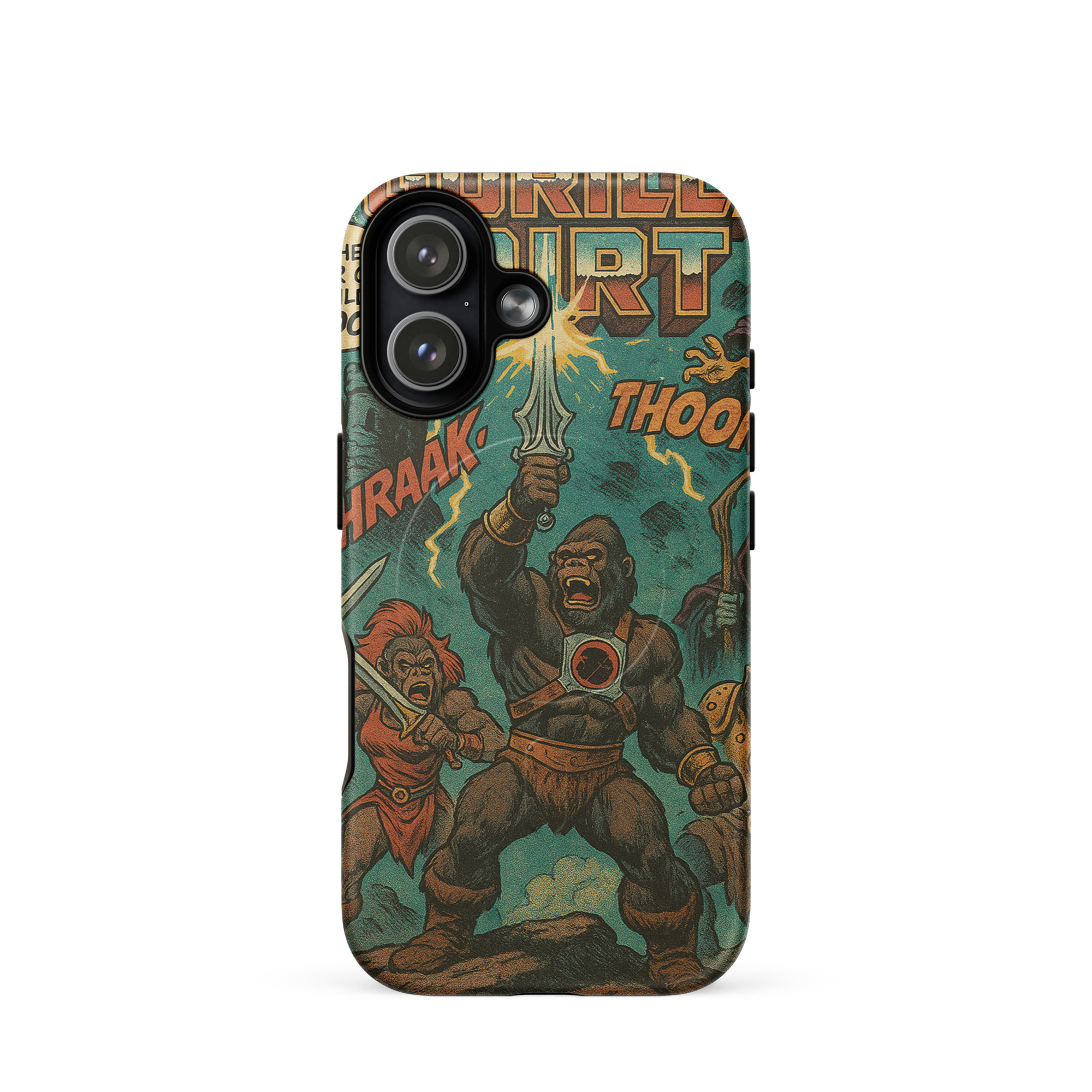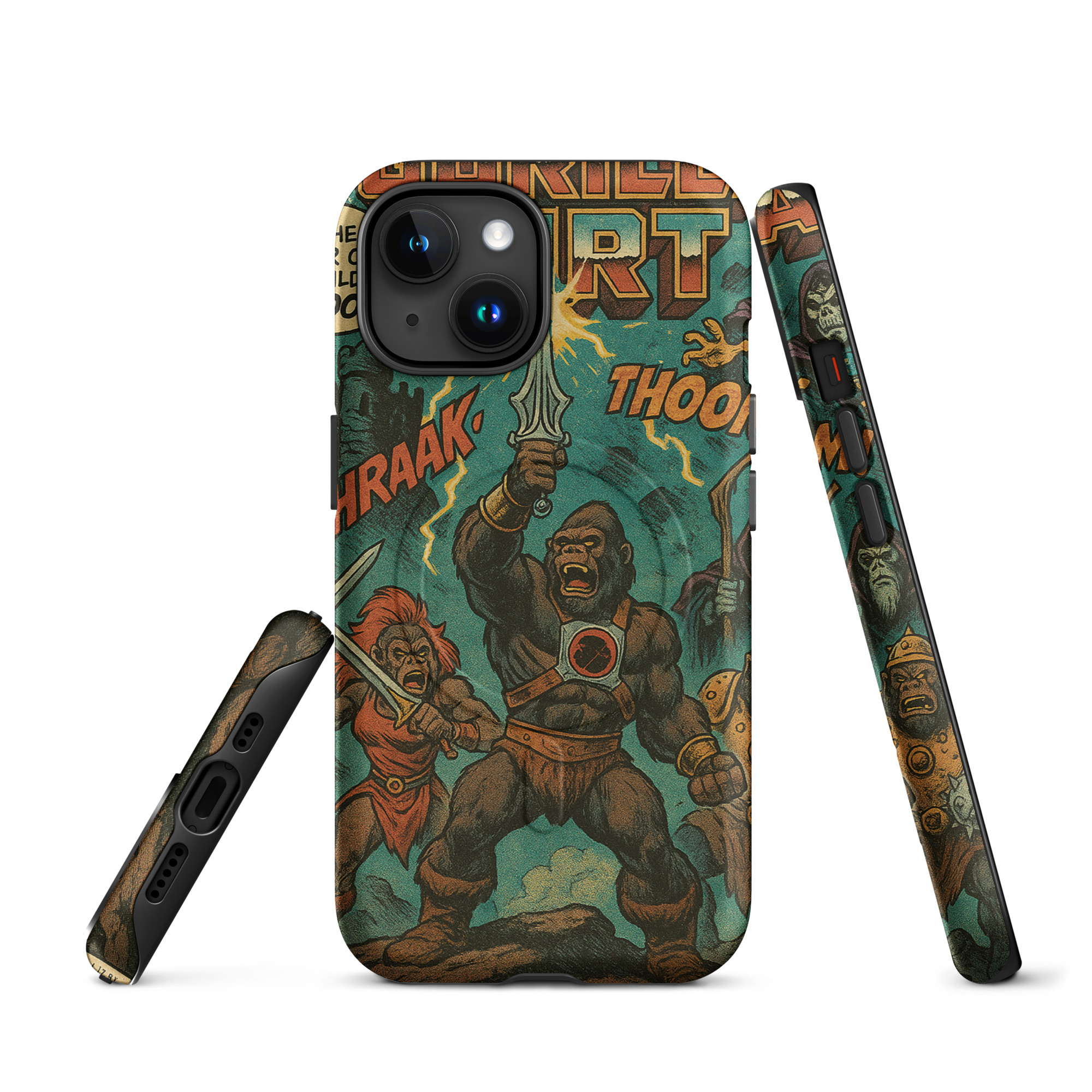 A recreation of a He-Man comic. Protect your phone with this tough, dual-layer He-Gorilla MagSafe Phone Case. Its impact-resistant shell and shock-absorbing liner keep your device safe, while built-in MagSafe® magnets ensure secure attachment and faster wireless charging.