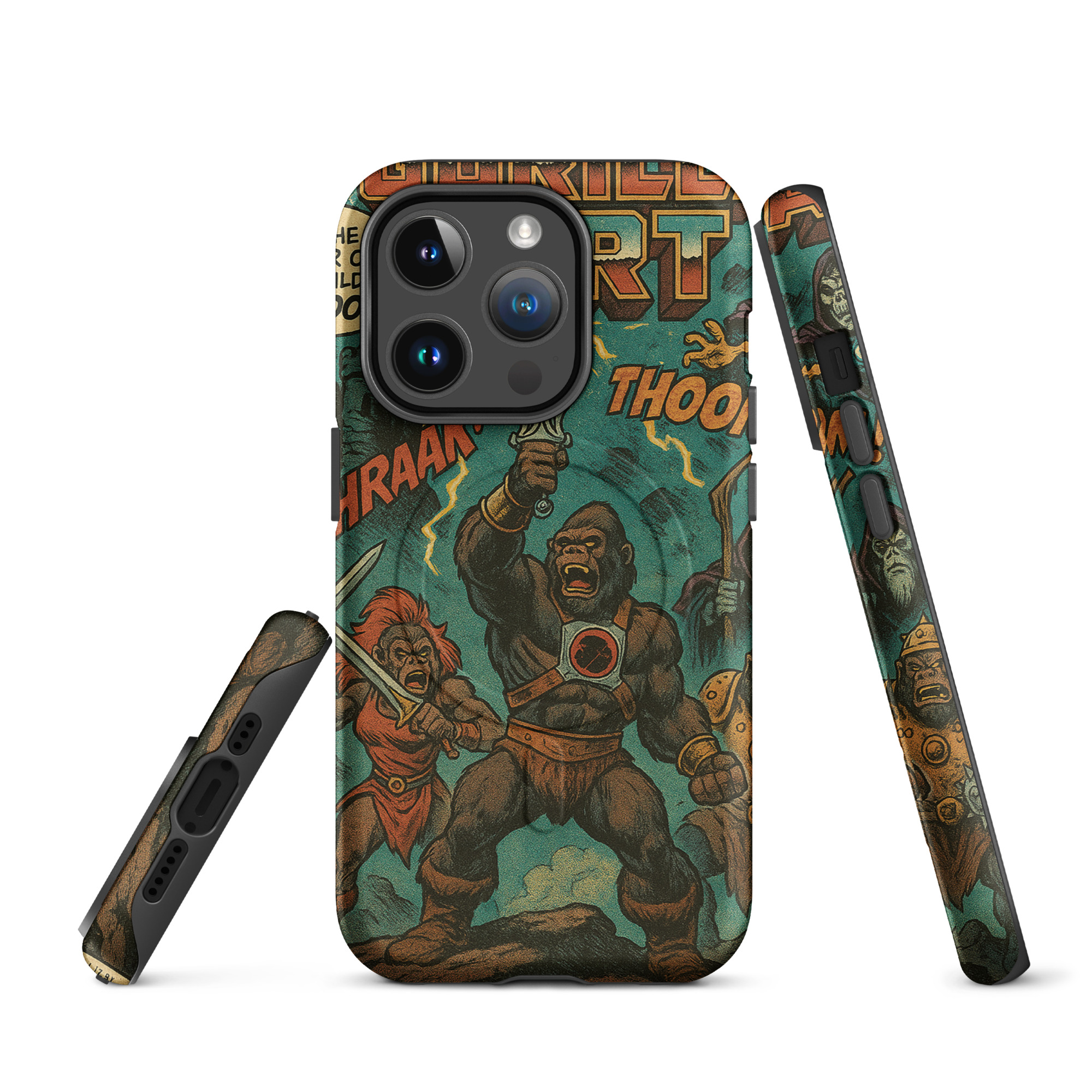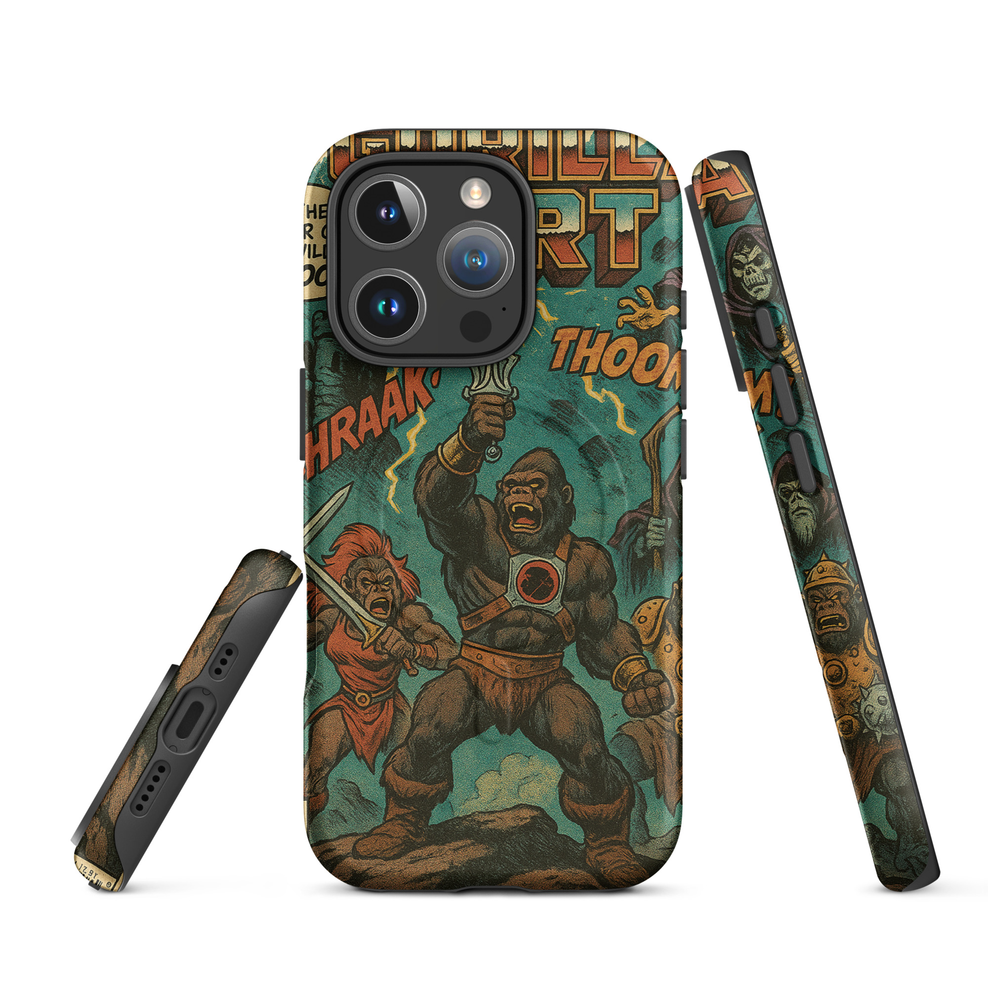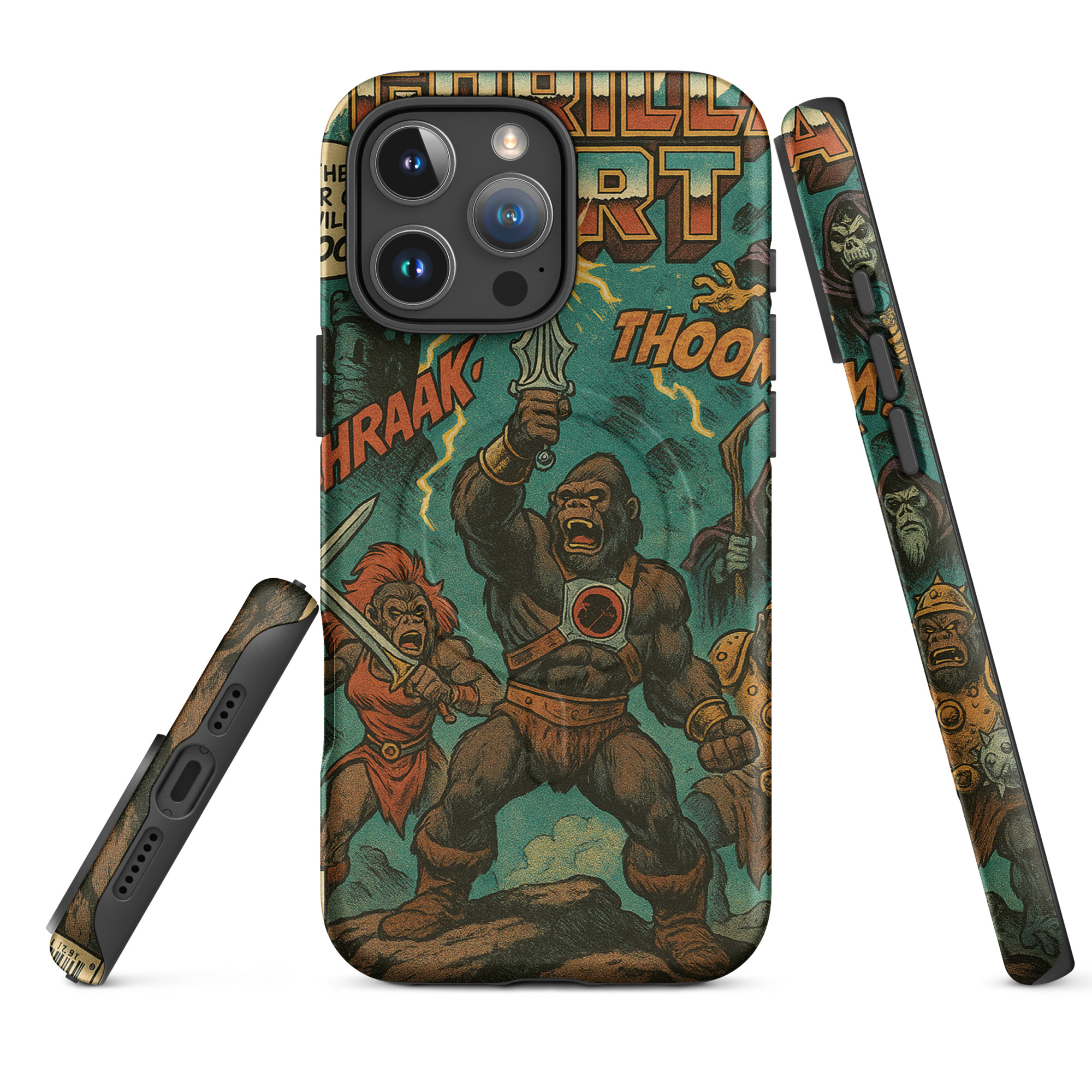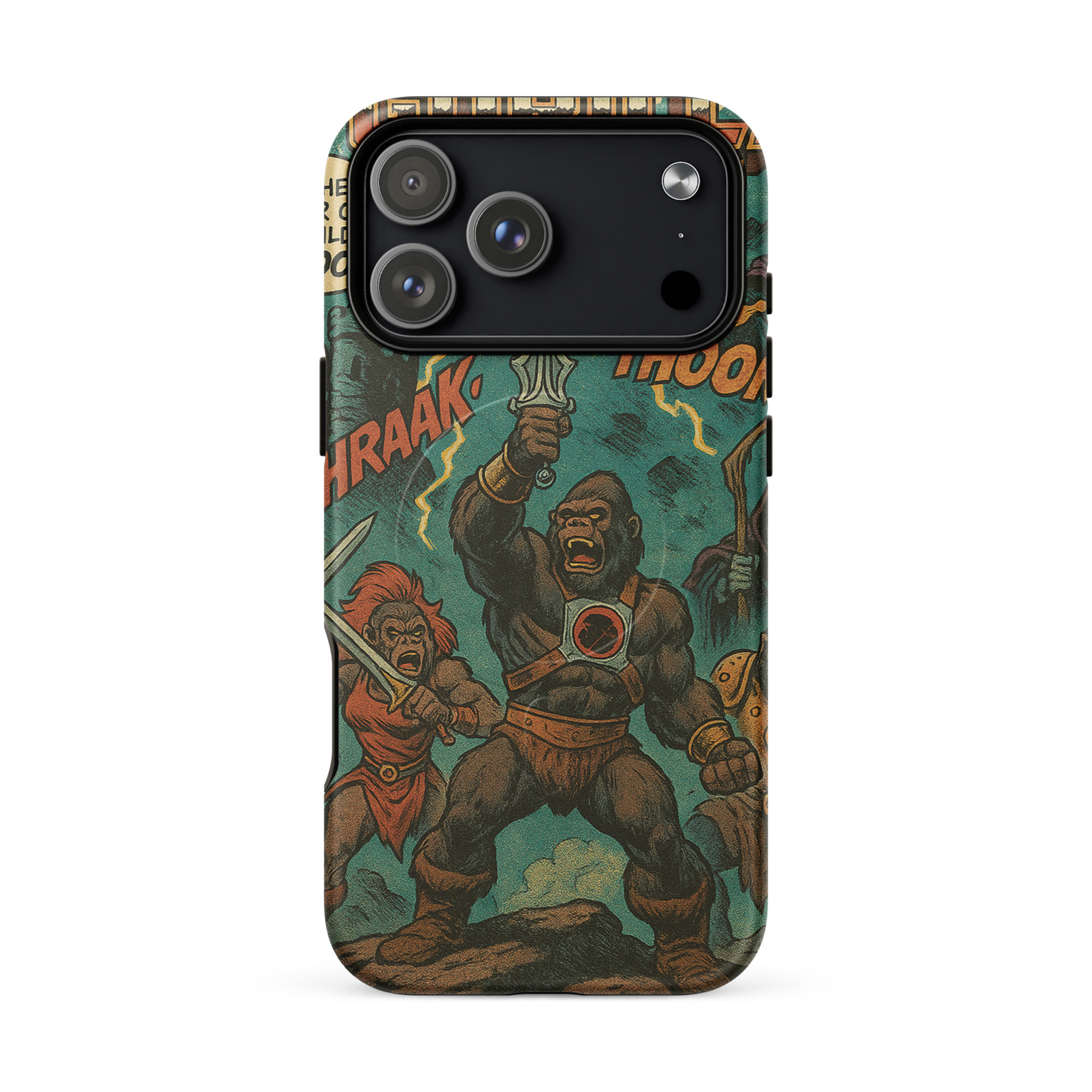 A recreation of a He-Man comic. Protect your phone with this tough, dual-layer He-Gorilla MagSafe Phone Case. Its impact-resistant shell and shock-absorbing liner keep your device safe, while built-in MagSafe® magnets ensure secure attachment and faster wireless charging.