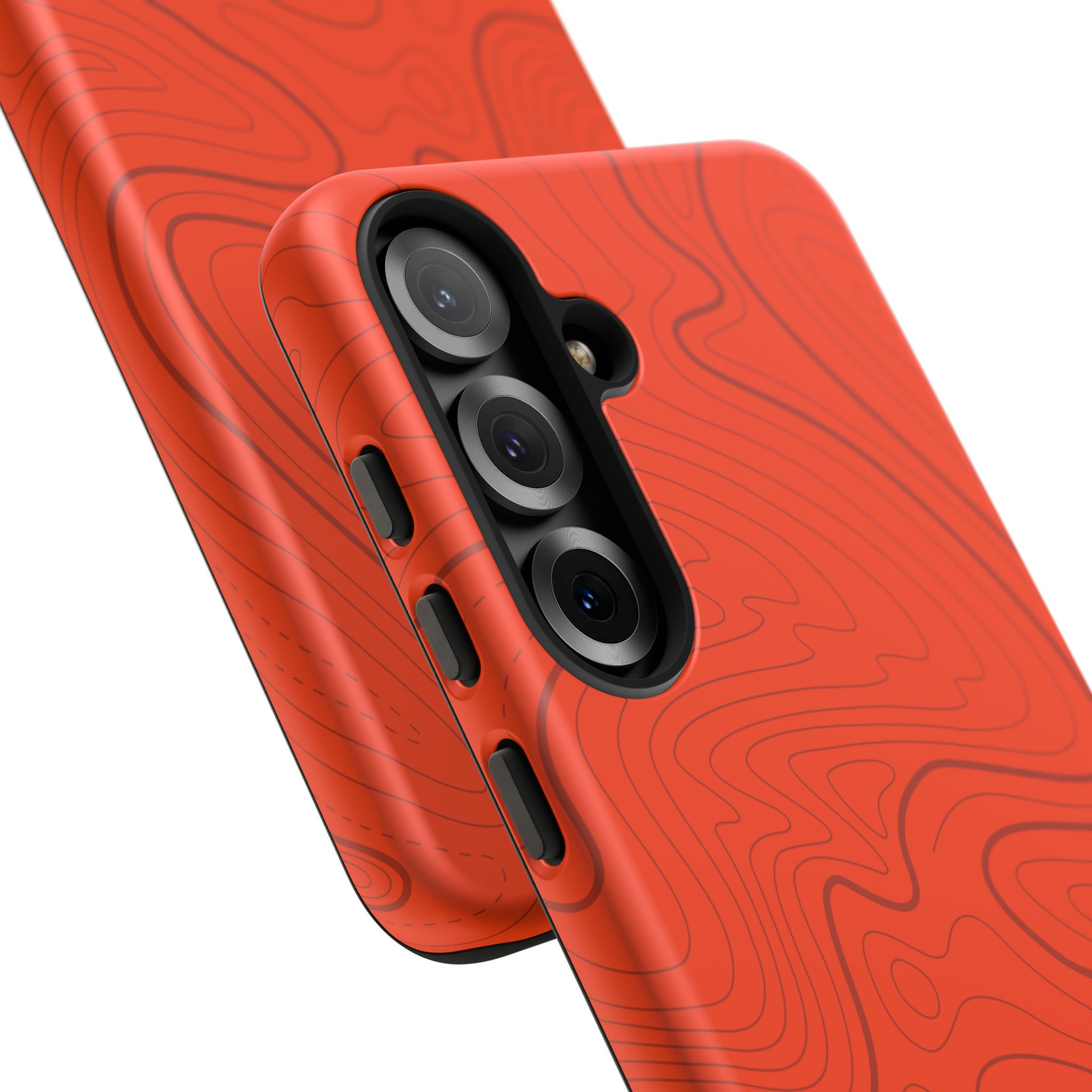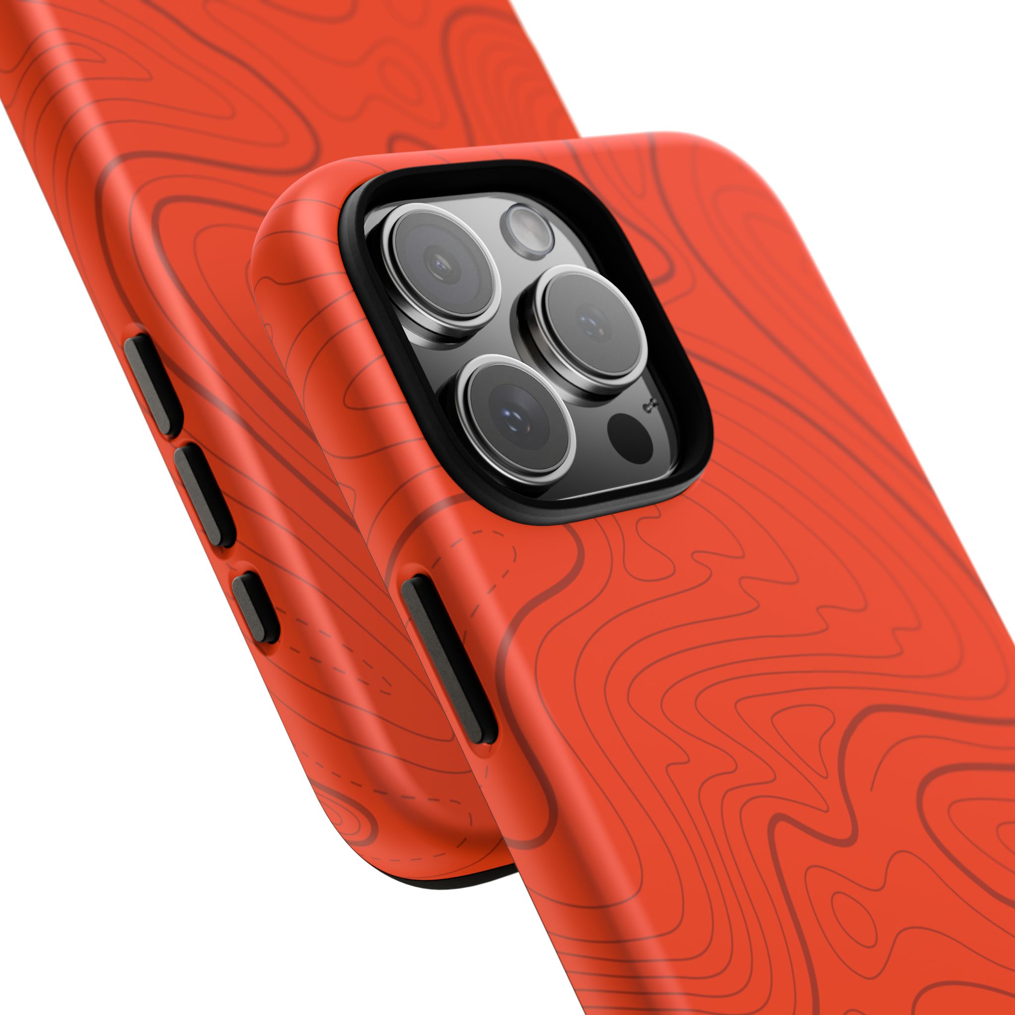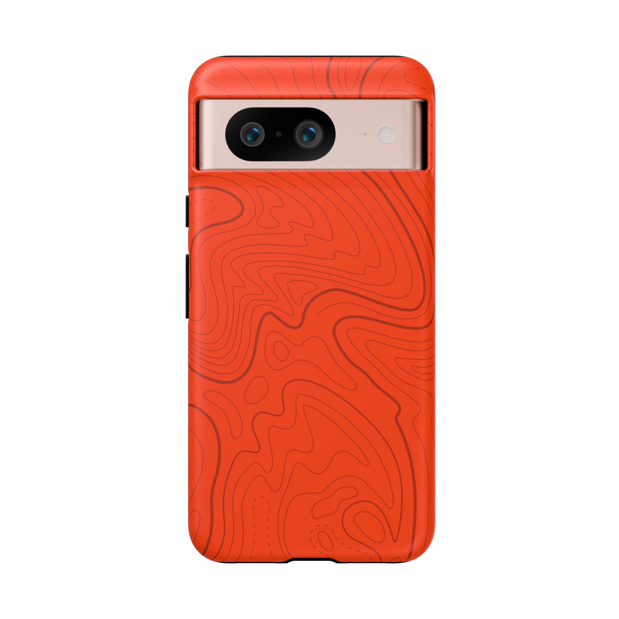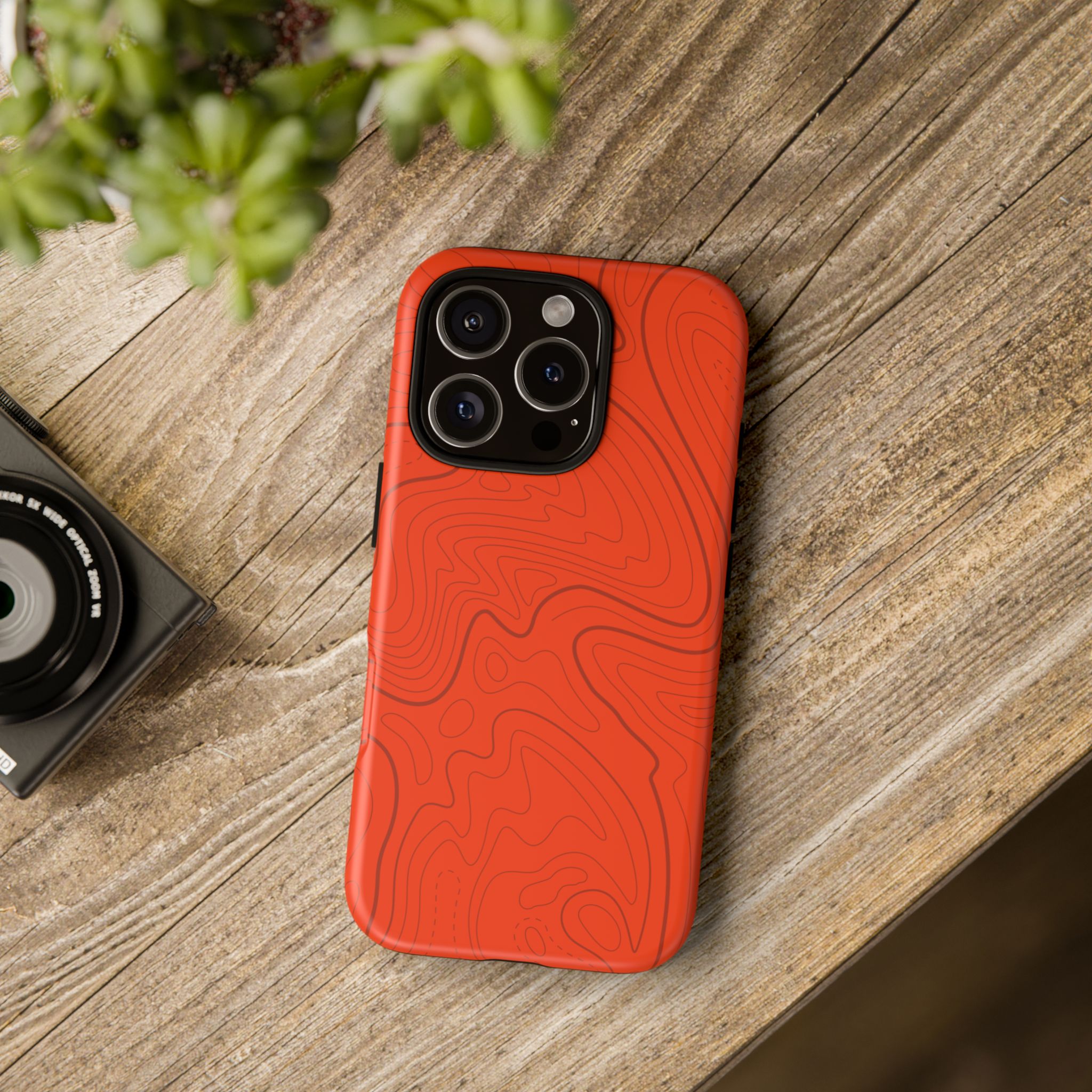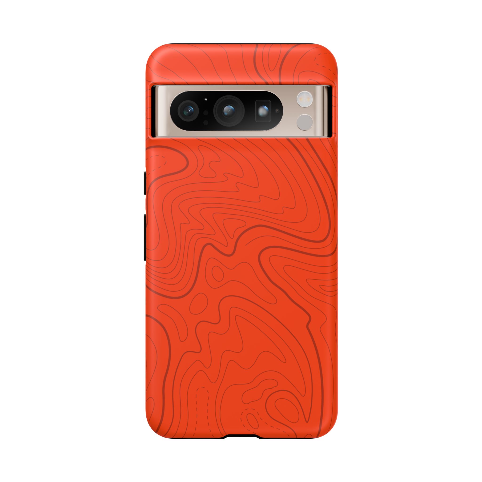 Hunter Orange Topo Phone Case. For iPhone, Samsung Galaxy, and Google Pixel devices. Every case has double layers for extra durability and protection while the clear, open ports stay out of your way when it comes to charging.. The outer polycarbonate shell will resist daily impacts. Smooth, matte finish.