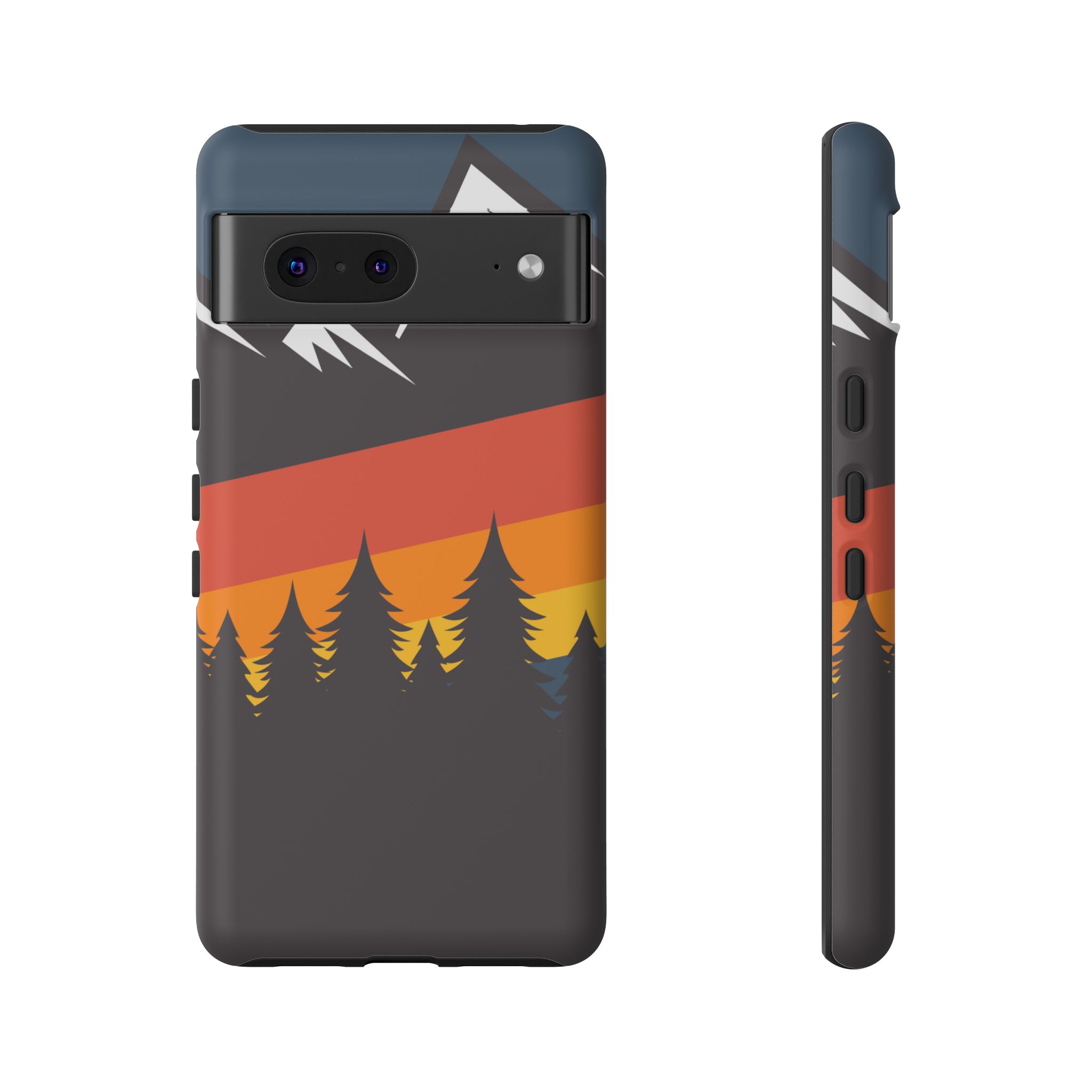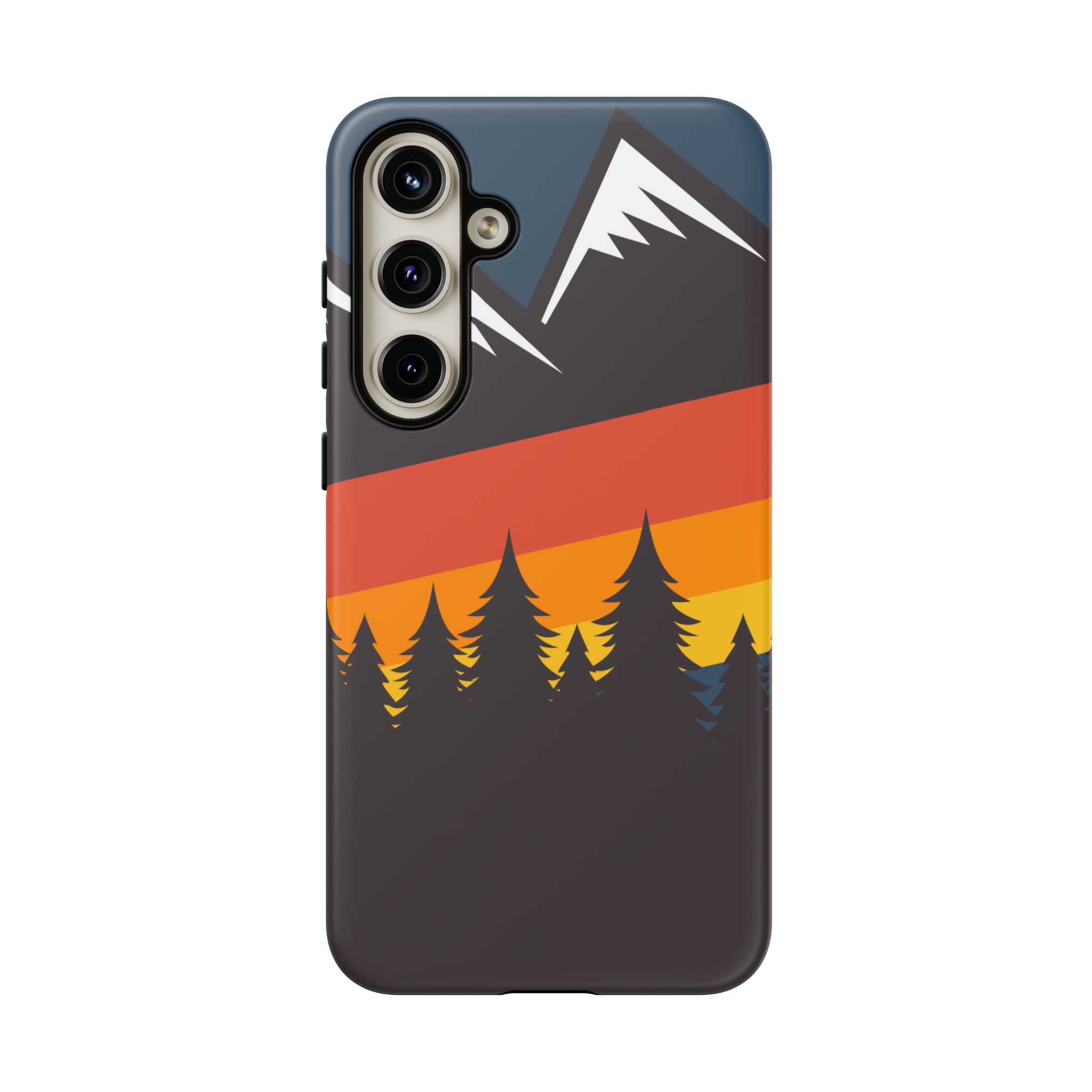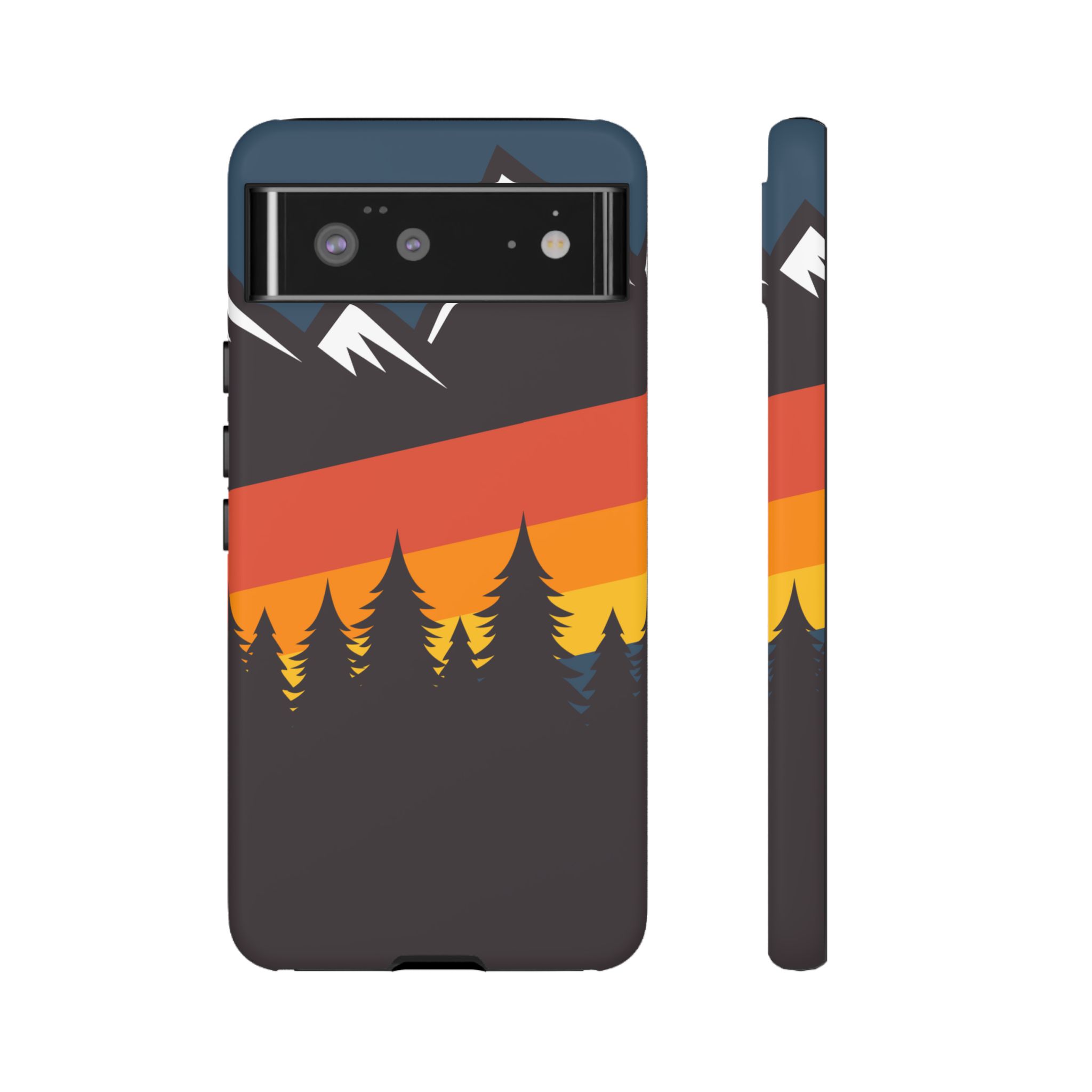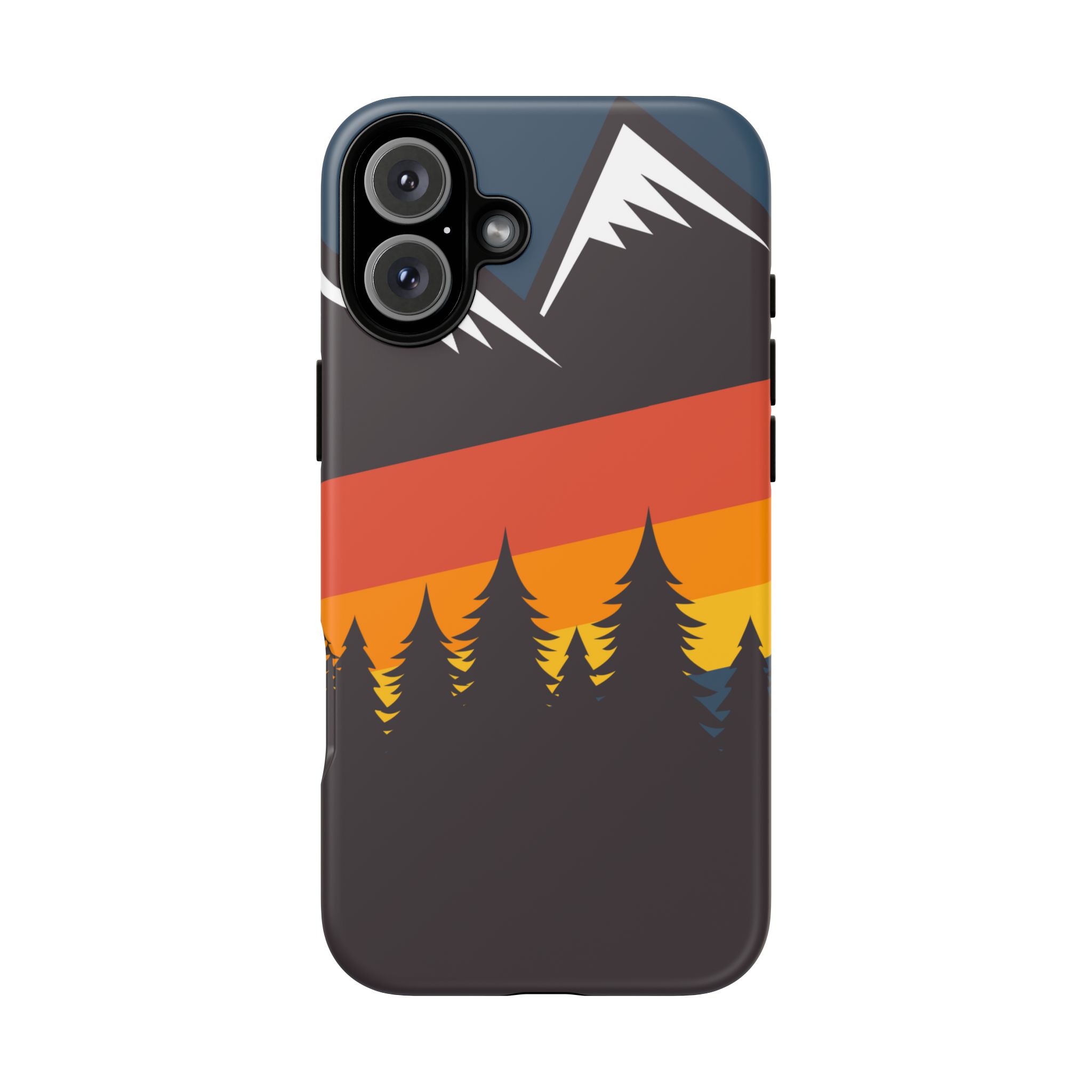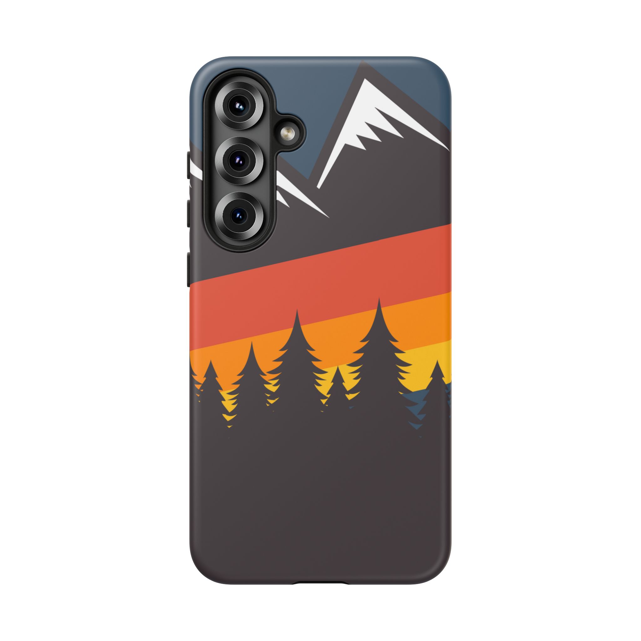Mountain Stripes phone case. For iPhone, Samsung Galaxy, and Google Pixel devices. Every case has double layers for extra durability and protection while the clear, open ports stay out of your way when it comes to charging.. The outer polycarbonate shell will resist daily impacts. Smooth, matte finish.
