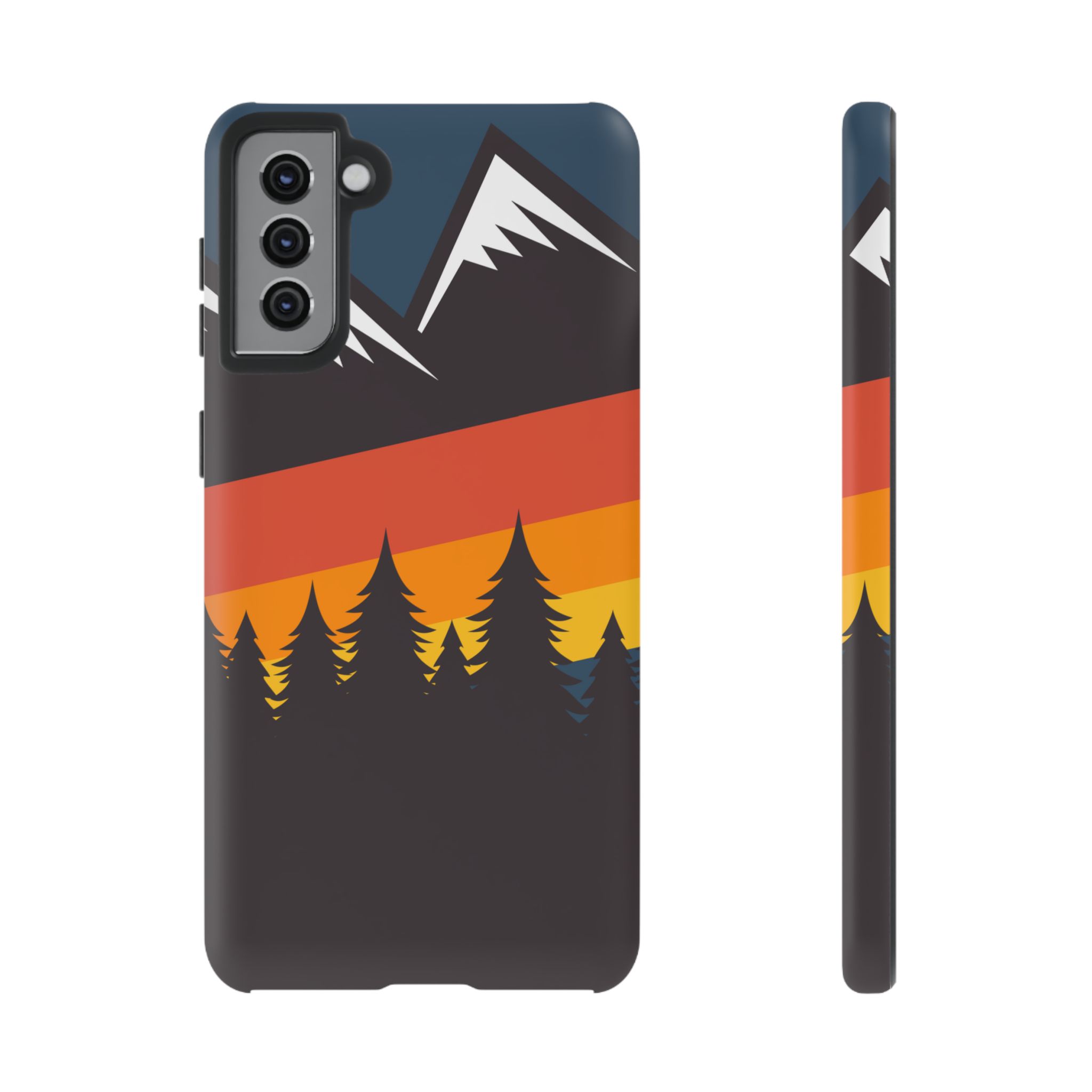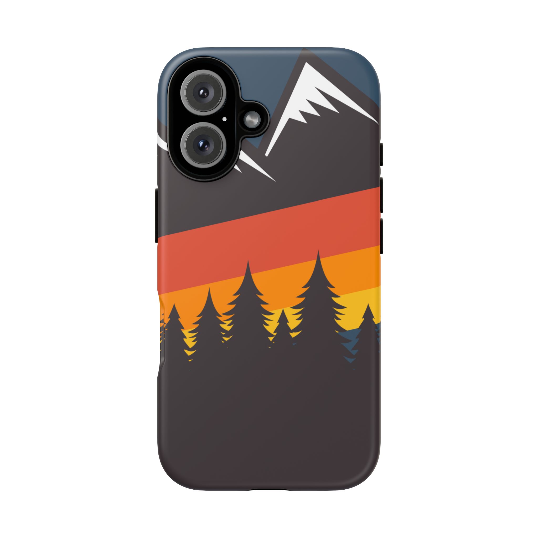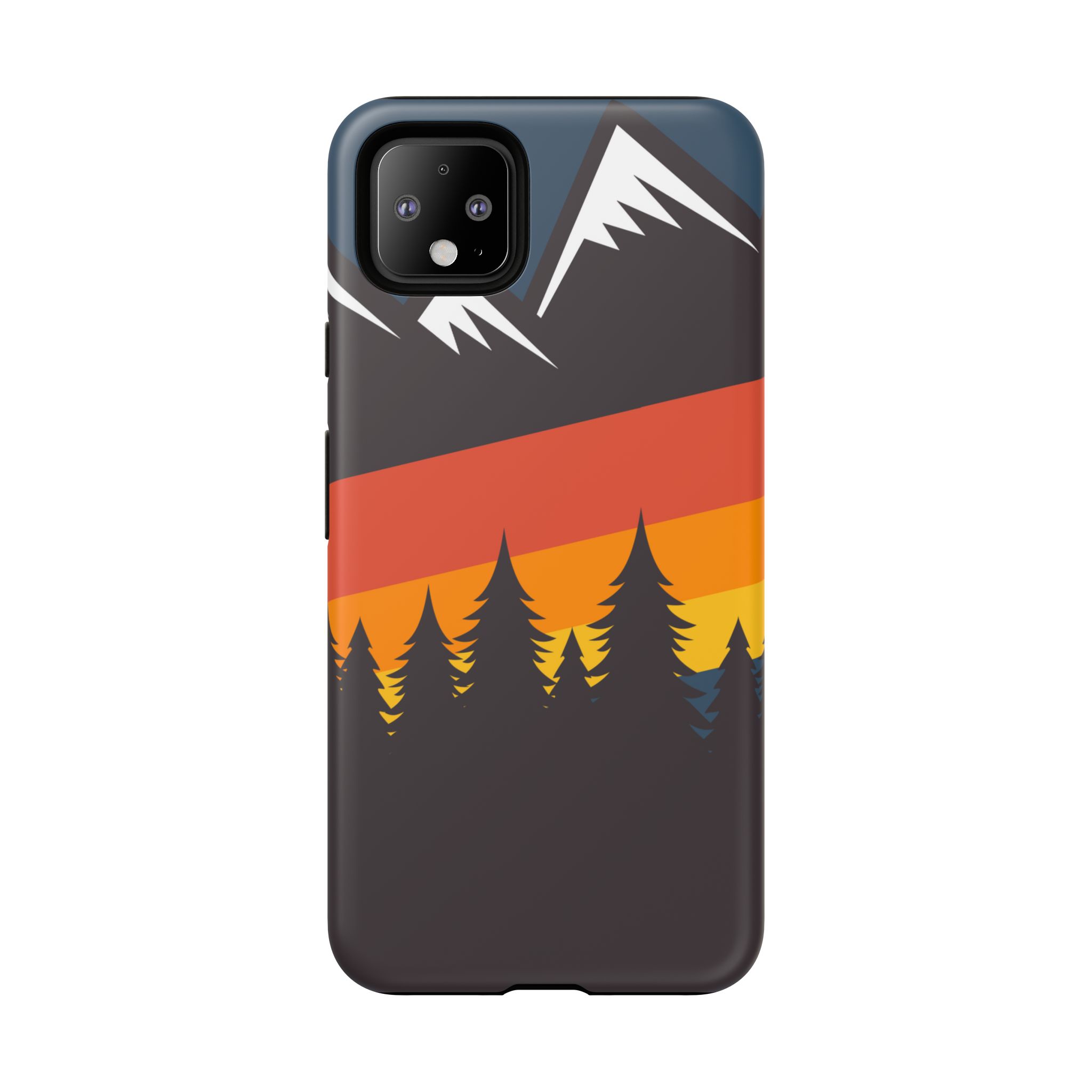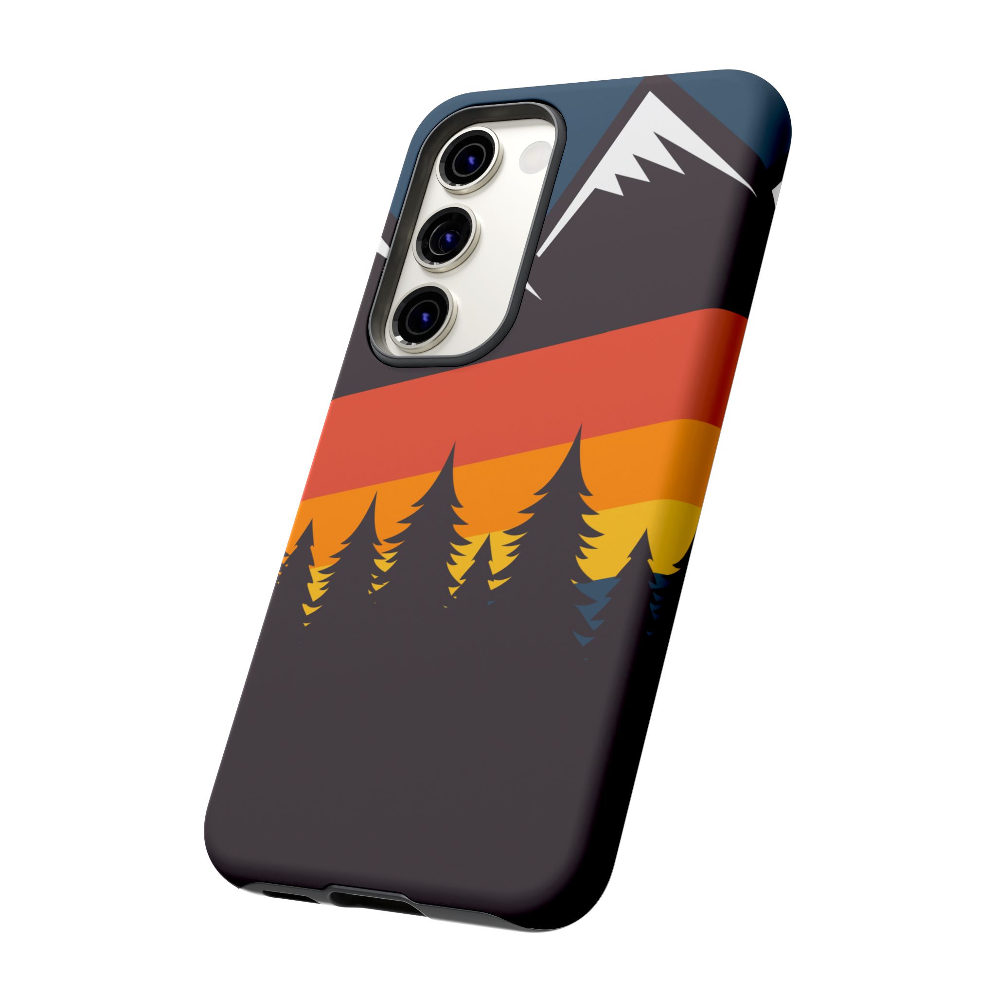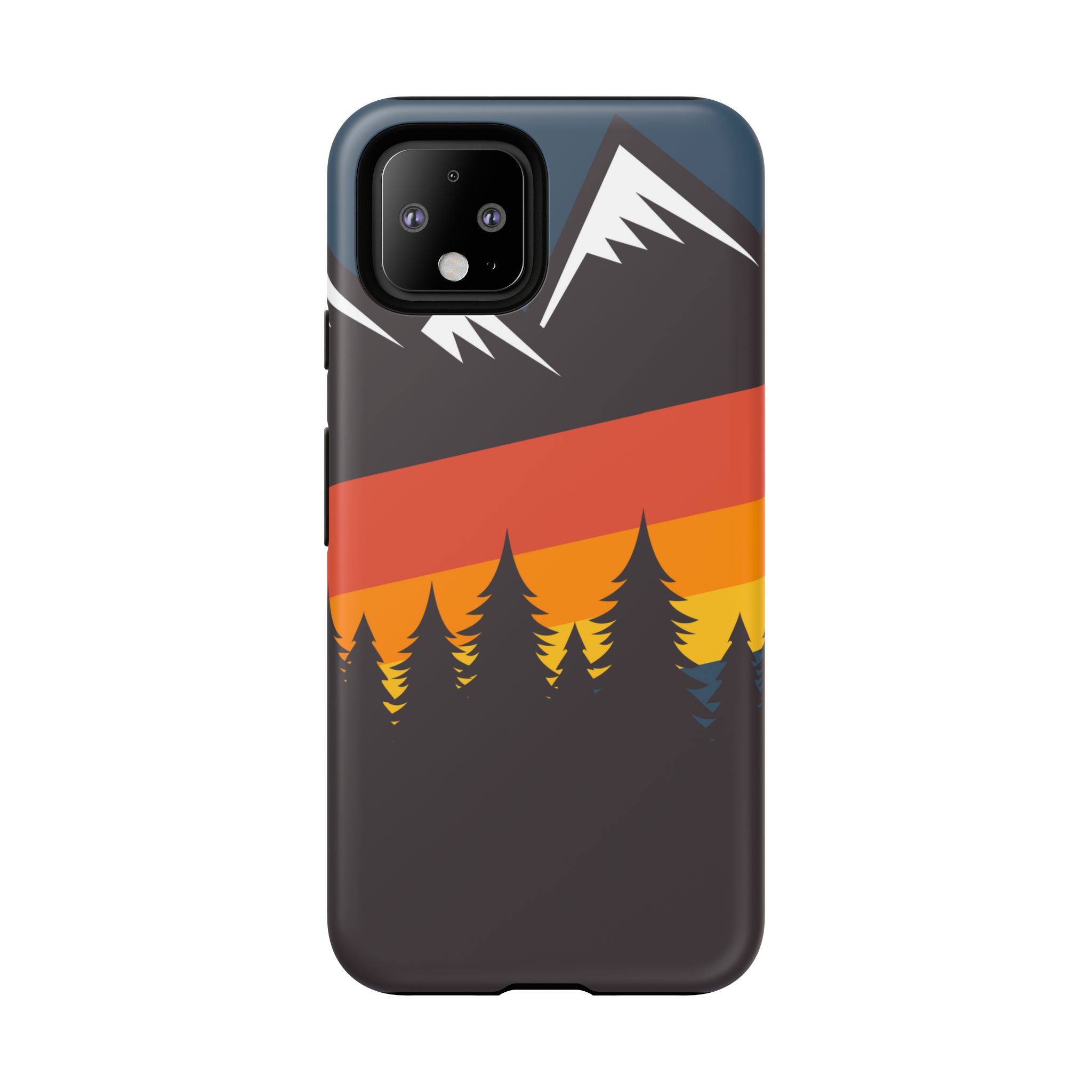 Mountain Stripes phone case. For iPhone, Samsung Galaxy, and Google Pixel devices. Every case has double layers for extra durability and protection while the clear, open ports stay out of your way when it comes to charging.. The outer polycarbonate shell will resist daily impacts. Smooth, matte finish.