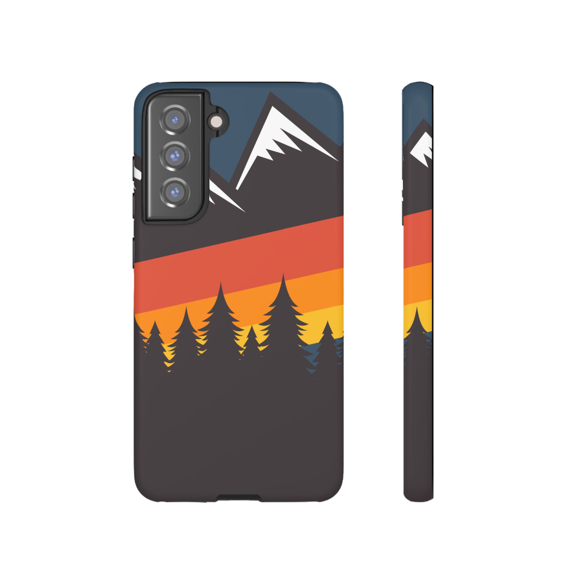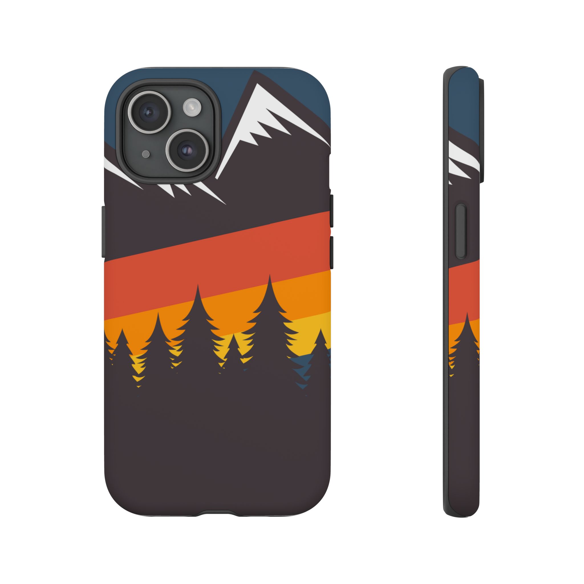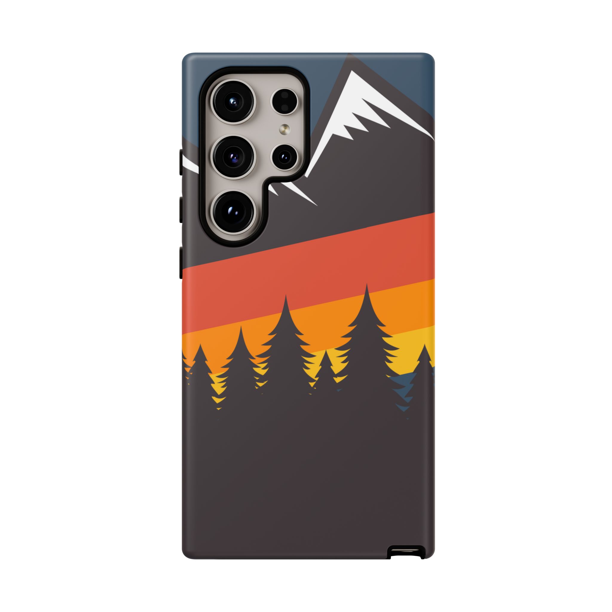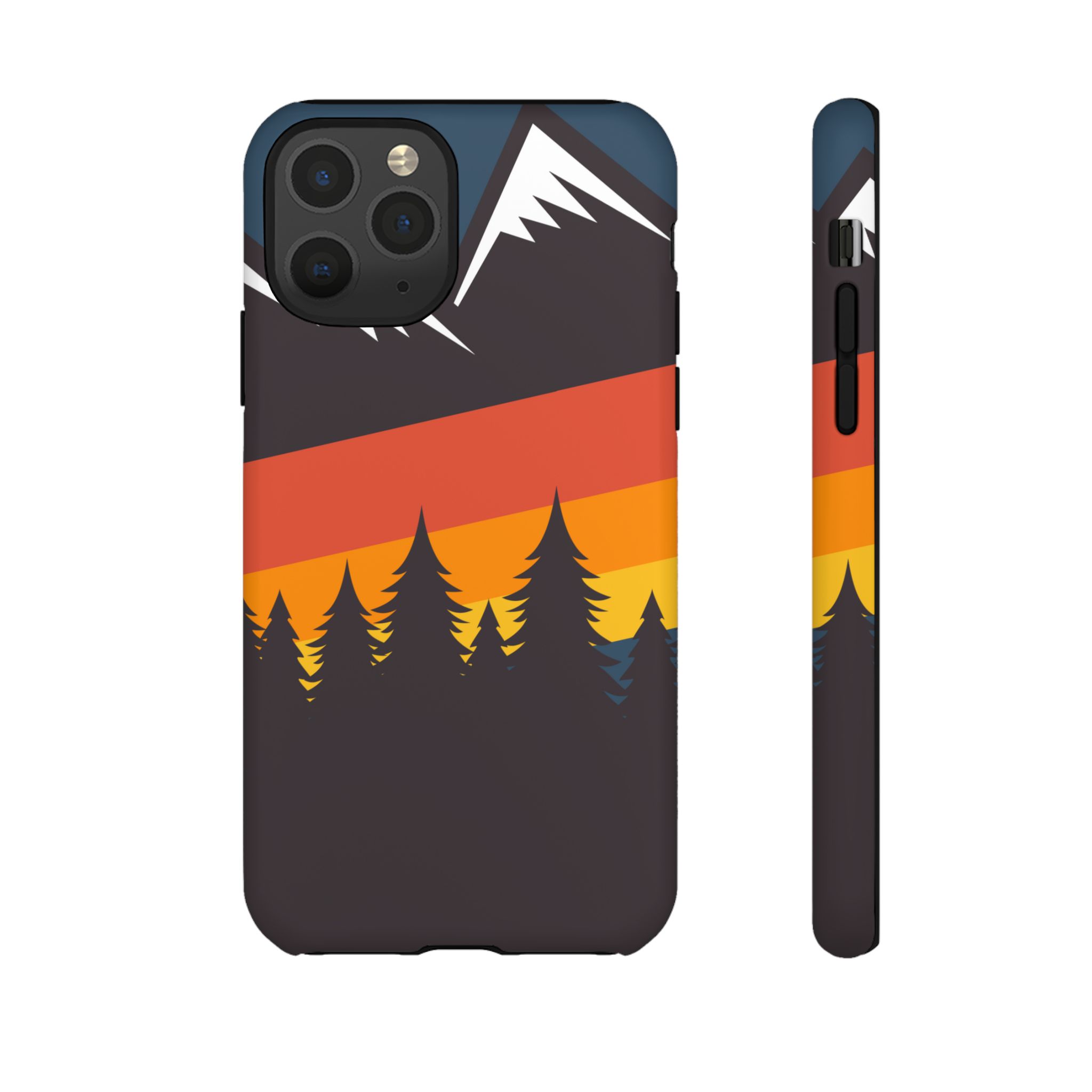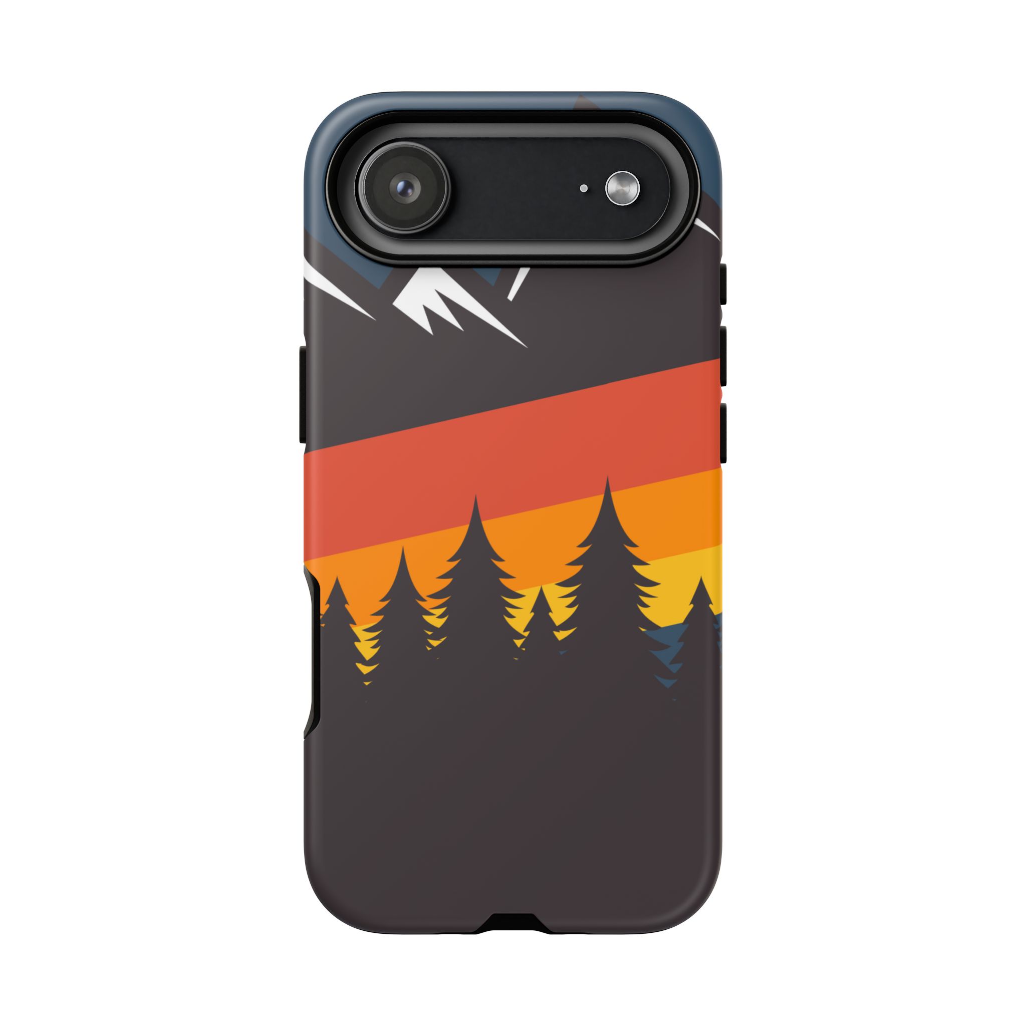 Mountain Stripes phone case. For iPhone, Samsung Galaxy, and Google Pixel devices. Every case has double layers for extra durability and protection while the clear, open ports stay out of your way when it comes to charging.. The outer polycarbonate shell will resist daily impacts. Smooth, matte finish.