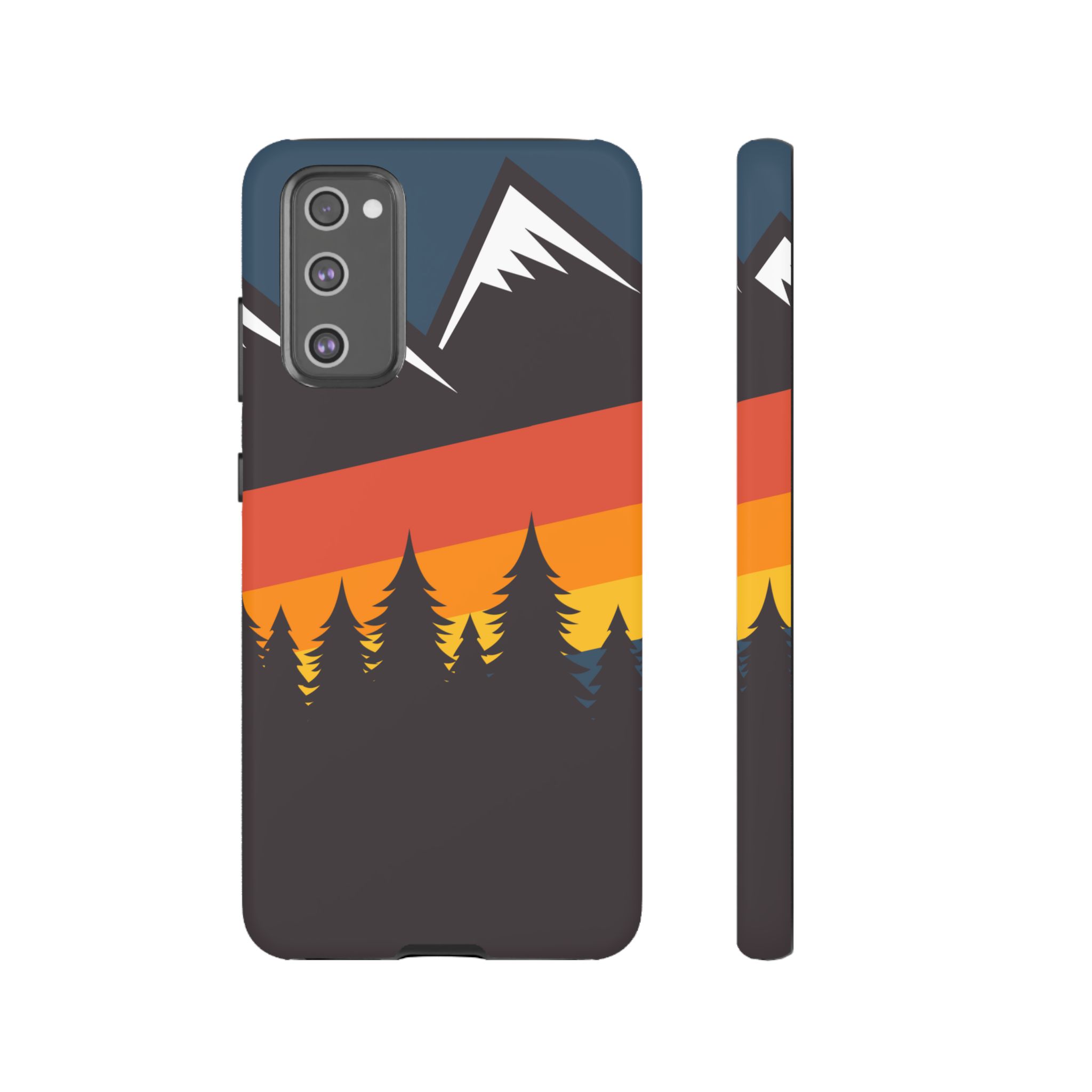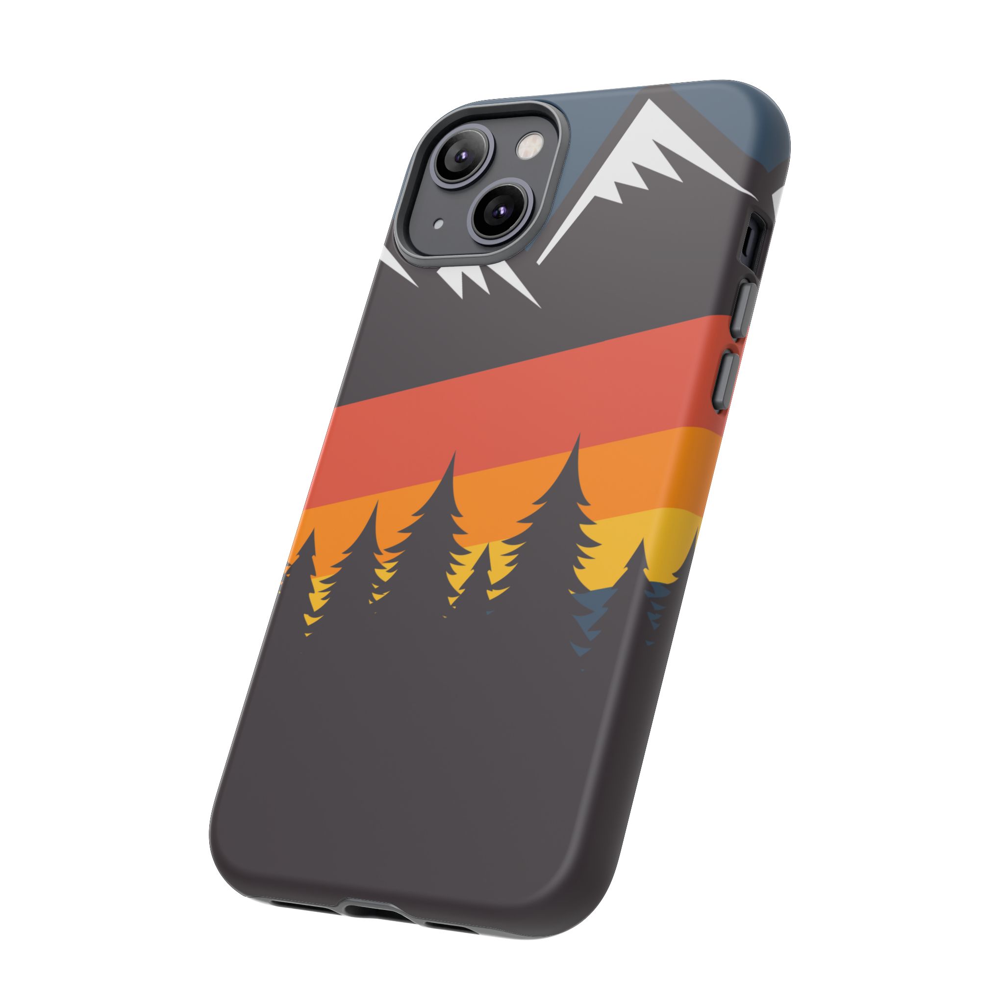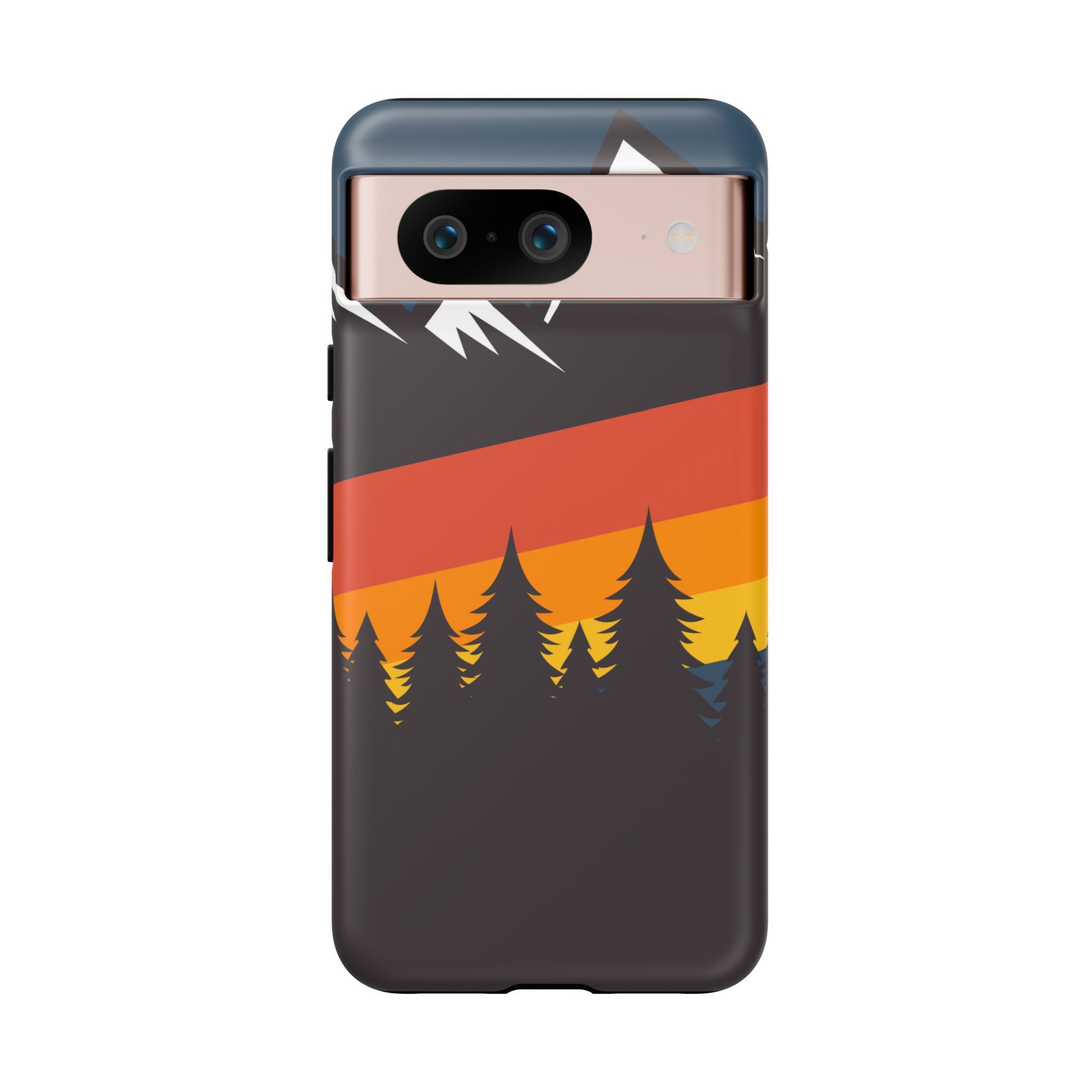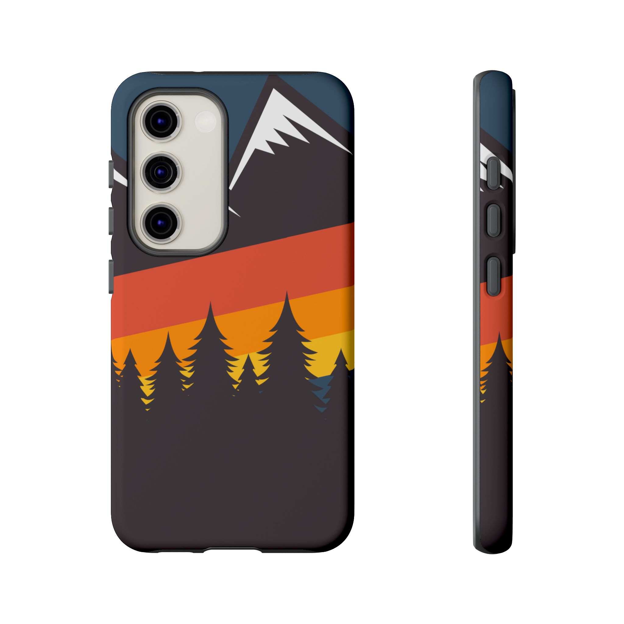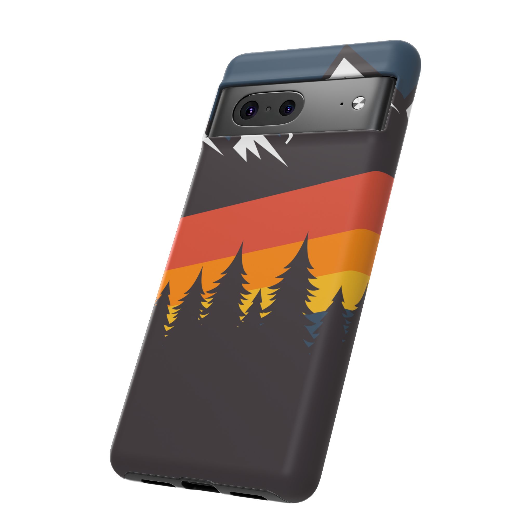 Mountain Stripes phone case. For iPhone, Samsung Galaxy, and Google Pixel devices. Every case has double layers for extra durability and protection while the clear, open ports stay out of your way when it comes to charging.. The outer polycarbonate shell will resist daily impacts. Smooth, matte finish.