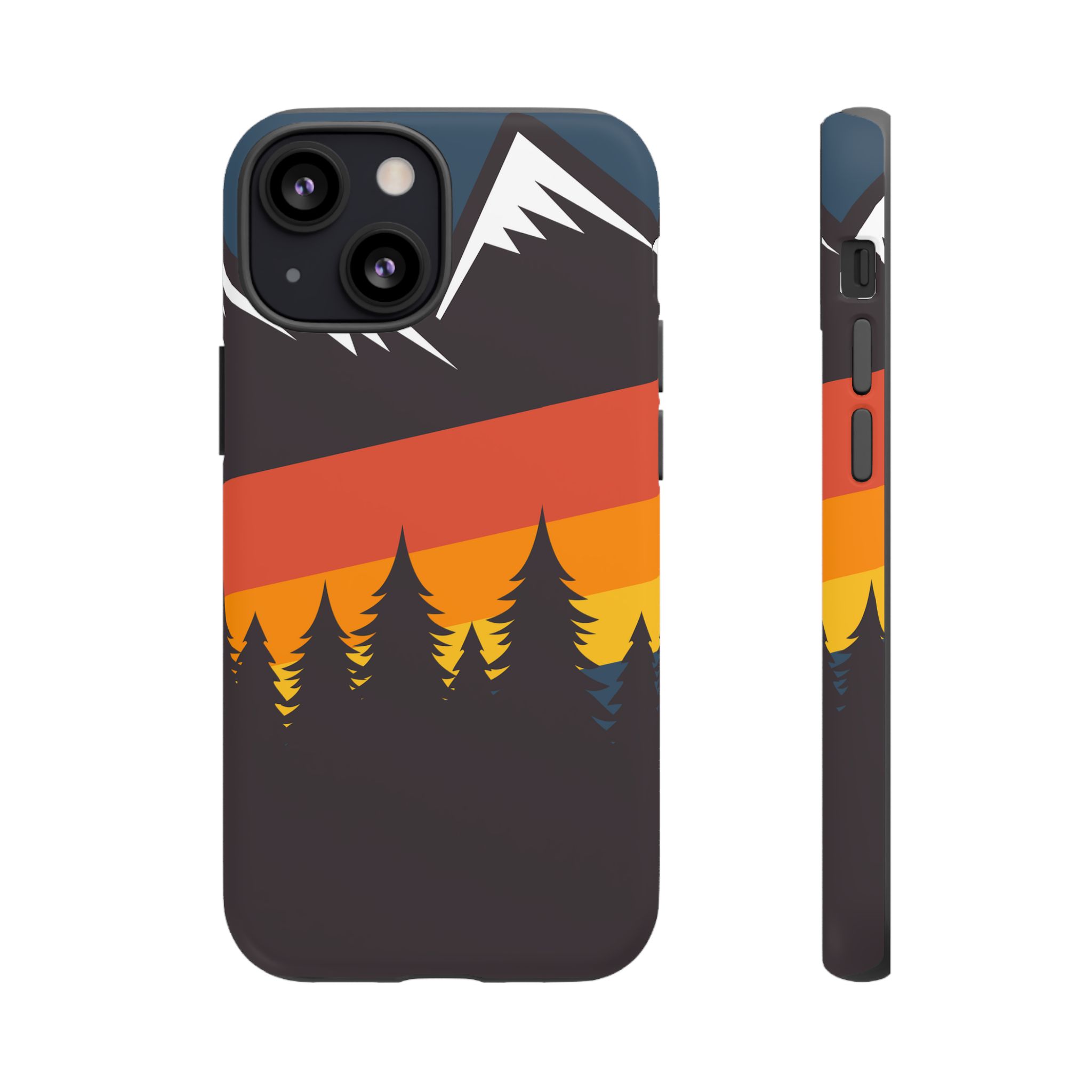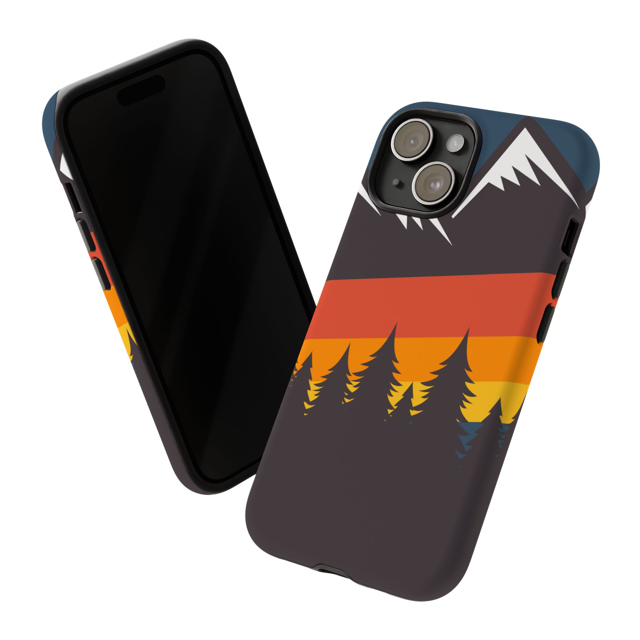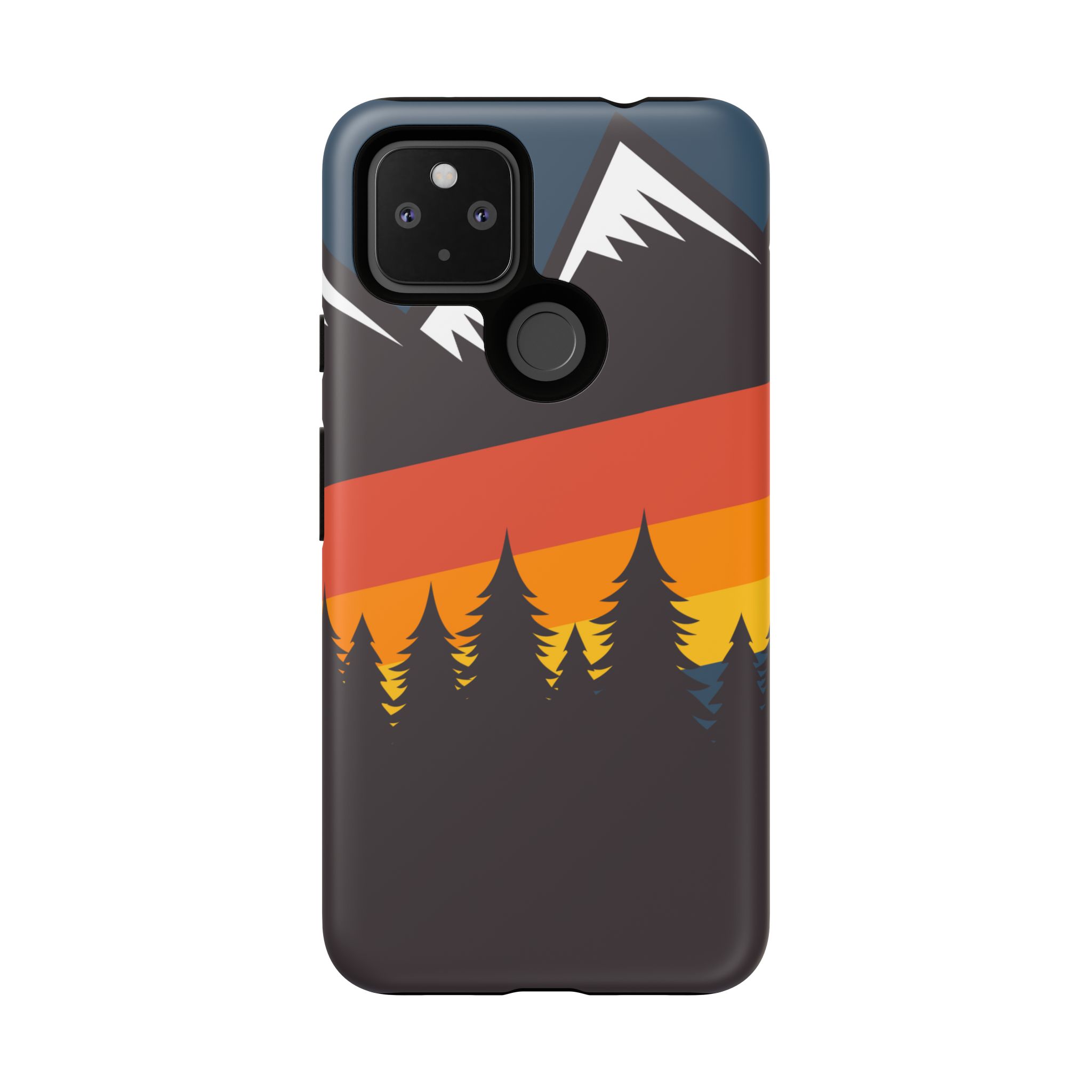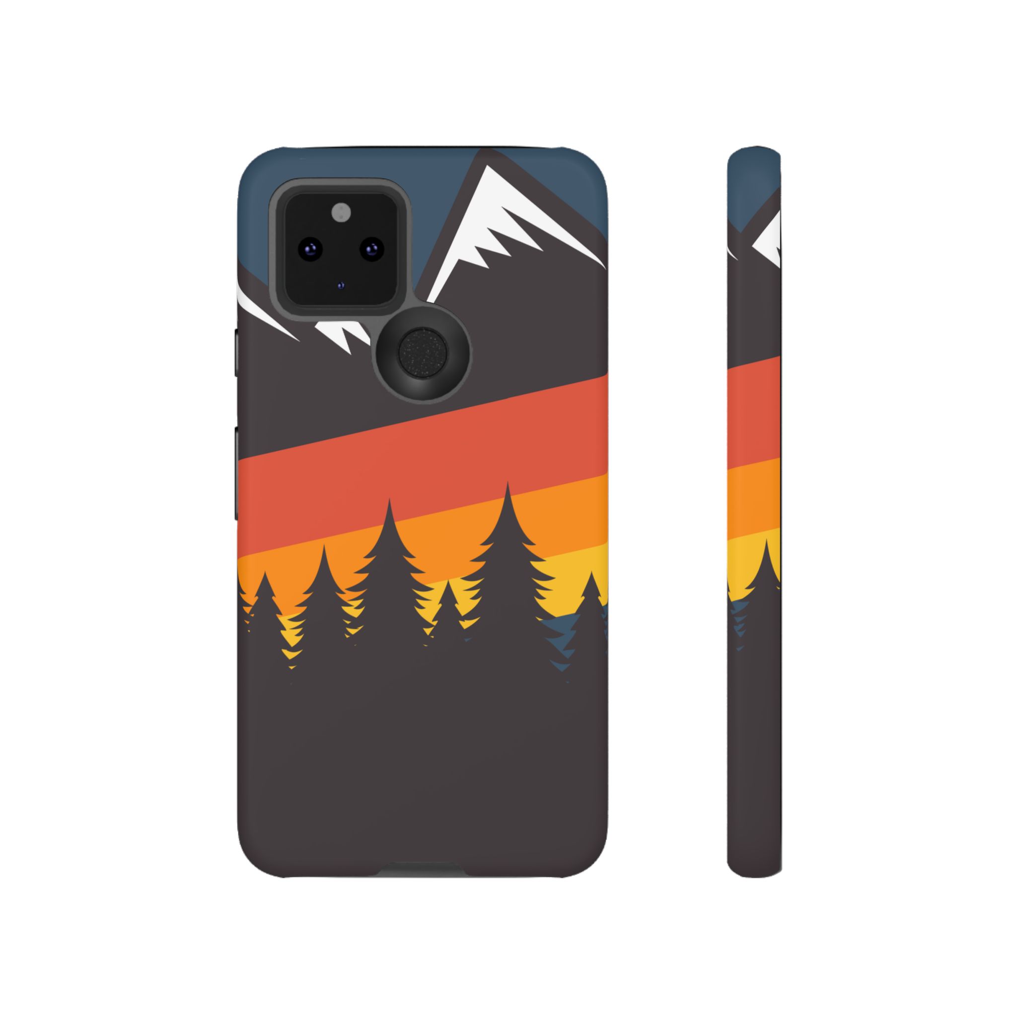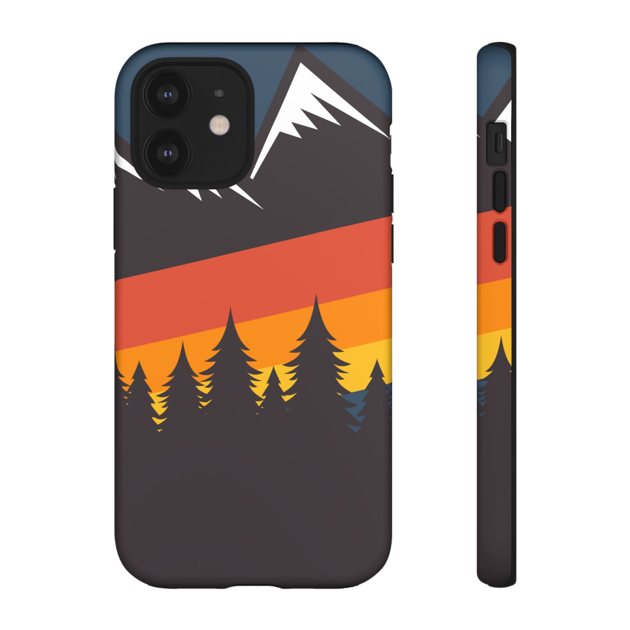 Mountain Stripes phone case. For iPhone, Samsung Galaxy, and Google Pixel devices. Every case has double layers for extra durability and protection while the clear, open ports stay out of your way when it comes to charging.. The outer polycarbonate shell will resist daily impacts. Smooth, matte finish.