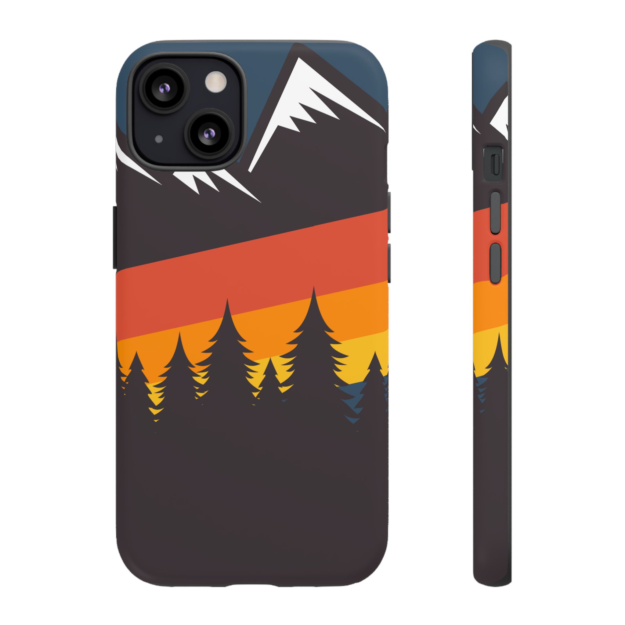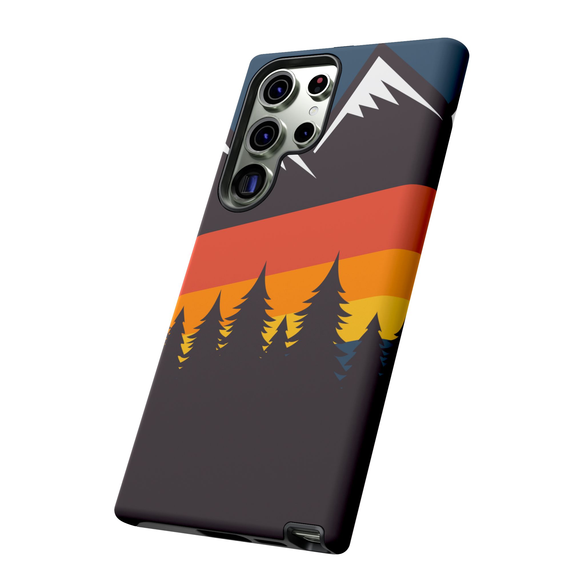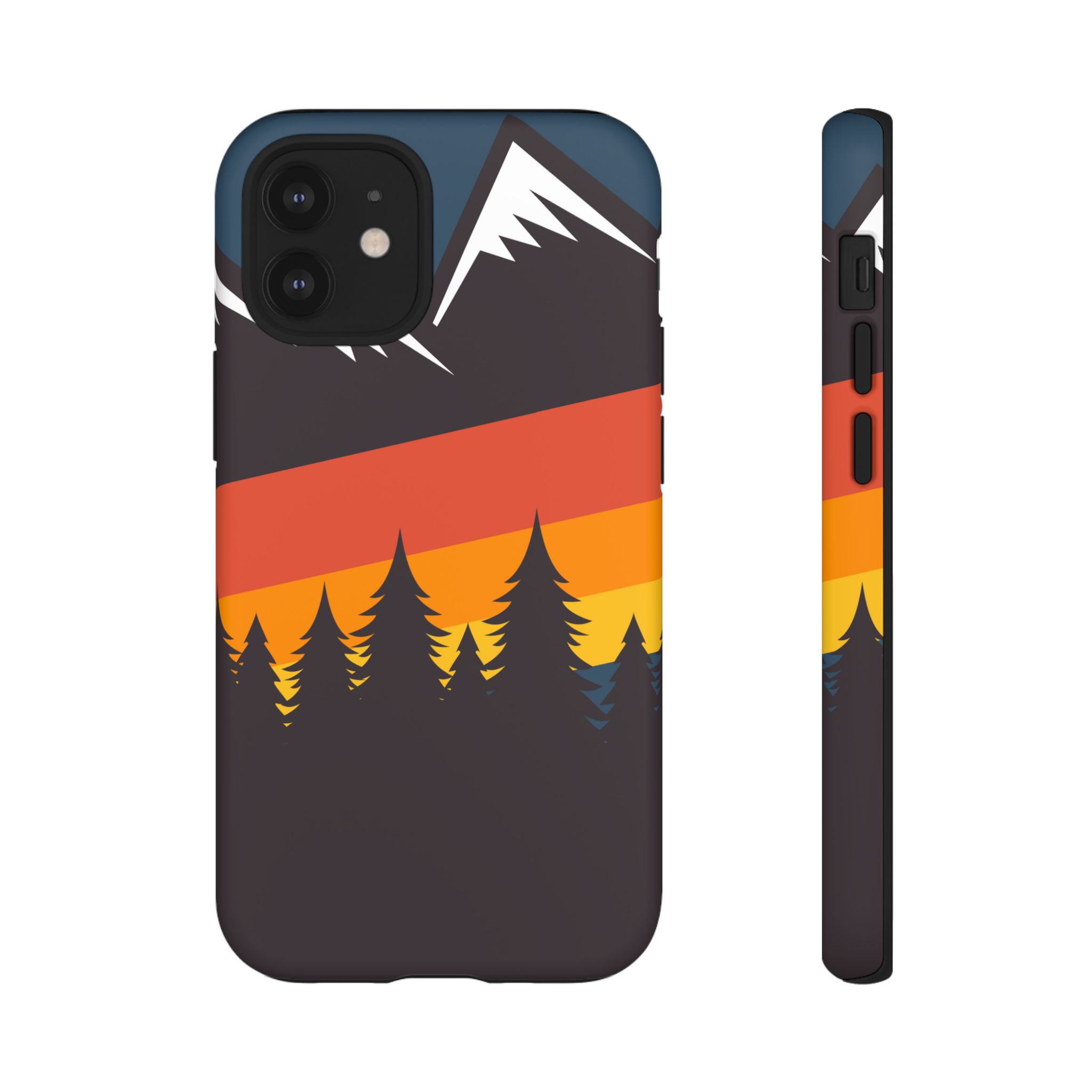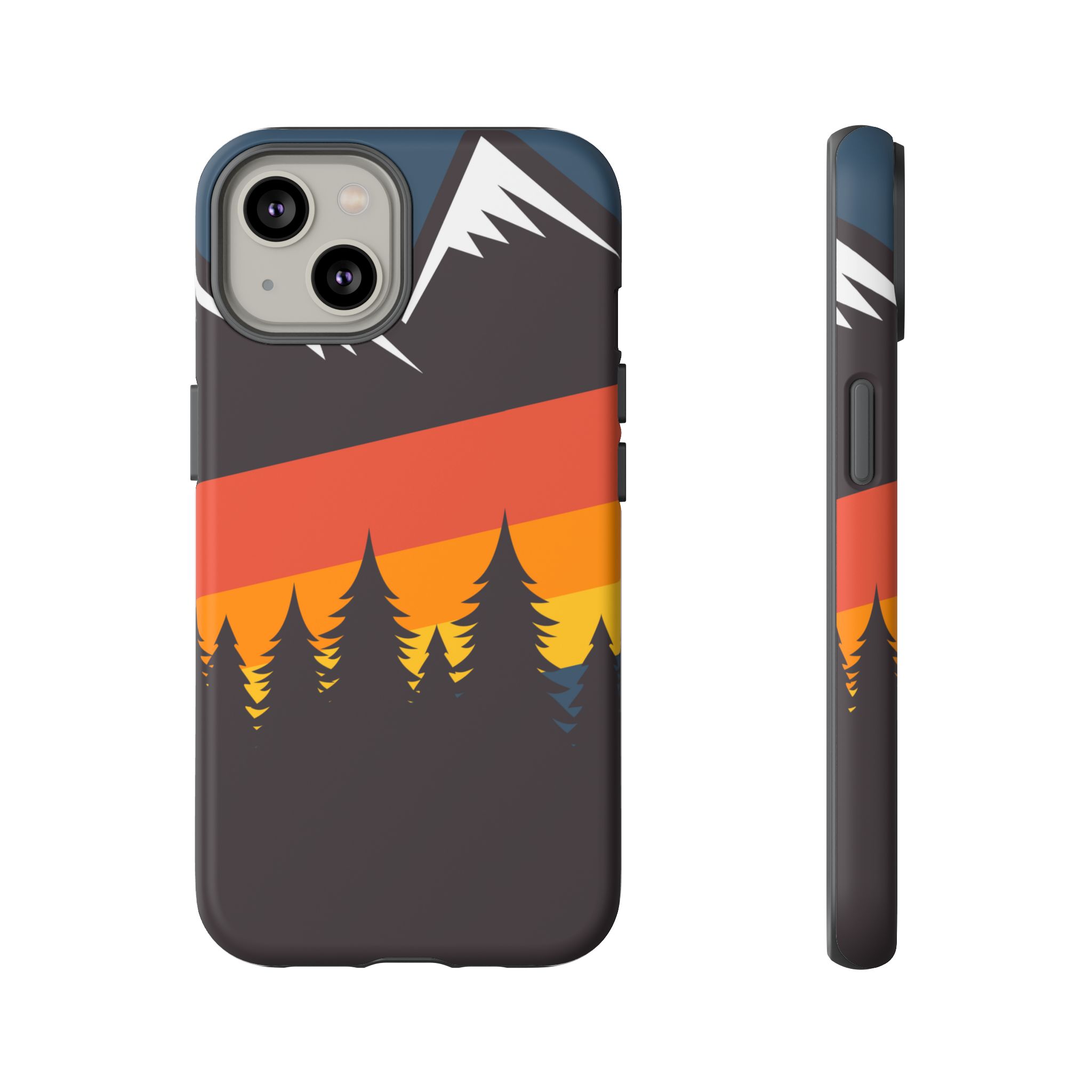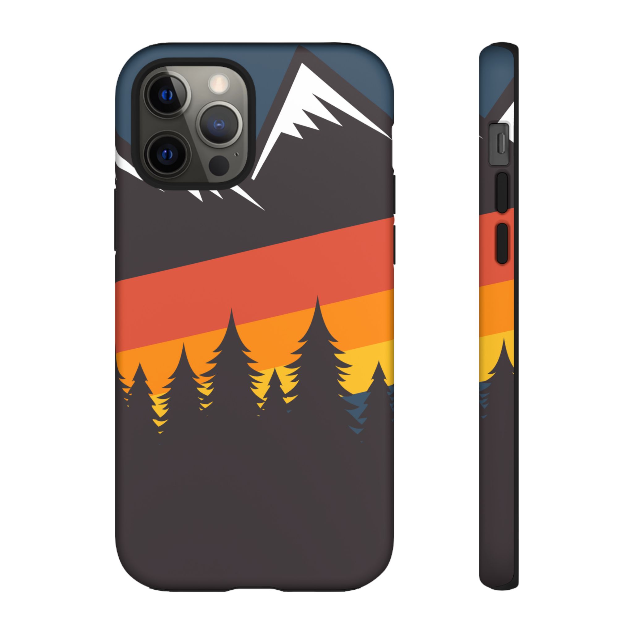 Mountain Stripes phone case. For iPhone, Samsung Galaxy, and Google Pixel devices. Every case has double layers for extra durability and protection while the clear, open ports stay out of your way when it comes to charging.. The outer polycarbonate shell will resist daily impacts. Smooth, matte finish.