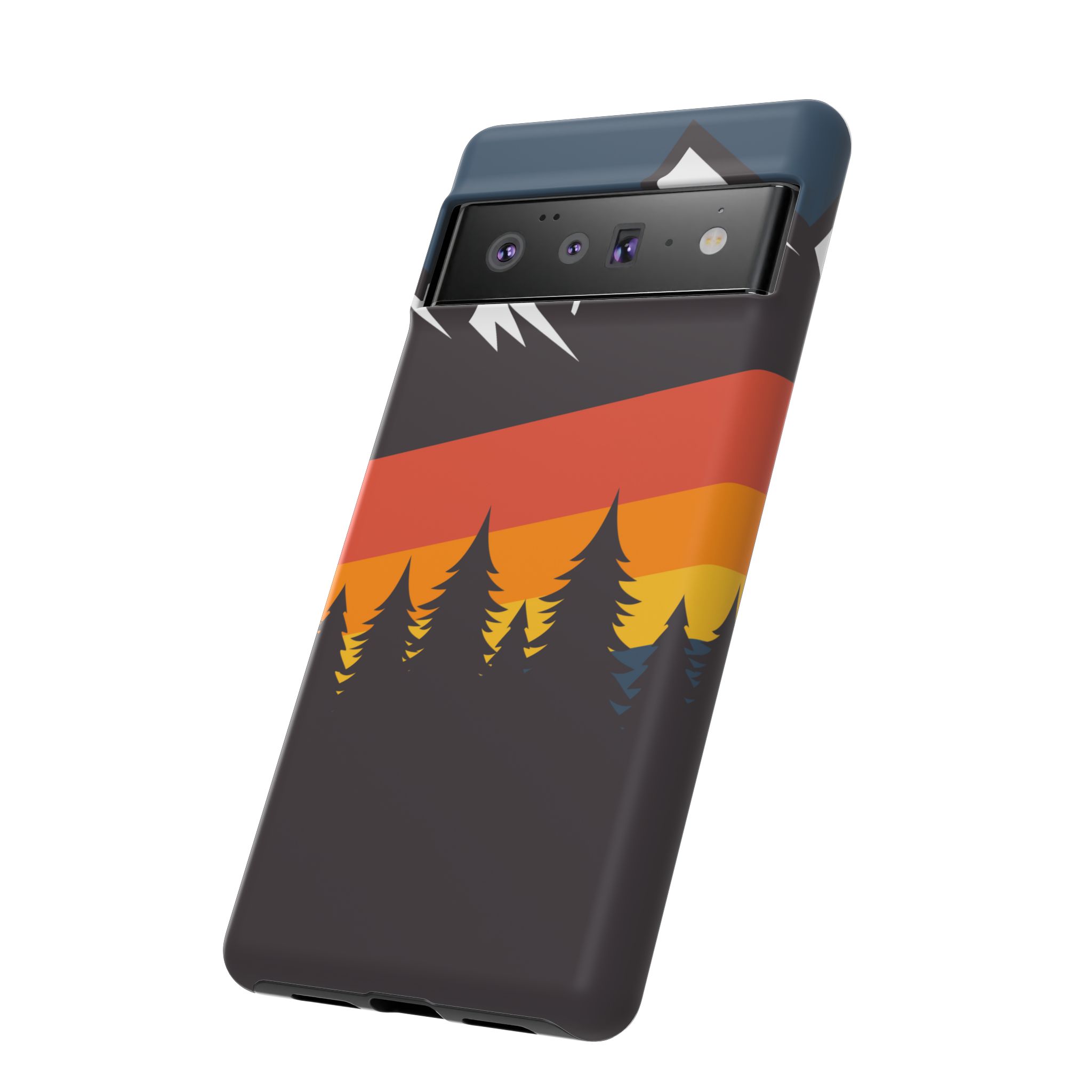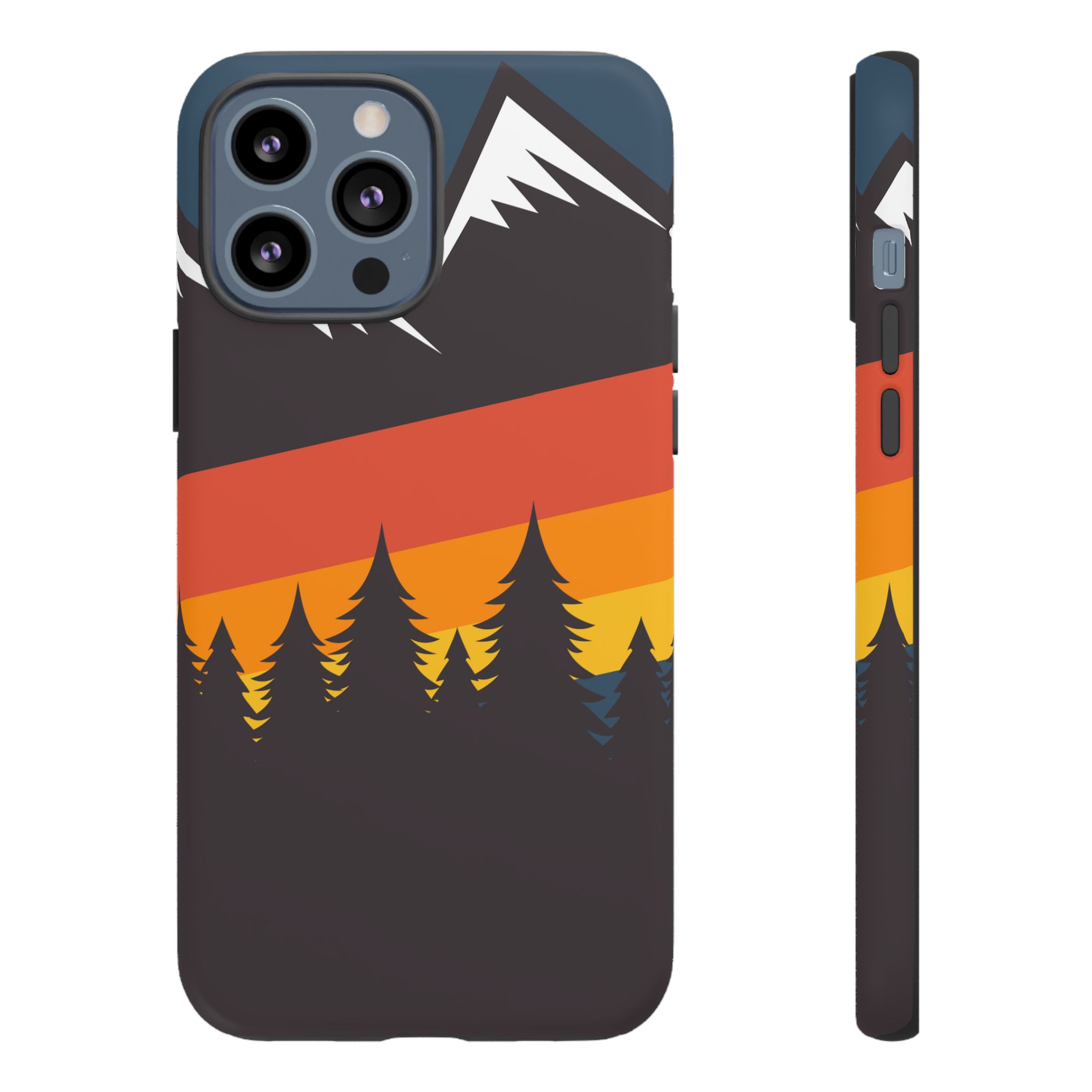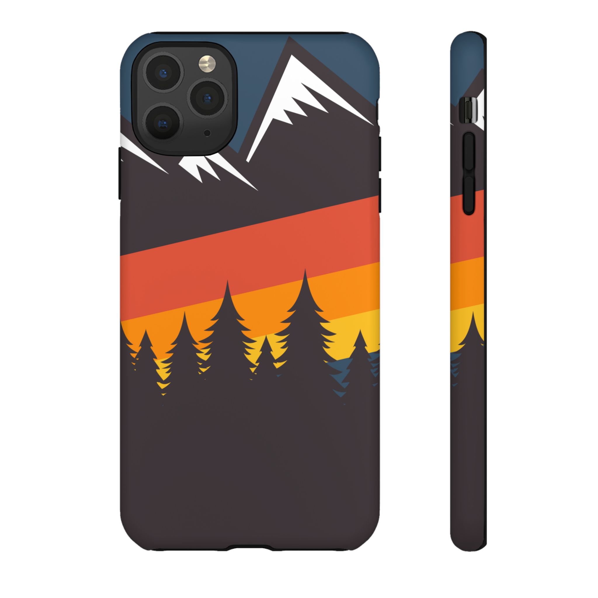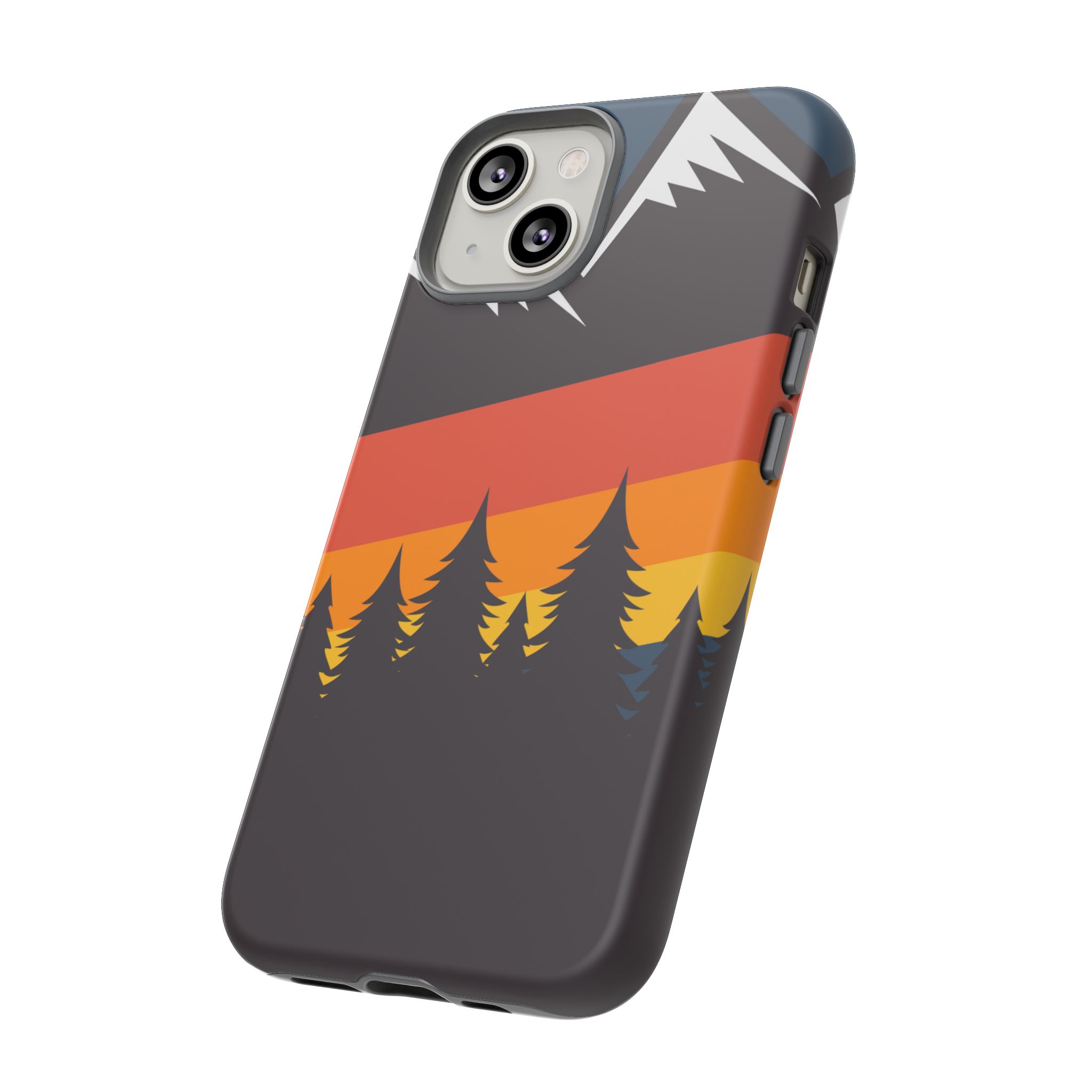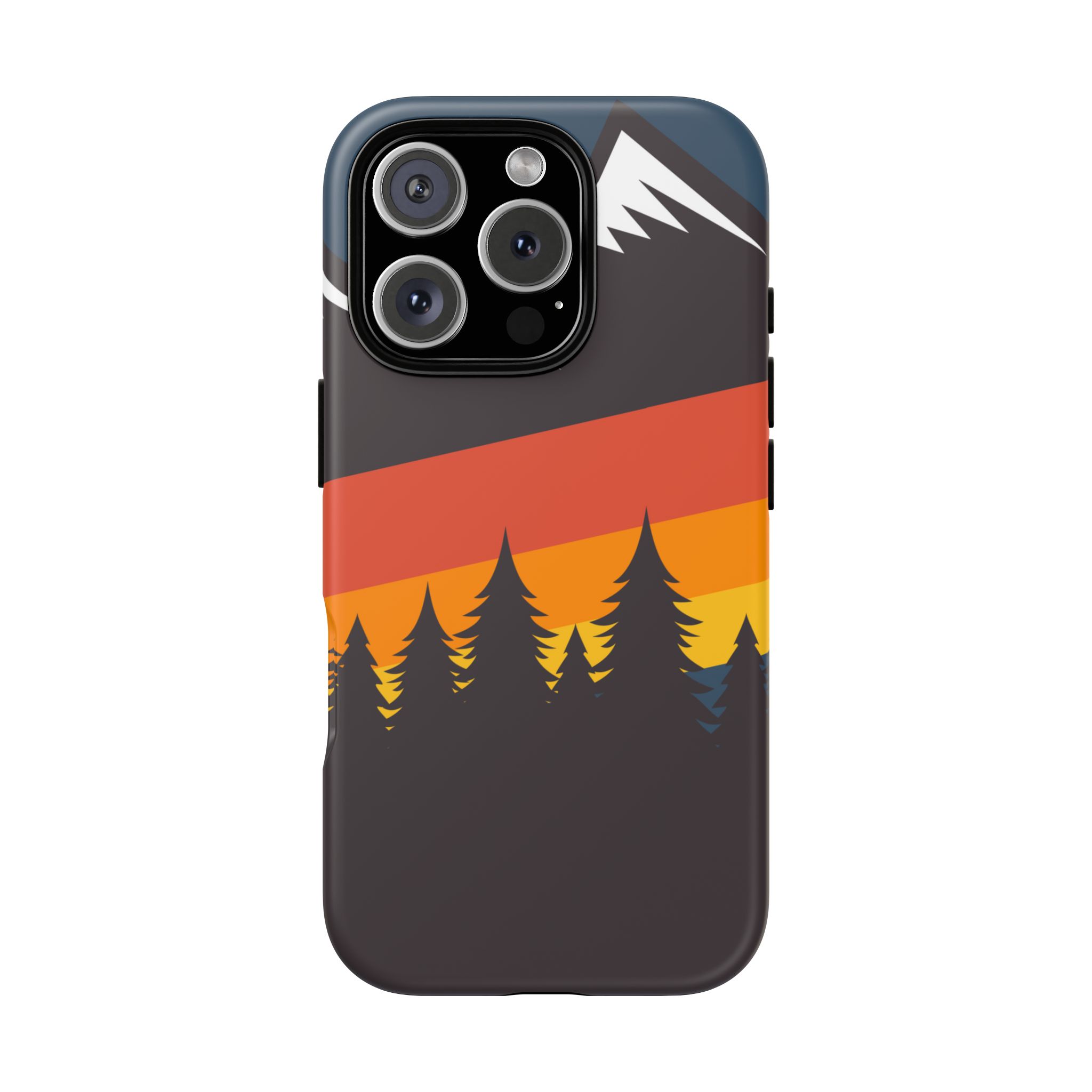Mountain Stripes phone case. For iPhone, Samsung Galaxy, and Google Pixel devices. Every case has double layers for extra durability and protection while the clear, open ports stay out of your way when it comes to charging.. The outer polycarbonate shell will resist daily impacts. Smooth, matte finish.