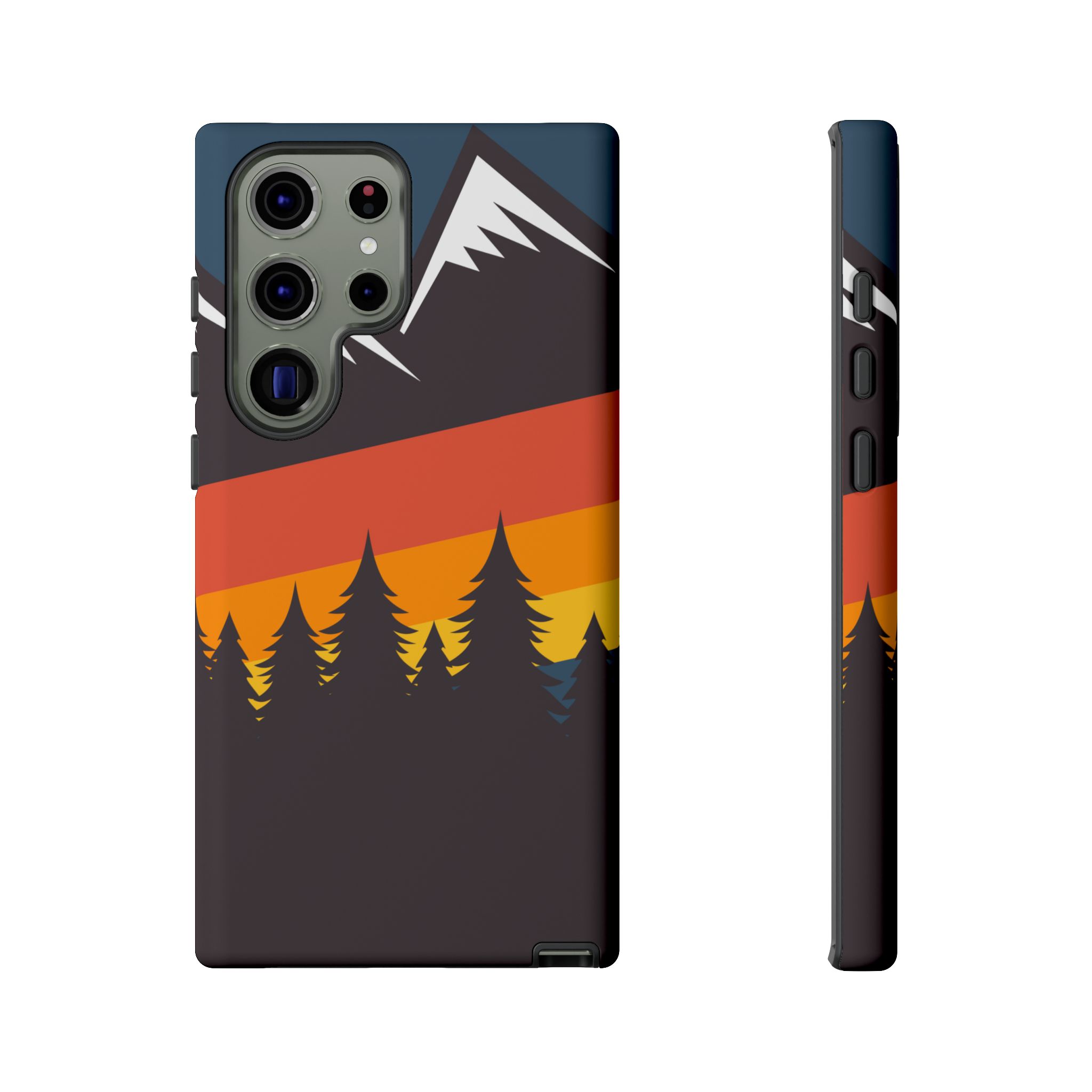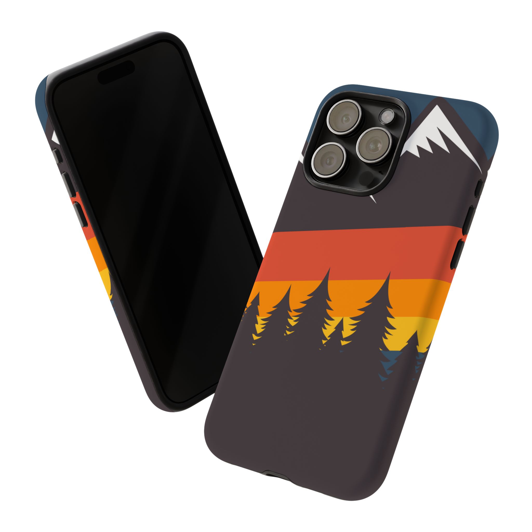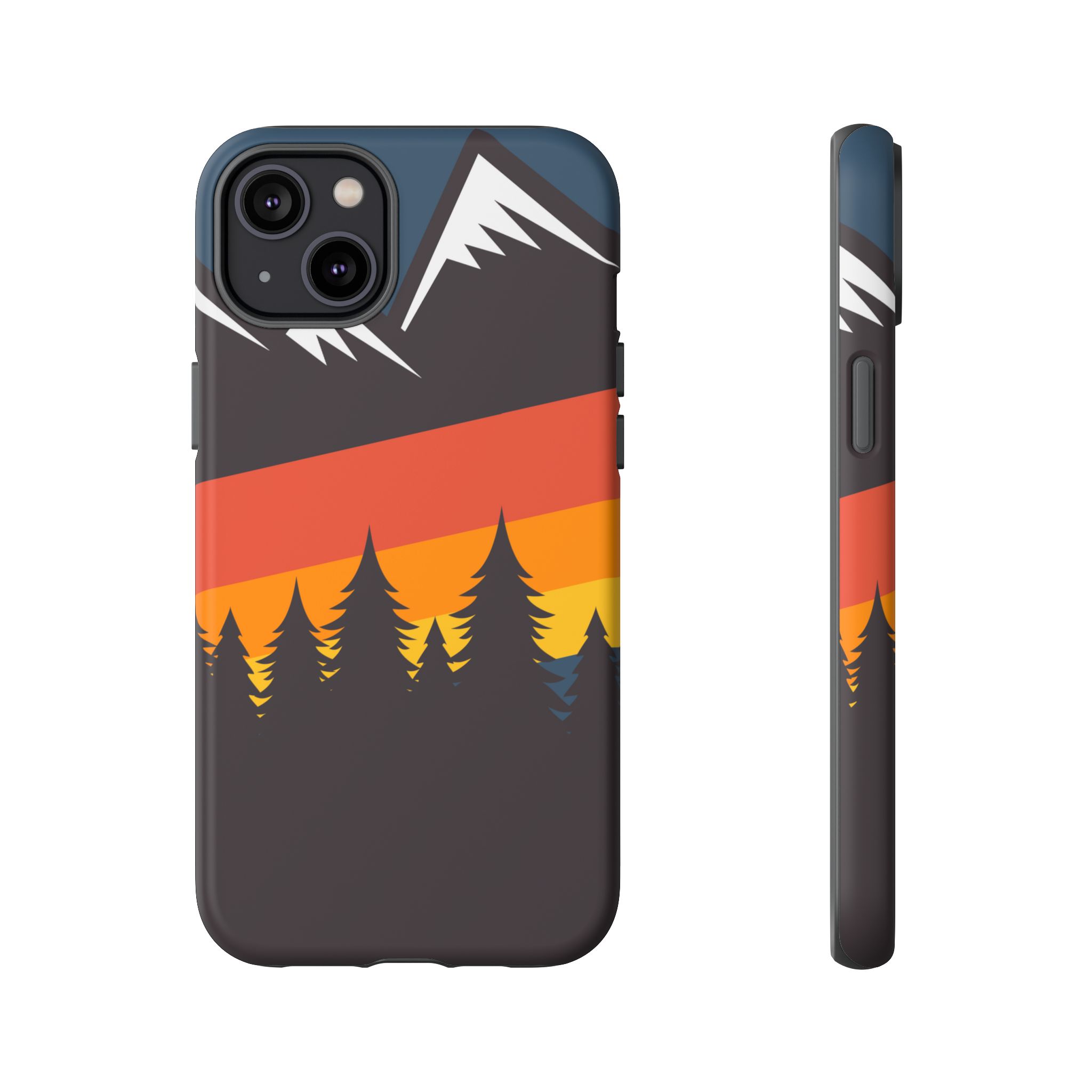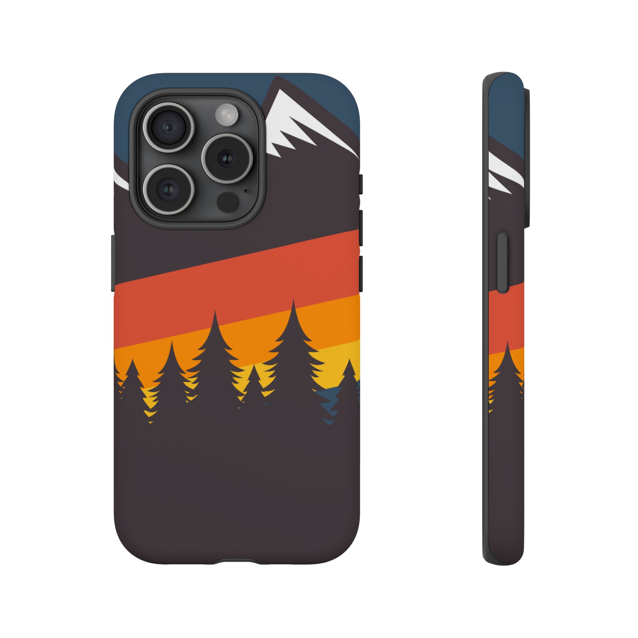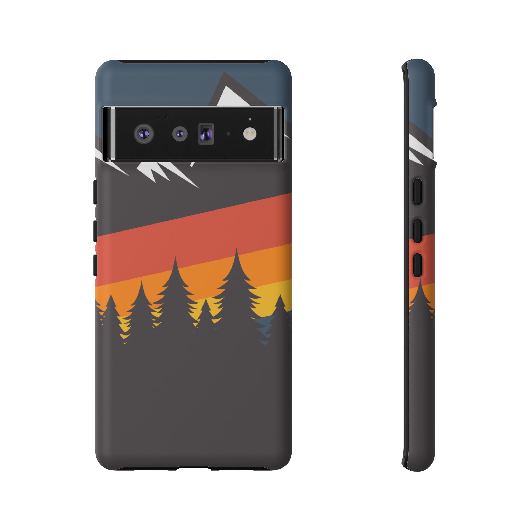 Mountain Stripes phone case. For iPhone, Samsung Galaxy, and Google Pixel devices. Every case has double layers for extra durability and protection while the clear, open ports stay out of your way when it comes to charging.. The outer polycarbonate shell will resist daily impacts. Smooth, matte finish.