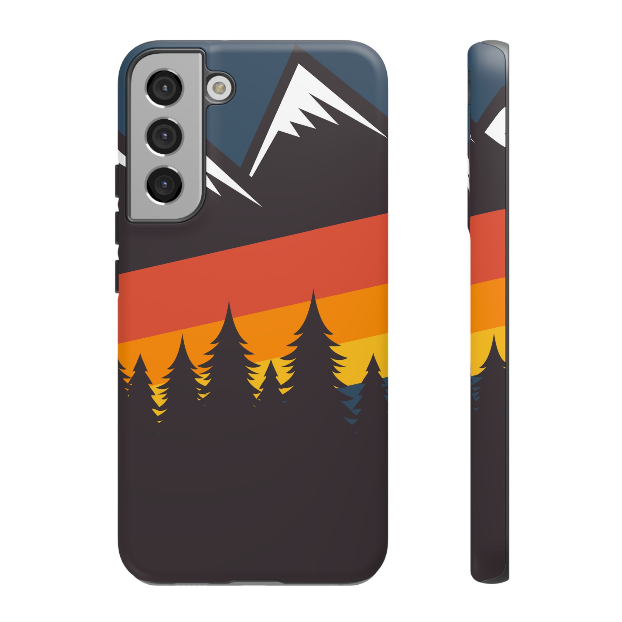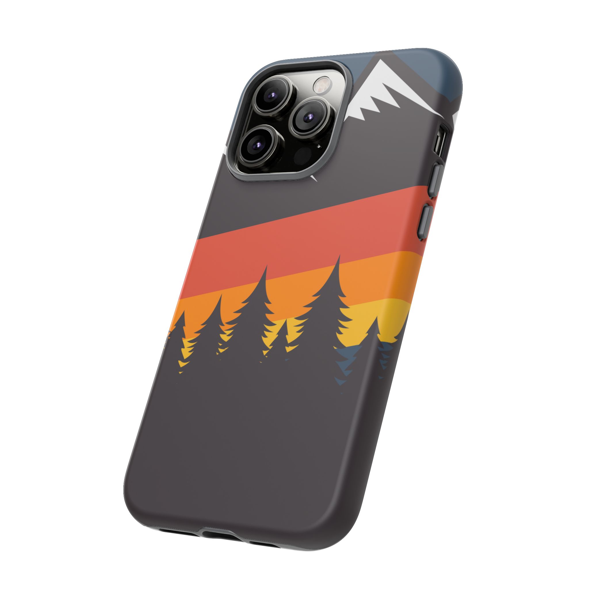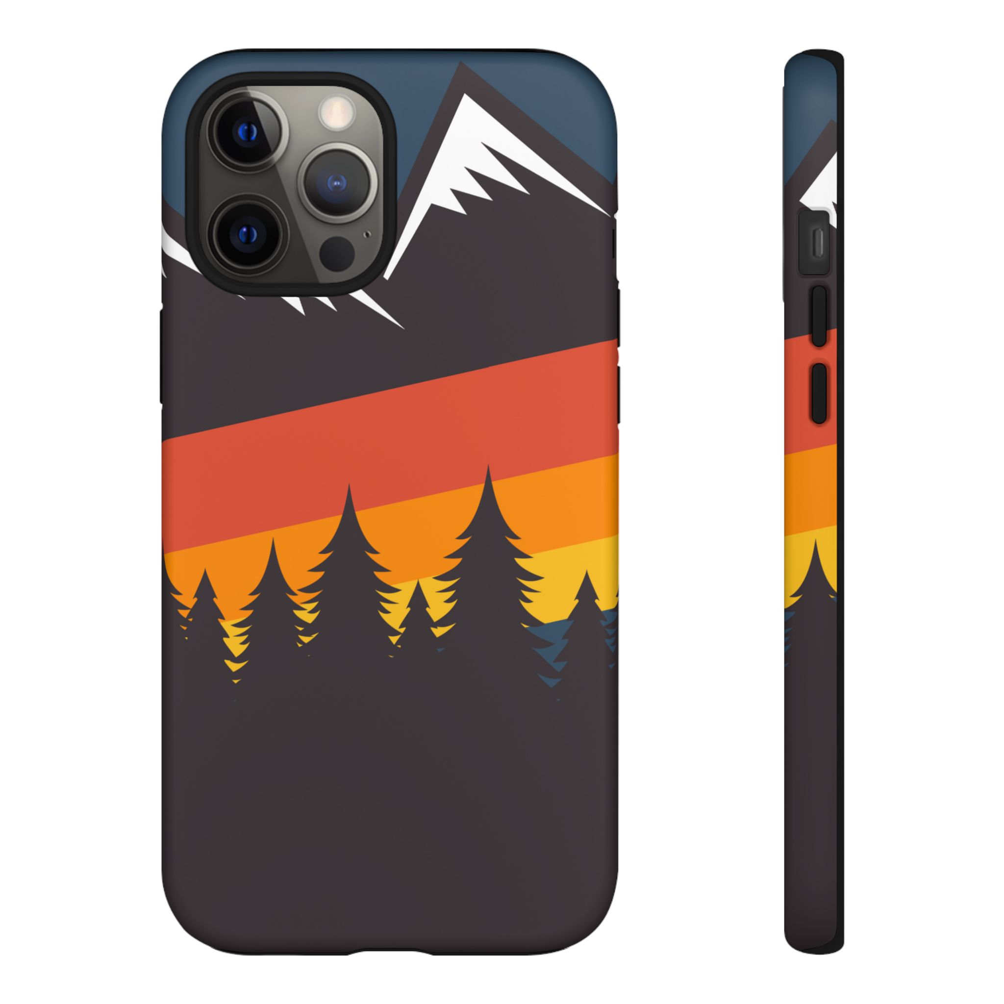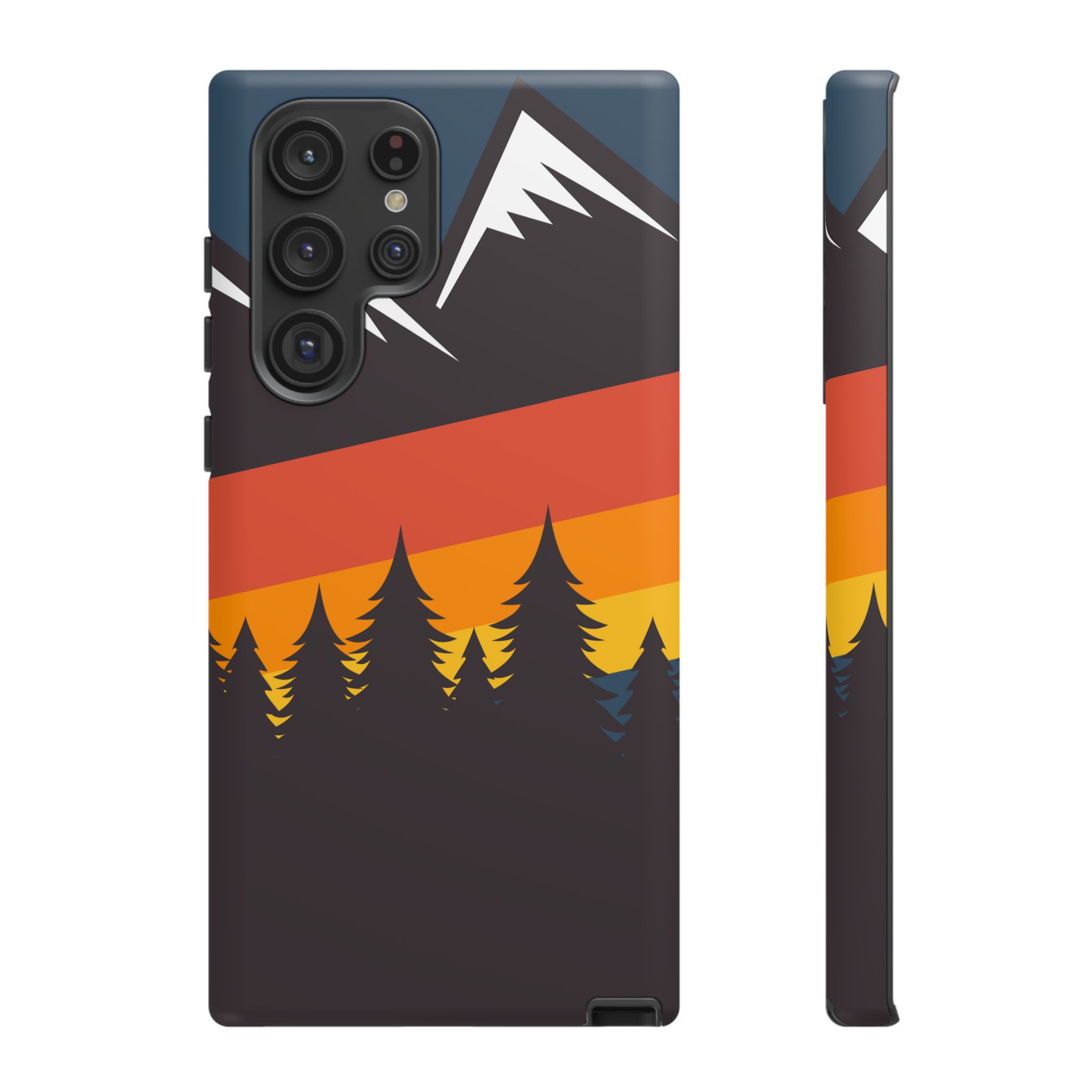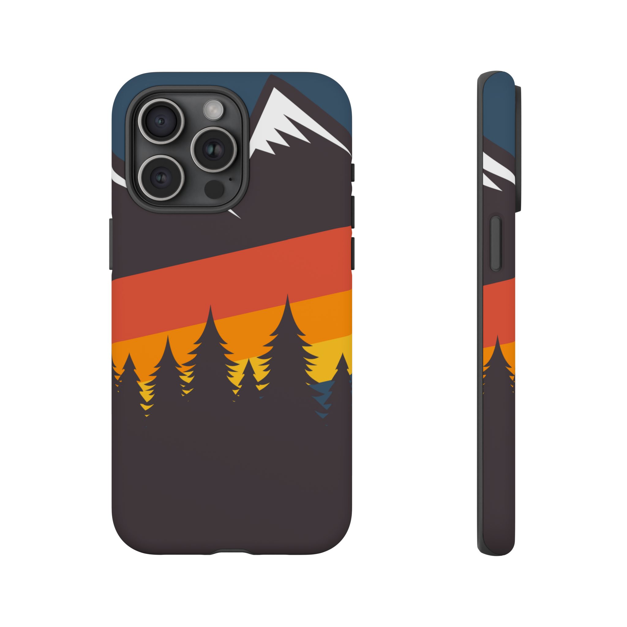 Mountain Stripes phone case. For iPhone, Samsung Galaxy, and Google Pixel devices. Every case has double layers for extra durability and protection while the clear, open ports stay out of your way when it comes to charging.. The outer polycarbonate shell will resist daily impacts. Smooth, matte finish.