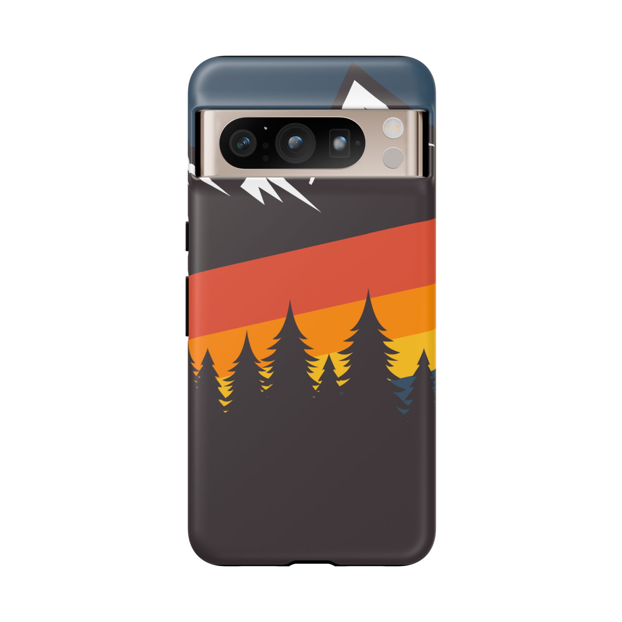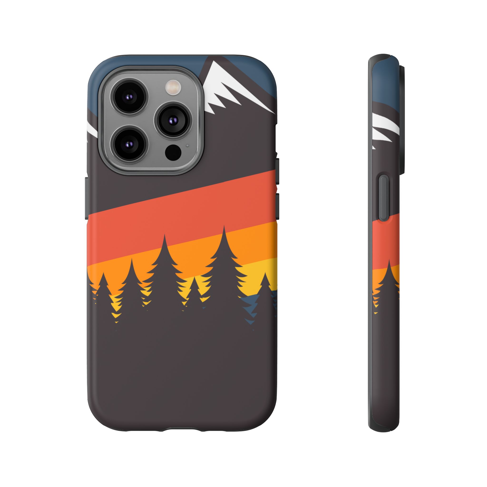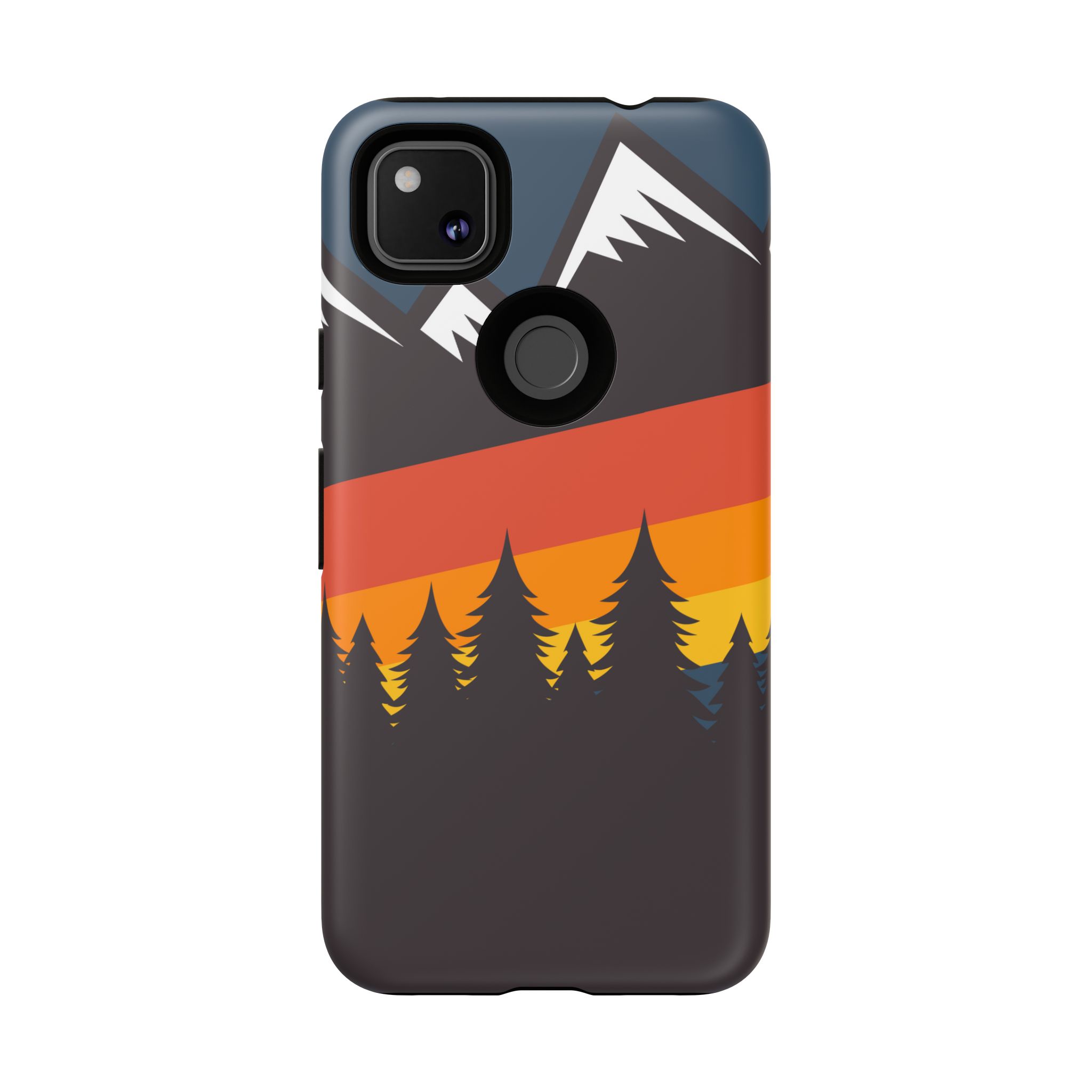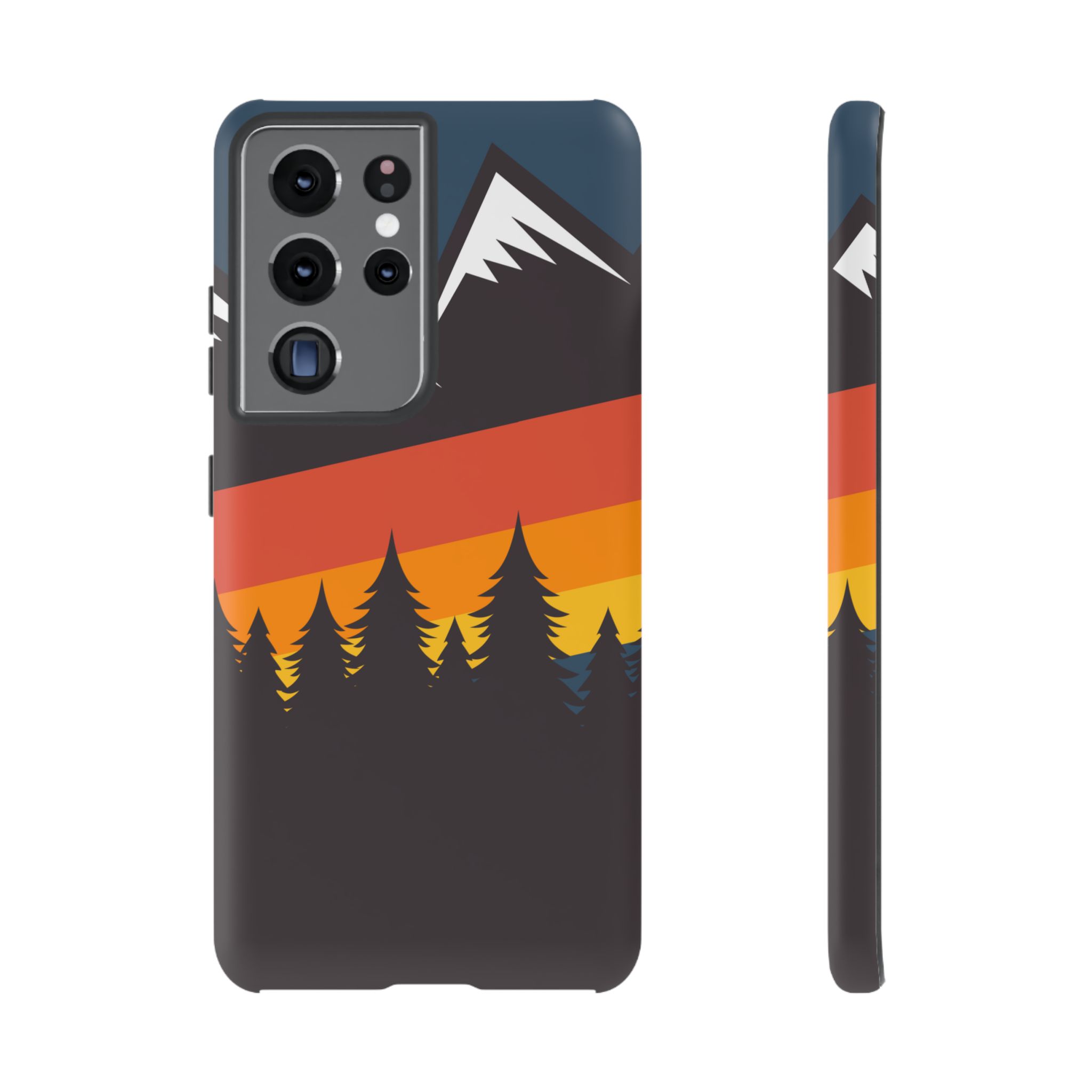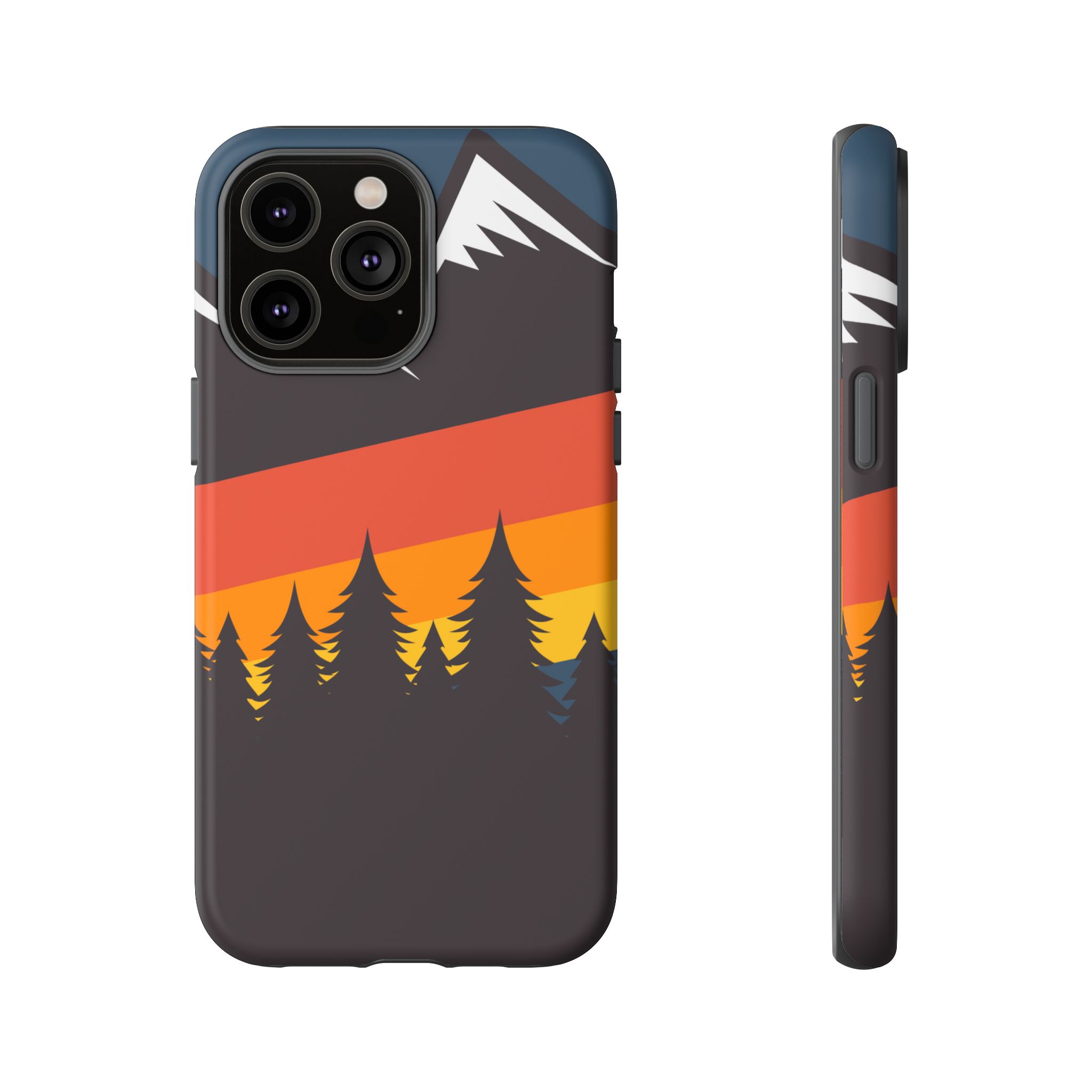Mountain Stripes phone case. For iPhone, Samsung Galaxy, and Google Pixel devices. Every case has double layers for extra durability and protection while the clear, open ports stay out of your way when it comes to charging.. The outer polycarbonate shell will resist daily impacts. Smooth, matte finish.
