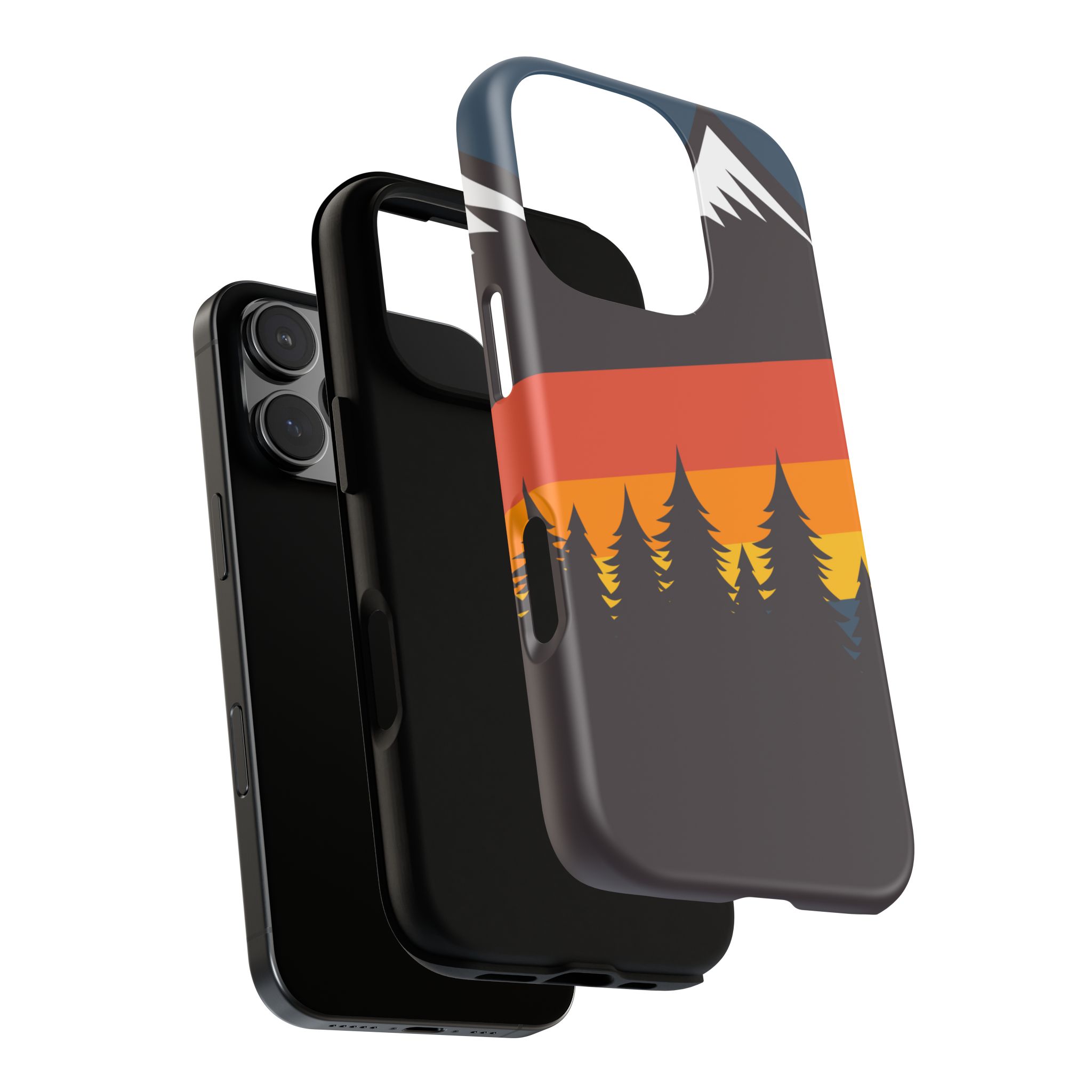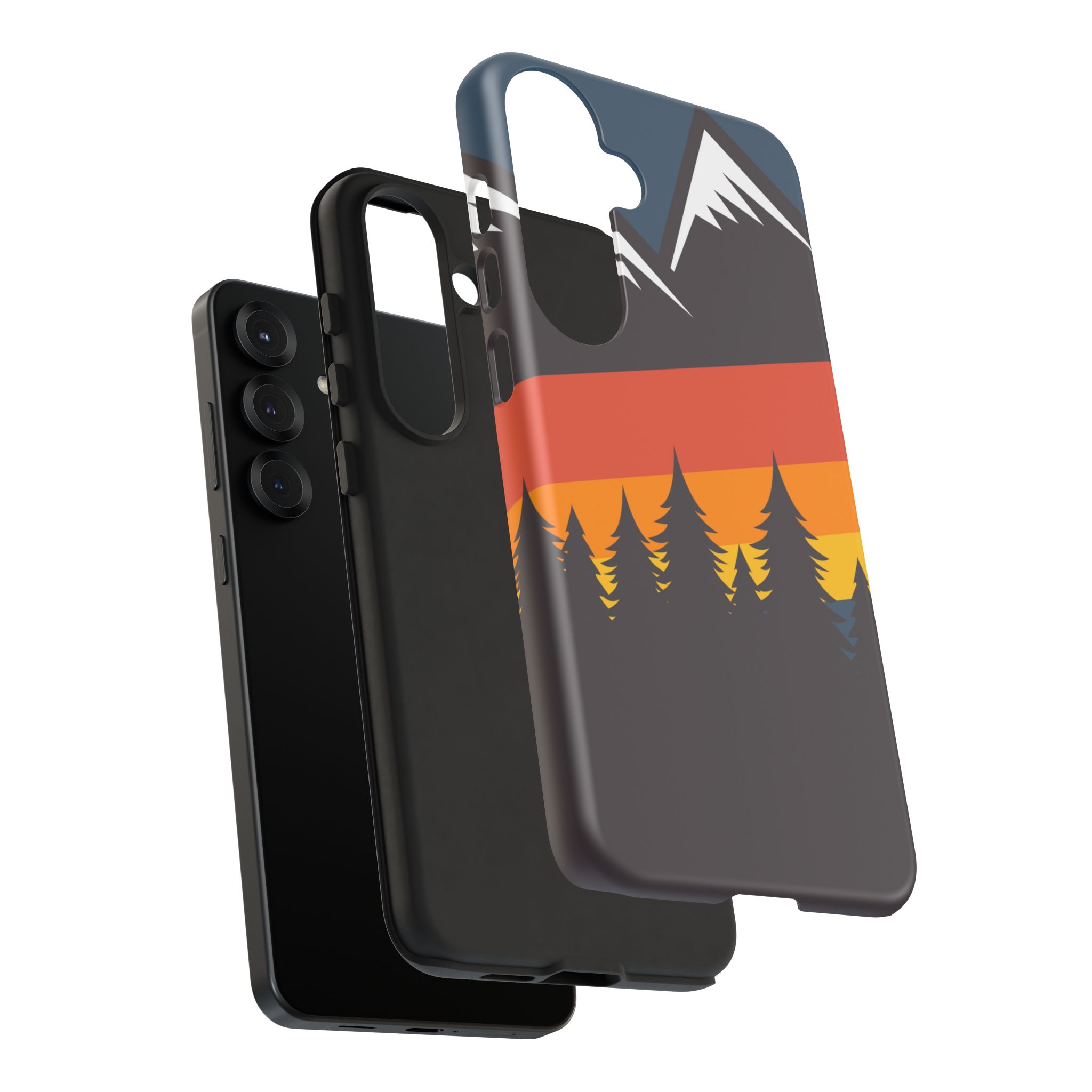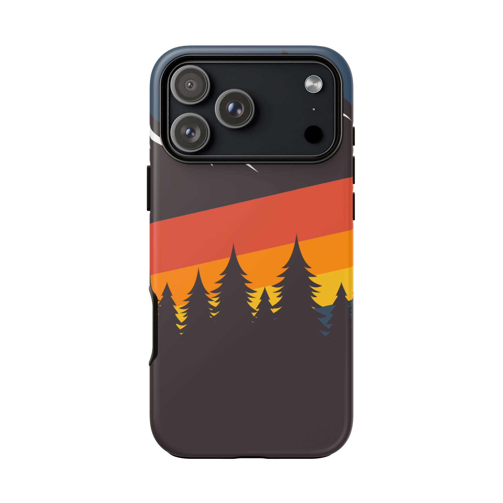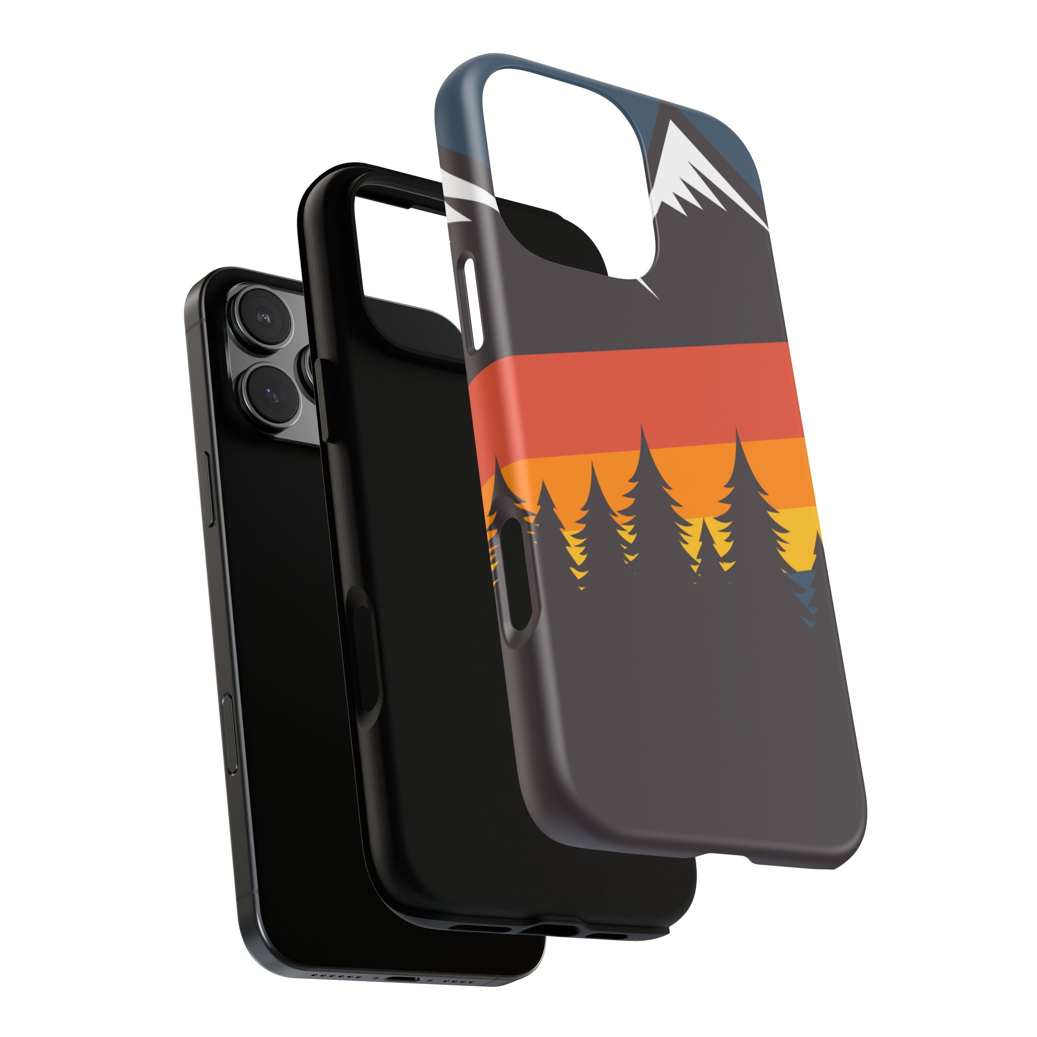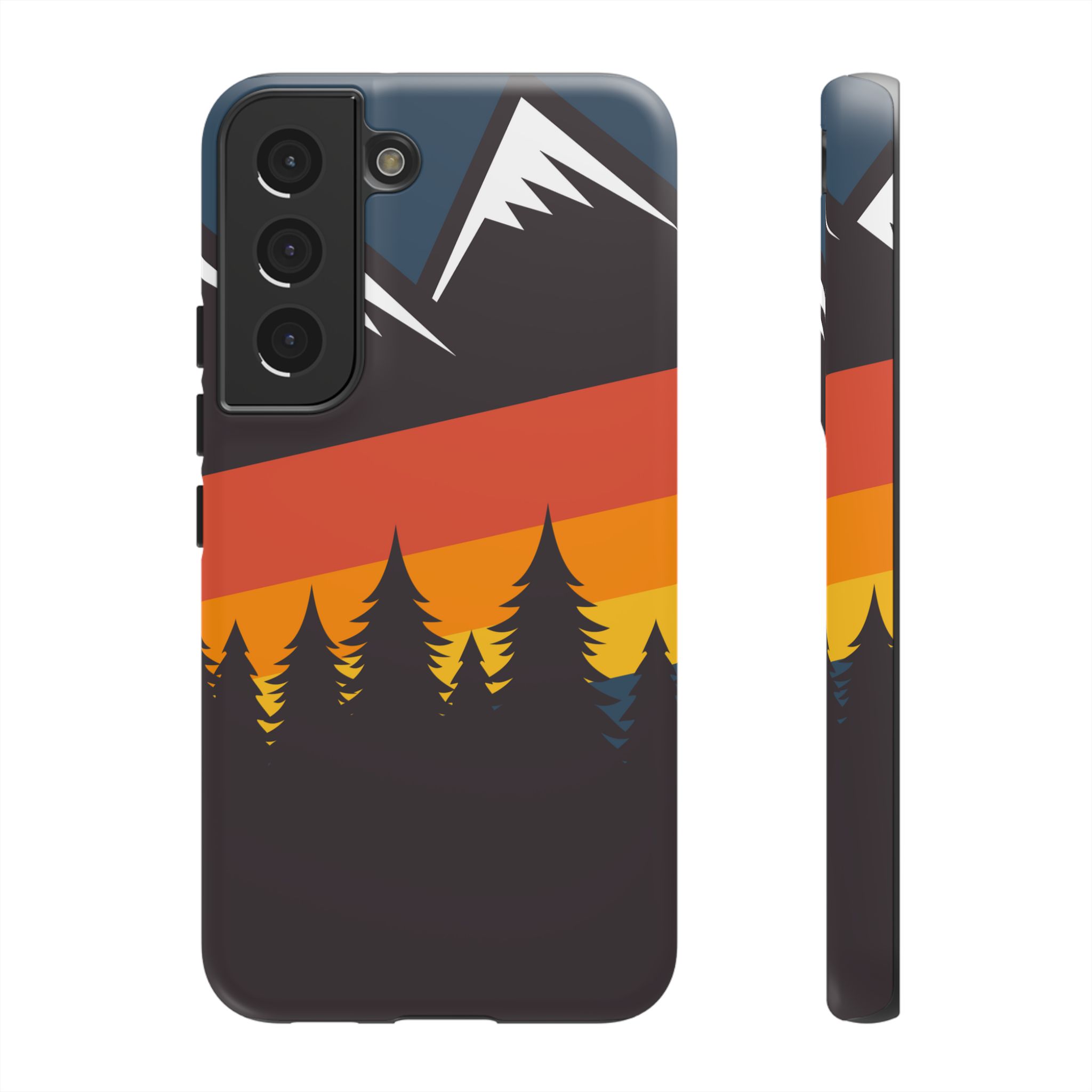 Mountain Stripes phone case. For iPhone, Samsung Galaxy, and Google Pixel devices. Every case has double layers for extra durability and protection while the clear, open ports stay out of your way when it comes to charging.. The outer polycarbonate shell will resist daily impacts. Smooth, matte finish.