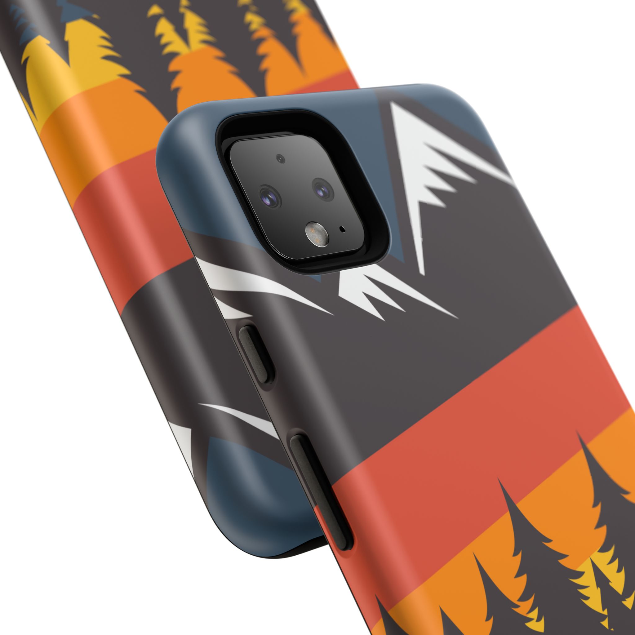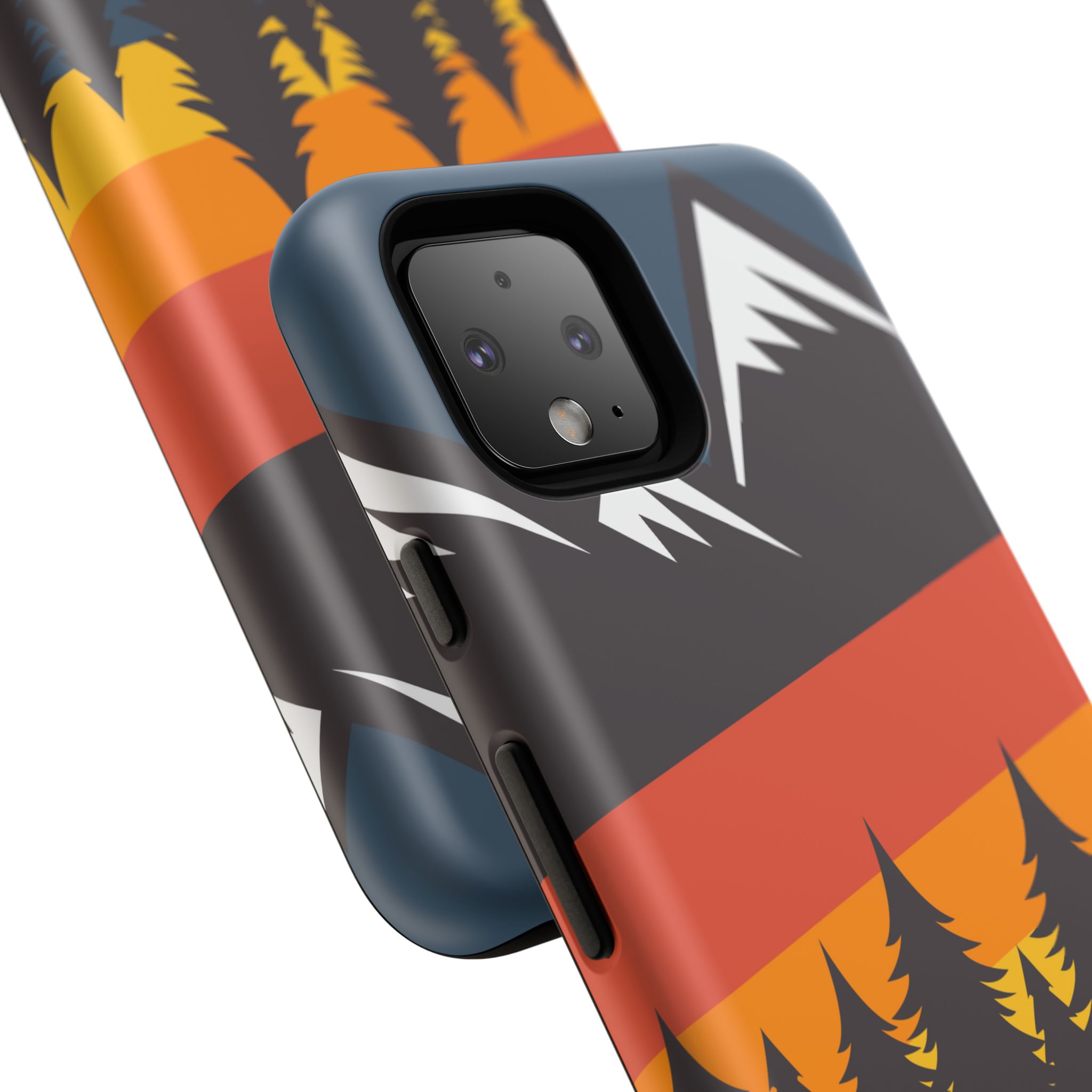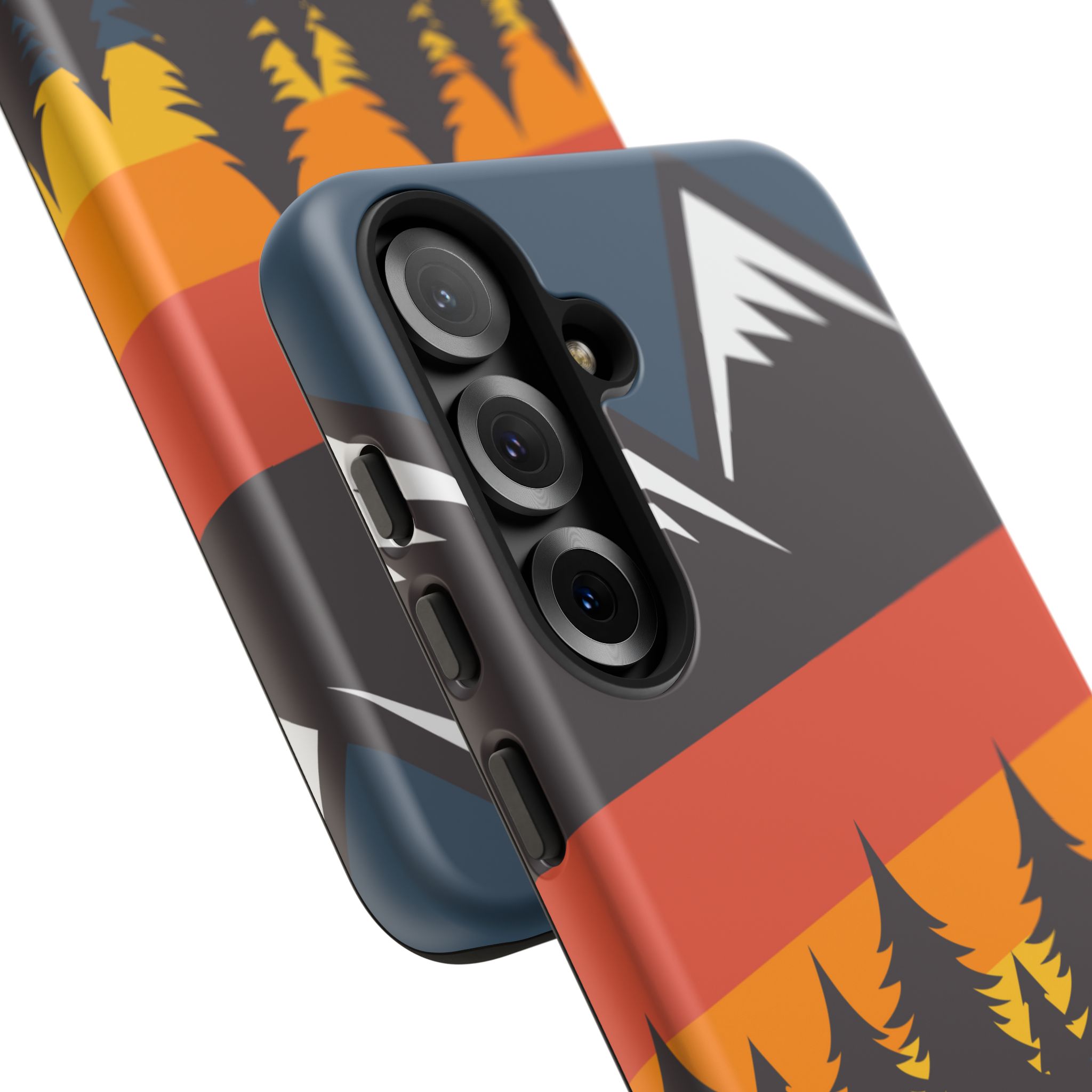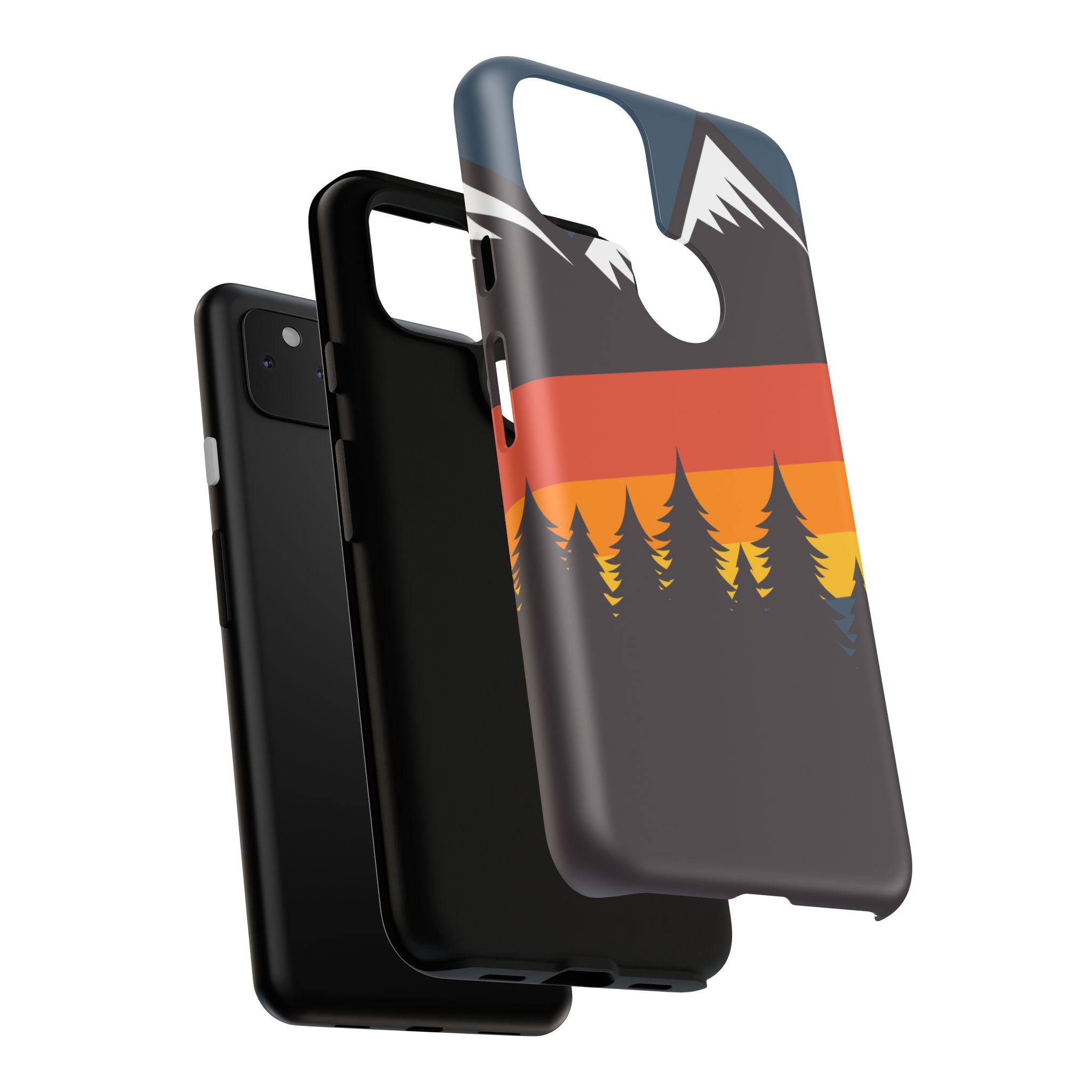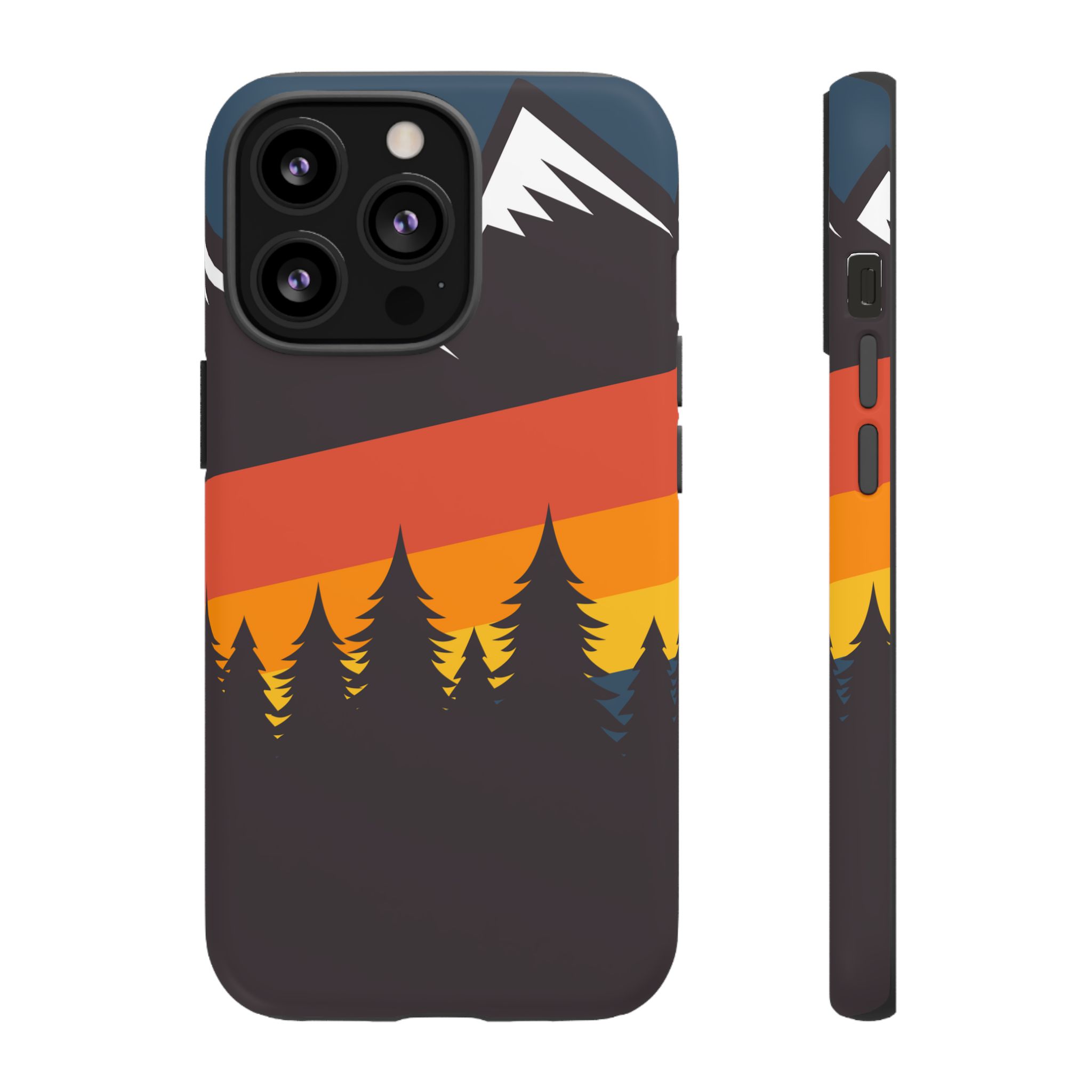 Mountain Stripes phone case. For iPhone, Samsung Galaxy, and Google Pixel devices. Every case has double layers for extra durability and protection while the clear, open ports stay out of your way when it comes to charging.. The outer polycarbonate shell will resist daily impacts. Smooth, matte finish.
