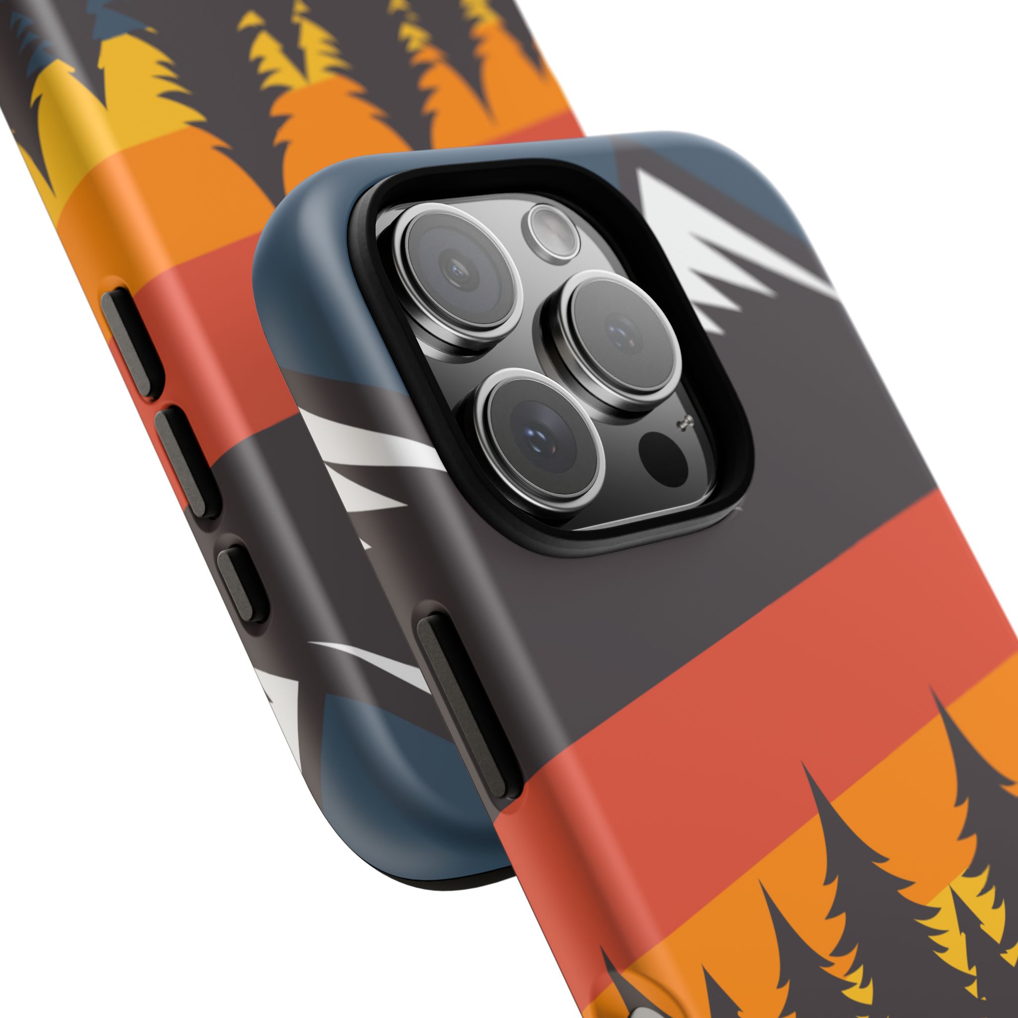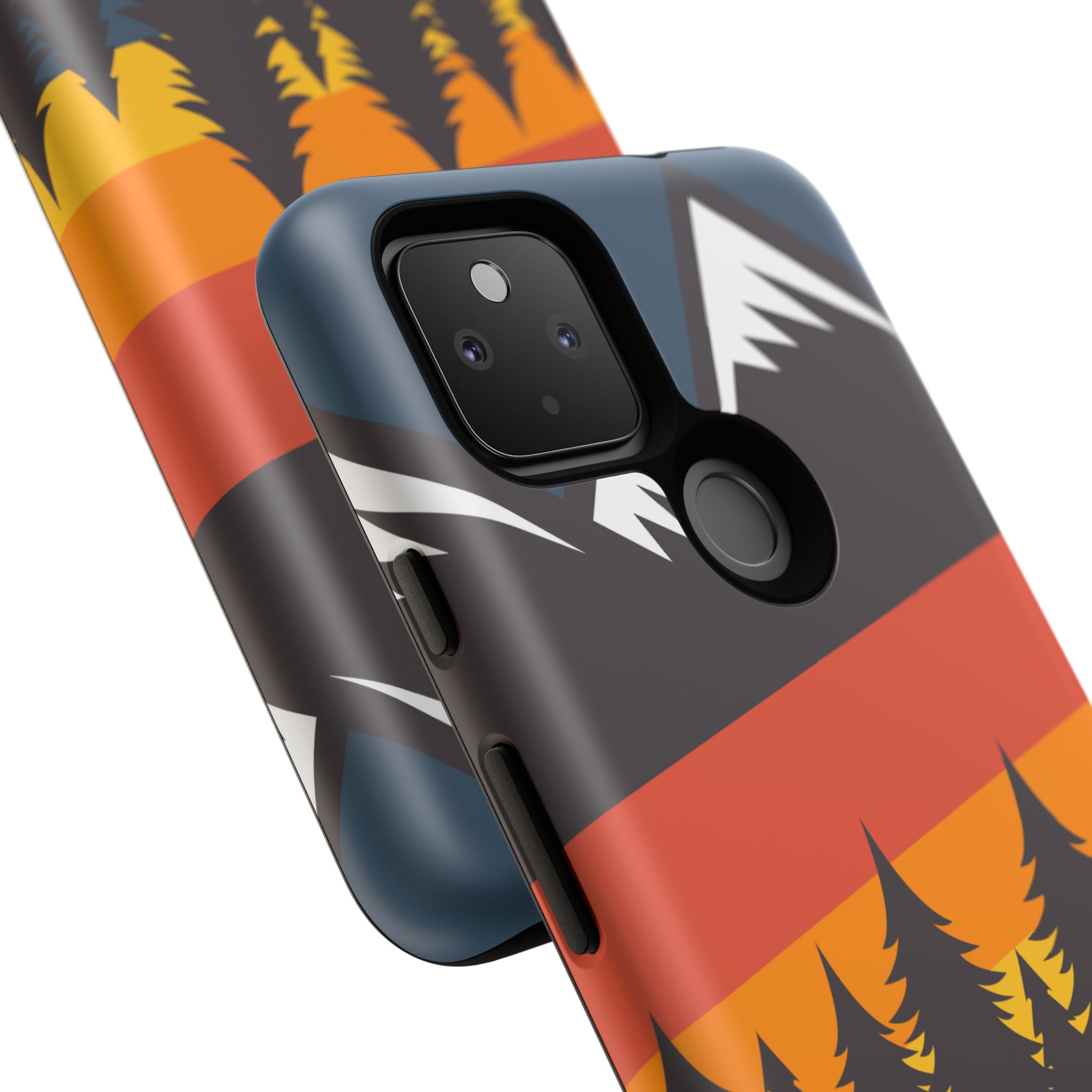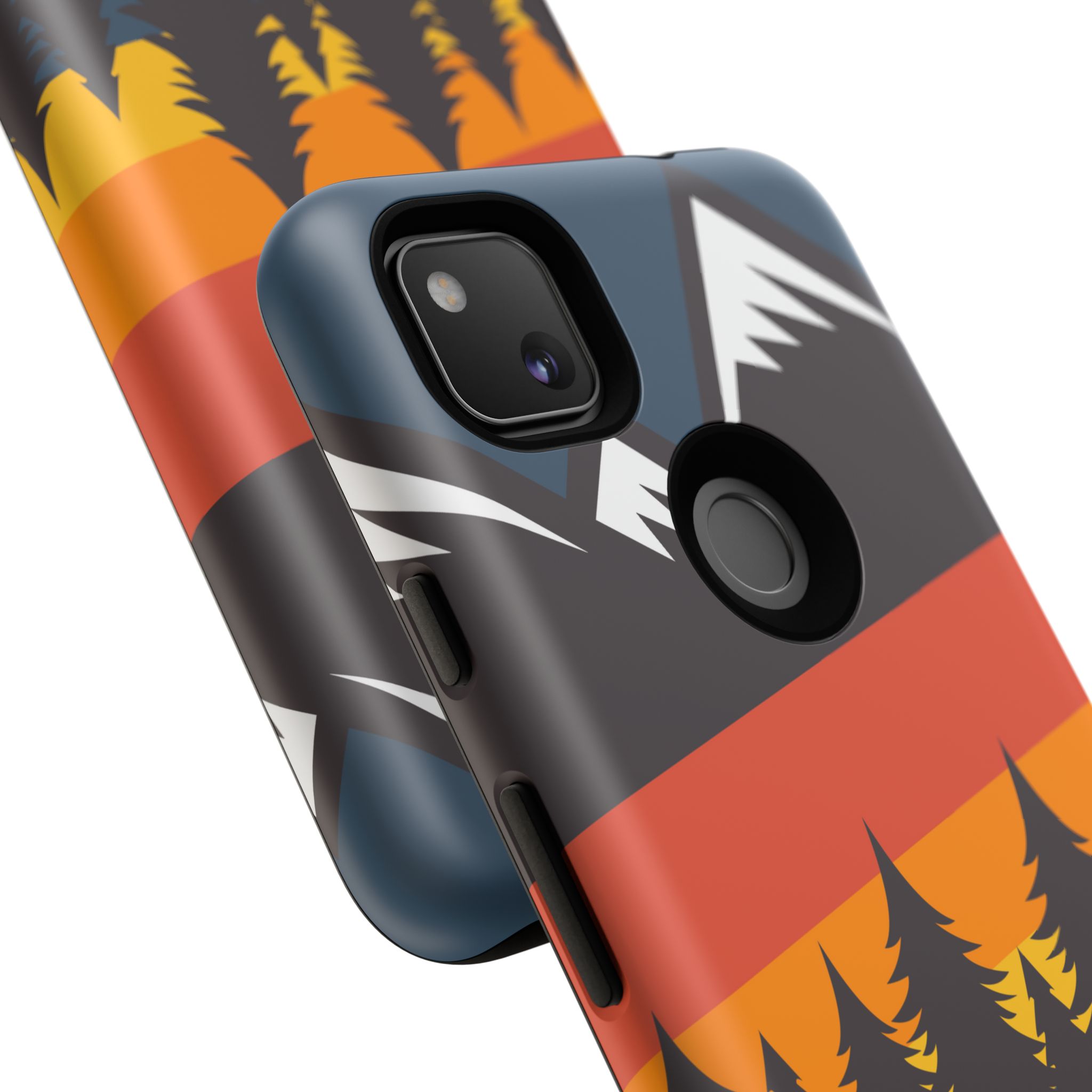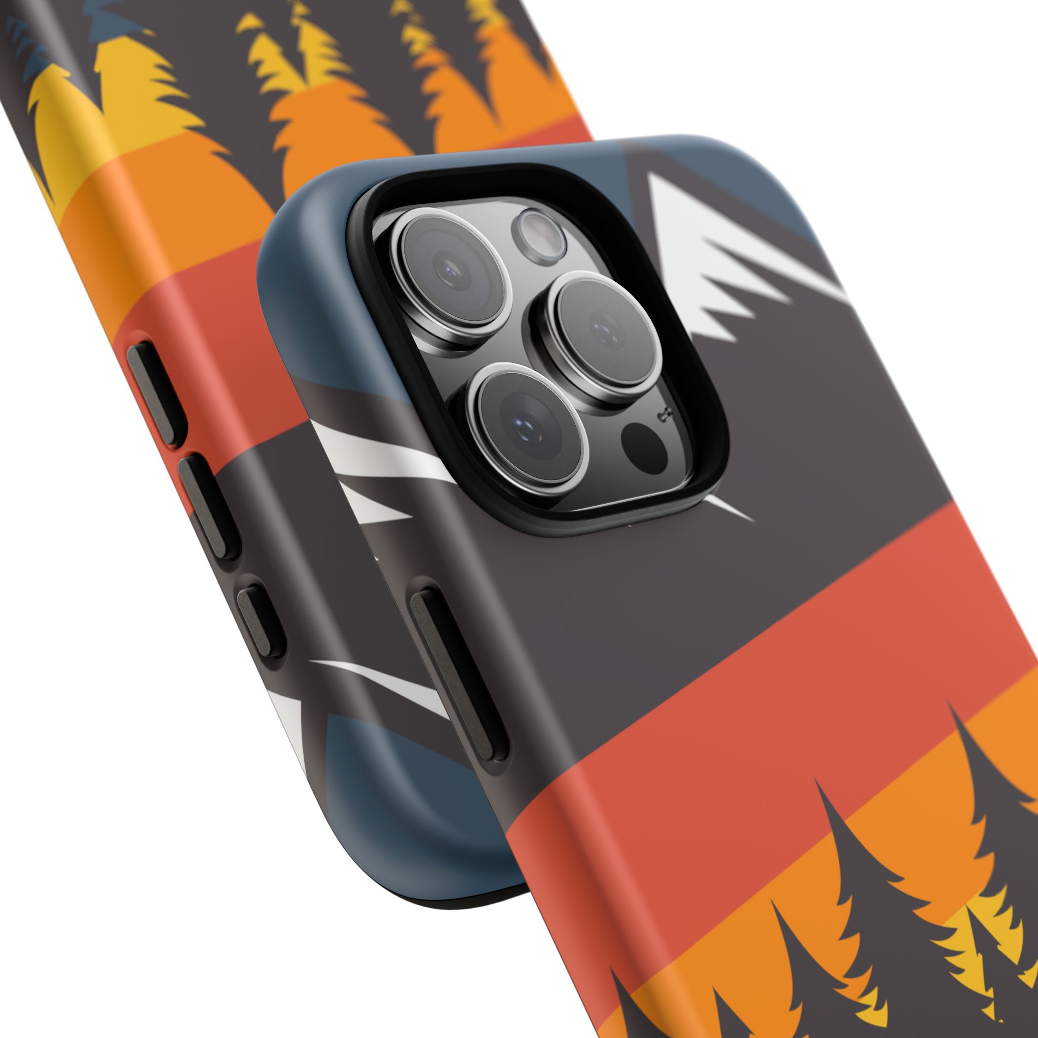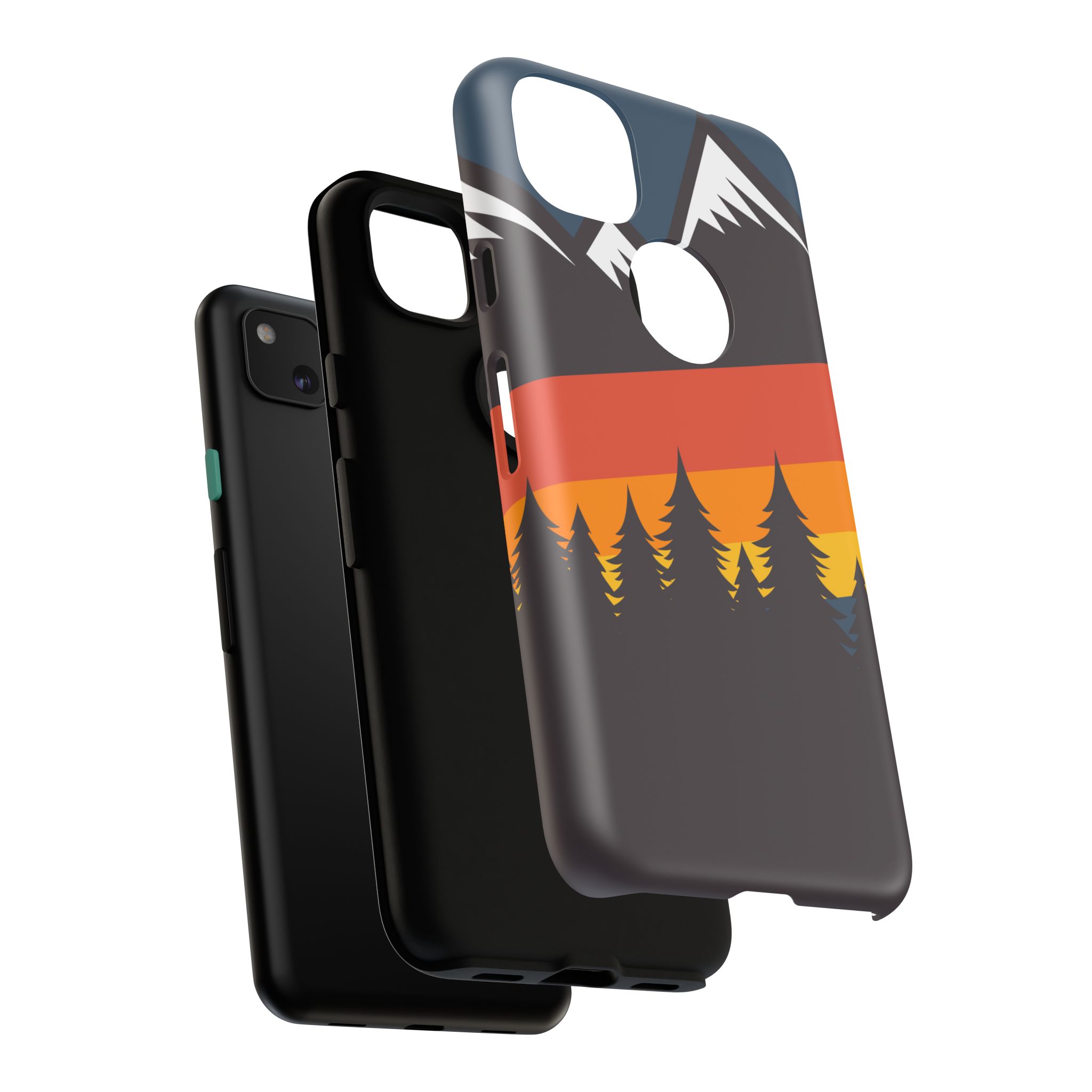 Mountain Stripes phone case. For iPhone, Samsung Galaxy, and Google Pixel devices. Every case has double layers for extra durability and protection while the clear, open ports stay out of your way when it comes to charging.. The outer polycarbonate shell will resist daily impacts. Smooth, matte finish.