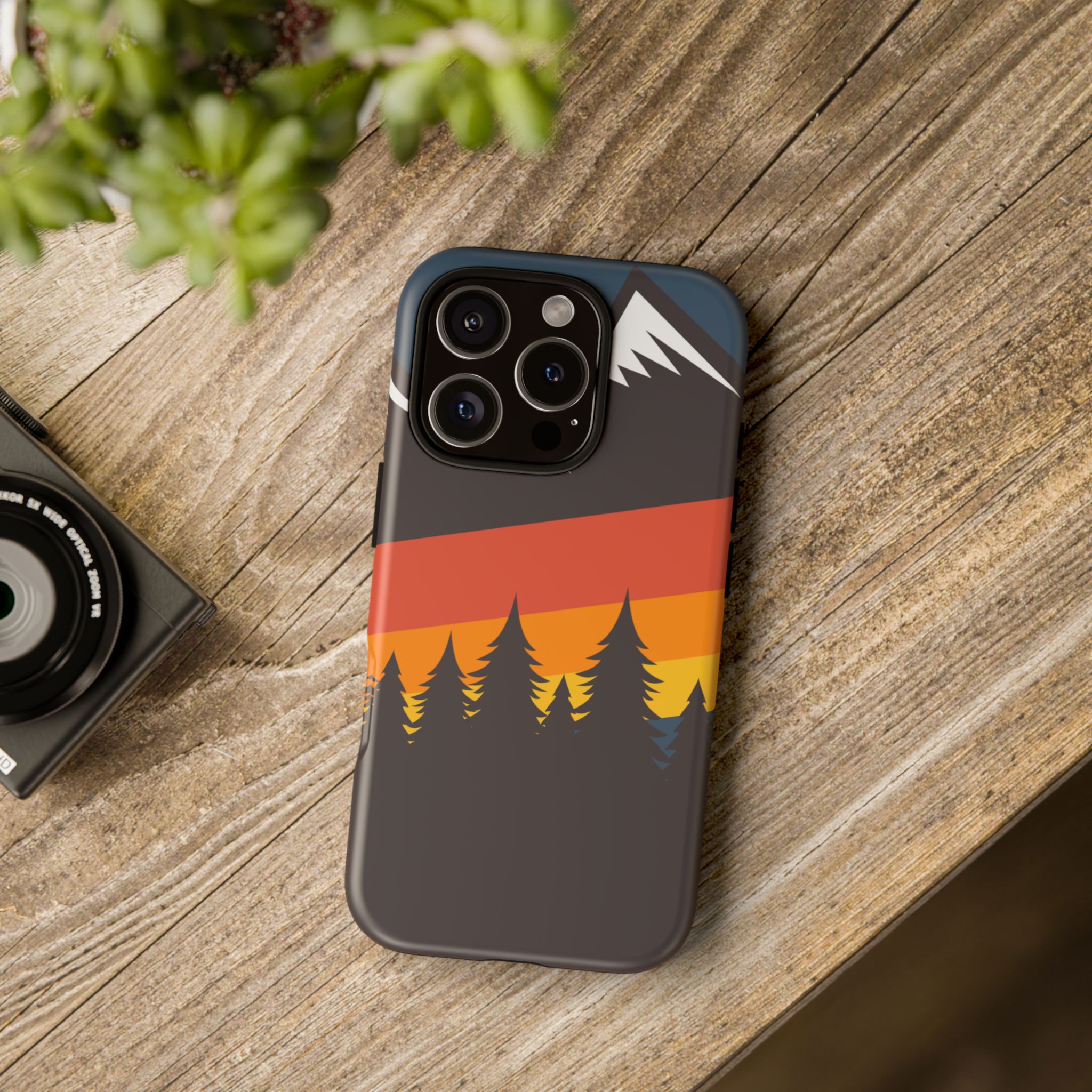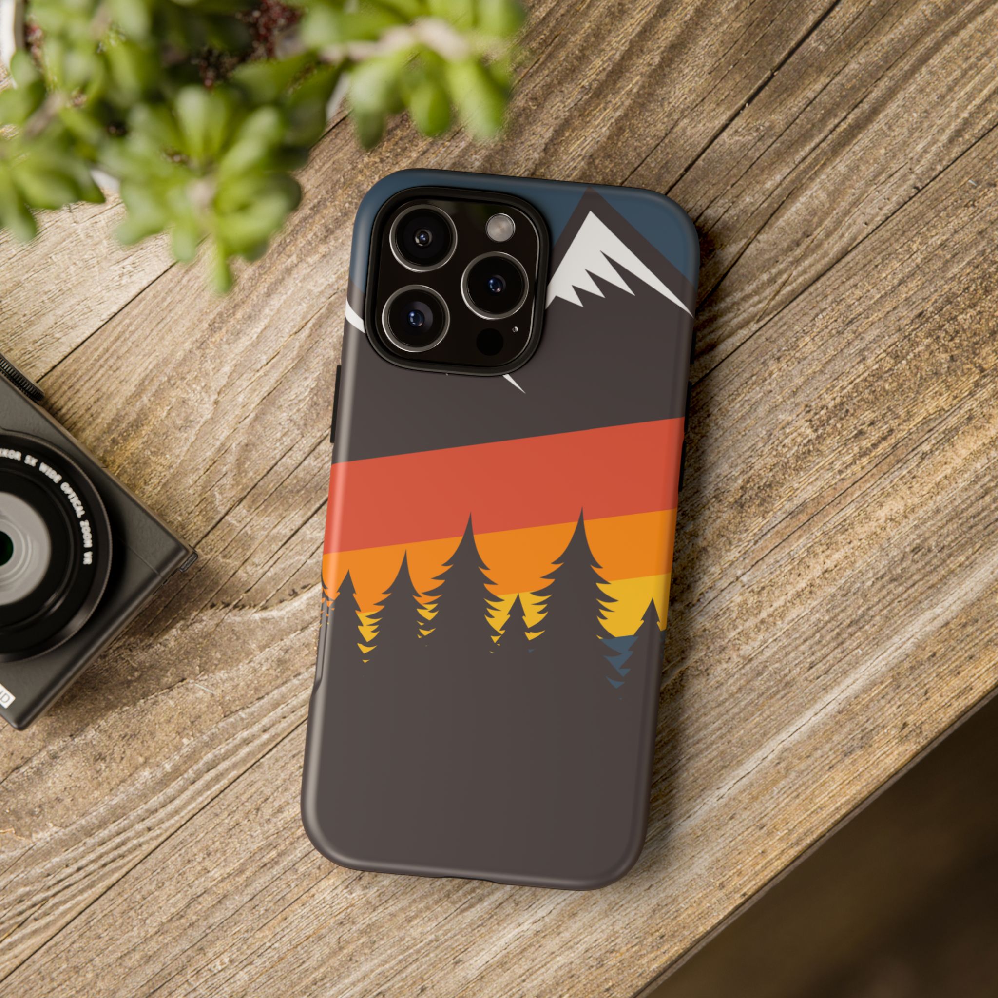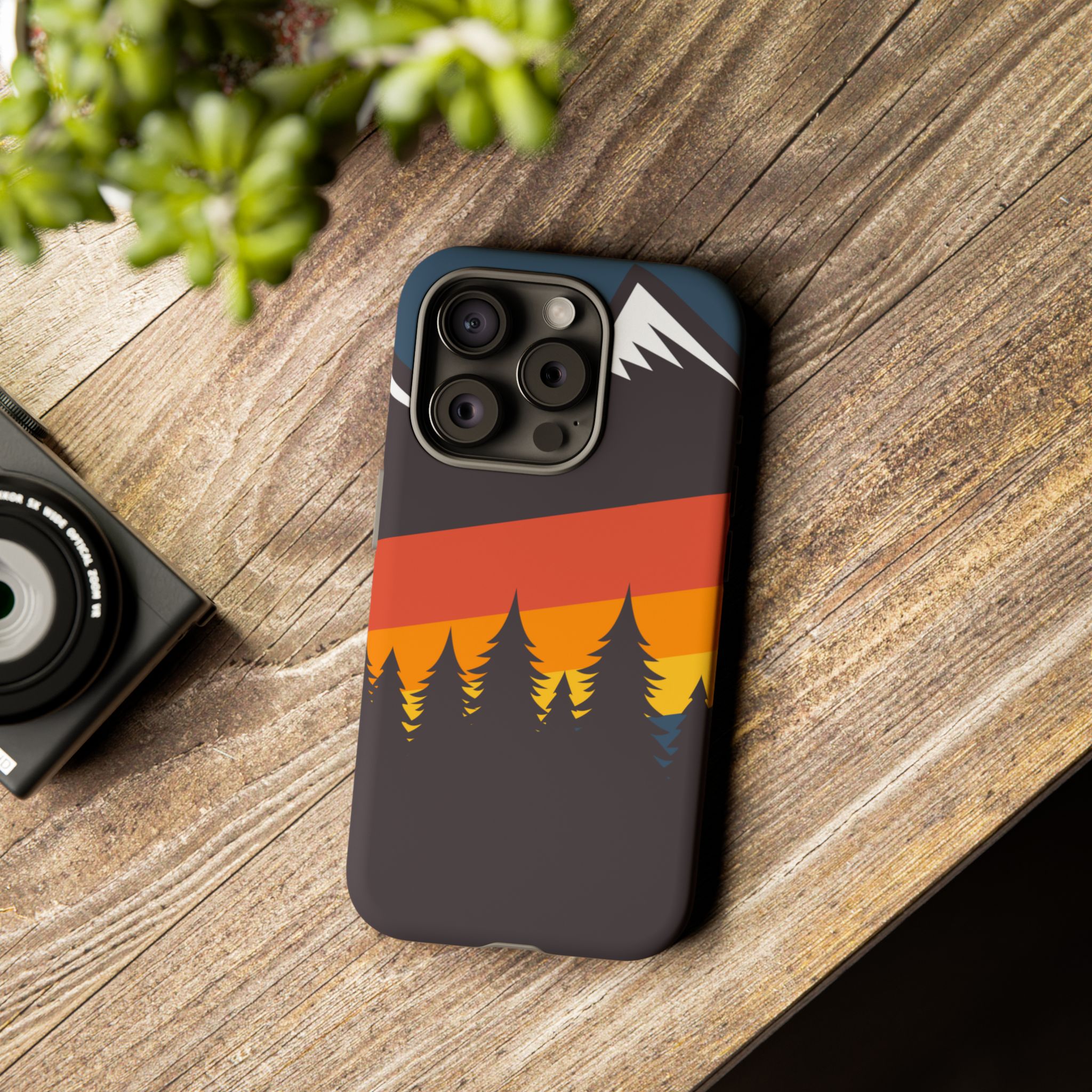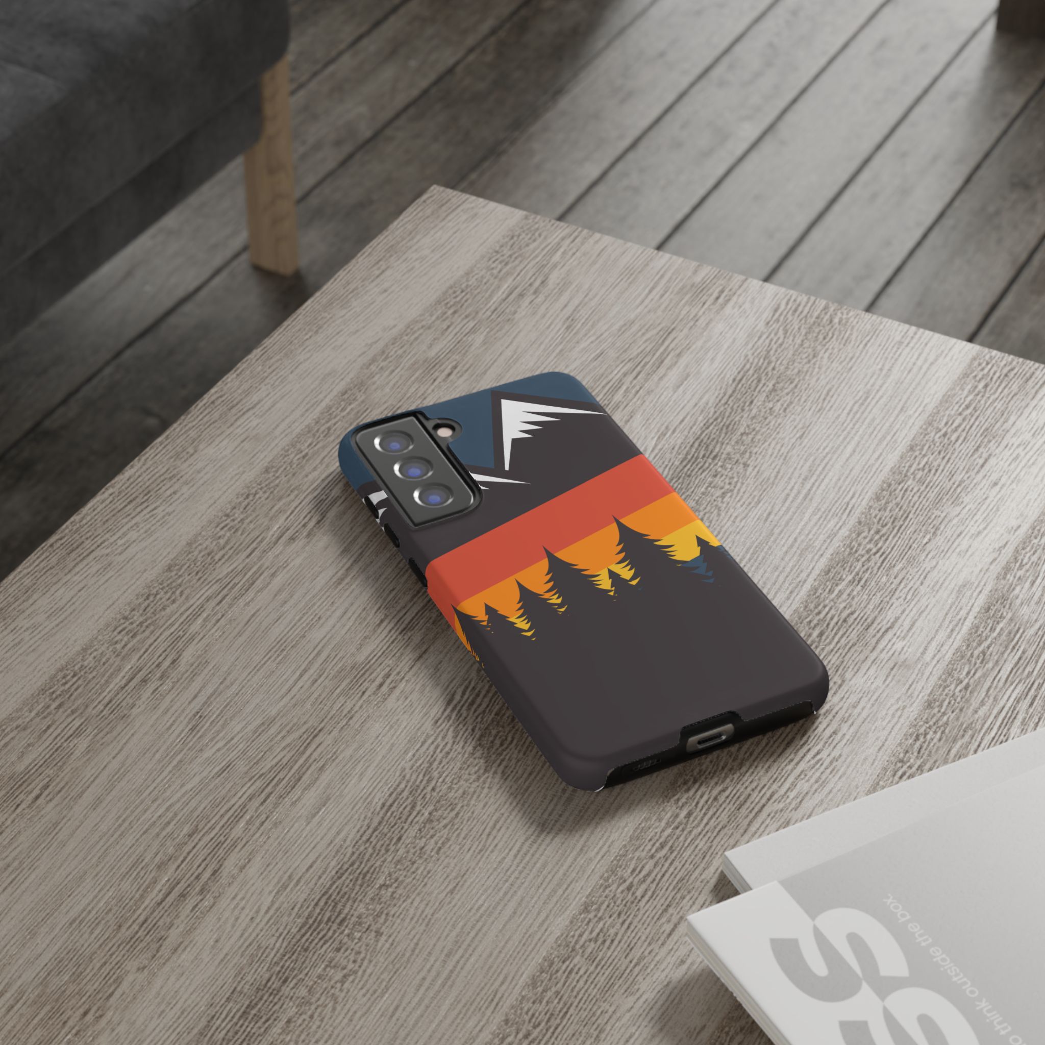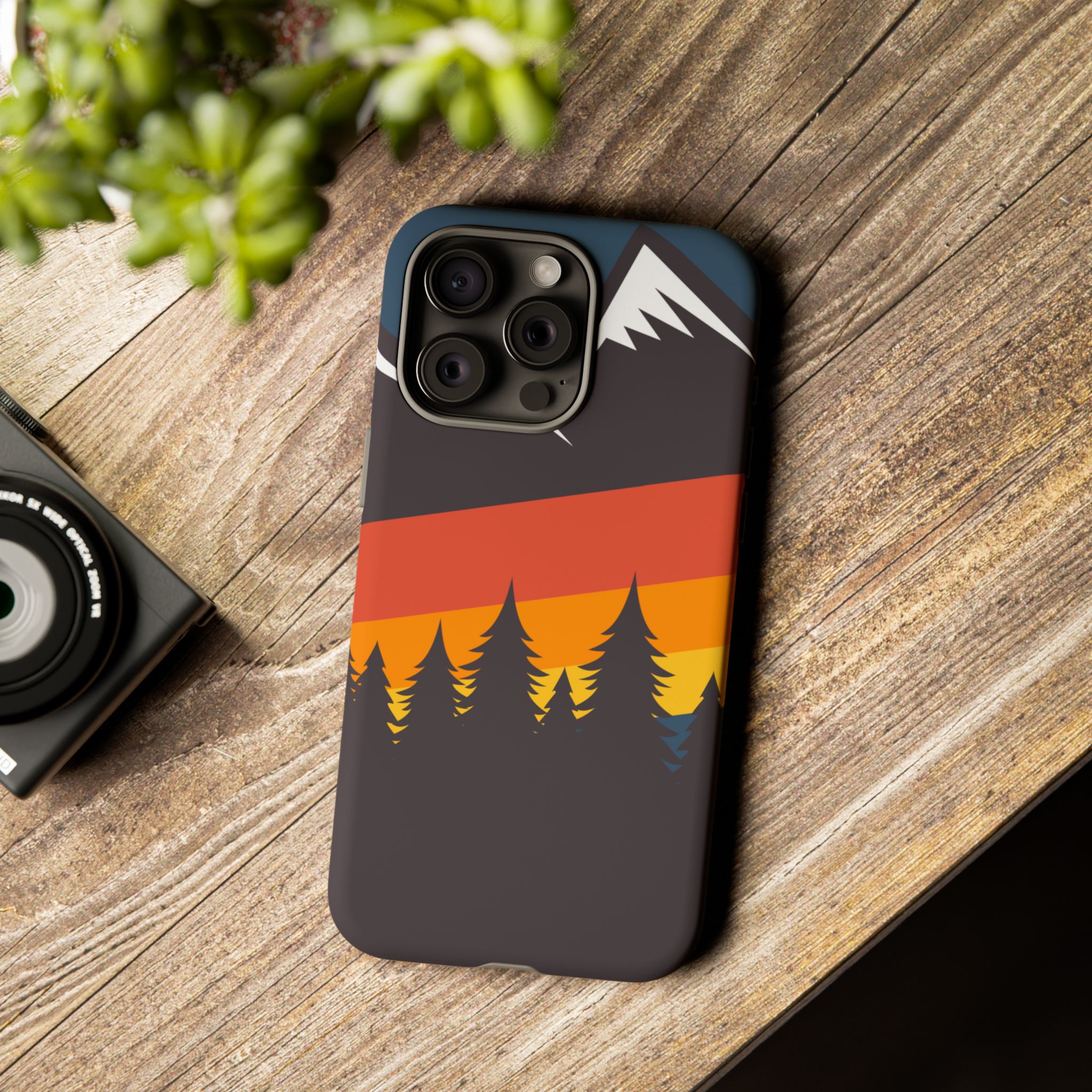 Mountain Stripes phone case. For iPhone, Samsung Galaxy, and Google Pixel devices. Every case has double layers for extra durability and protection while the clear, open ports stay out of your way when it comes to charging.. The outer polycarbonate shell will resist daily impacts. Smooth, matte finish.